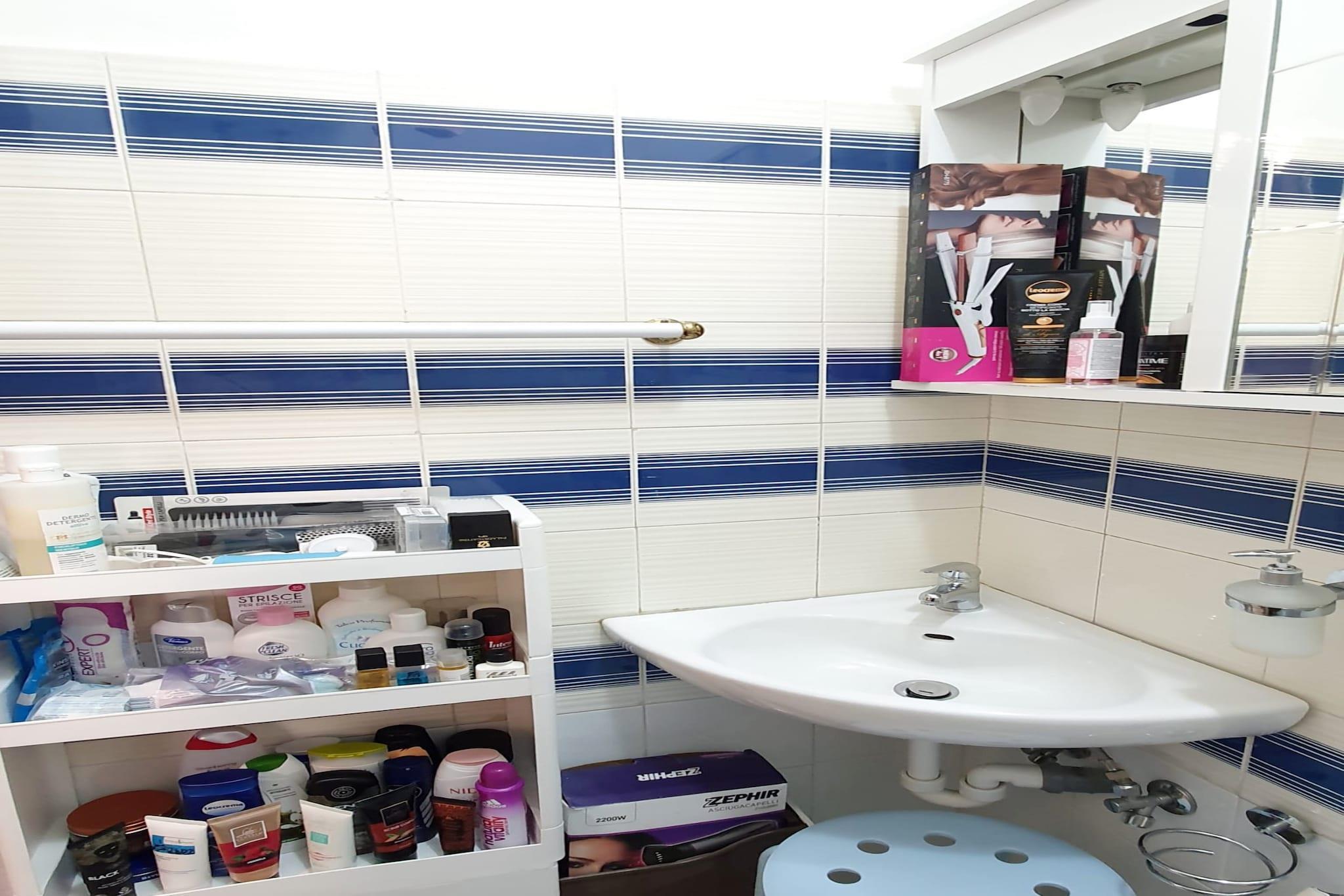 In der 1. Etage: (Wohnzimmer(Doppelschlafcouch, TV), offene Küche(Kochplatte, Kochplatte, Kochherd, Kochherd, Kaffeemaschine, Kaffeemaschine, Kühlschrank, Kühlschrank), Schlafzimmer(Doppelbett), Badezimmer(Dusche, Waschbecken, Toilette, Bidet, Föhn)) Heizung(elektrisch), Klimaanlage, Terrasse, Gartenmöbel, Parkplatz (öffentlich)