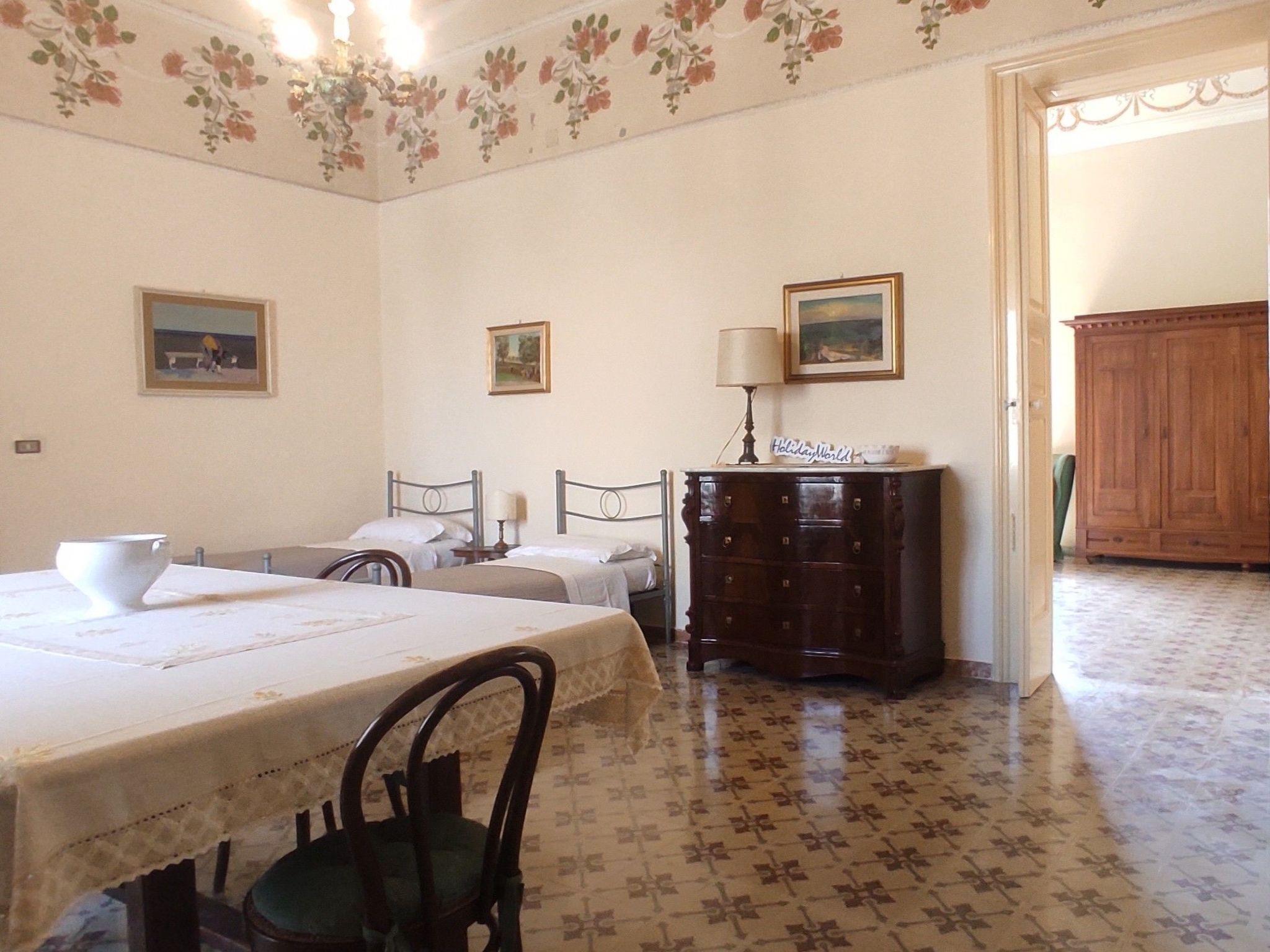 In der Nähe des antiken Dorfes Matino befindet sich die gemütliche und geräumige Residenza Antica Distilleria, ein wichtiger Teil des Patronatspalastes der Familie De Luca, voller Charme und Geschichte, die sich in den Räumen und der Einrichtung widerspiegelt. Die Residenz befindet sich im ersten Stock eines Adelspalastes aus dem Ende des 19. Jahrhunderts, der von dem berühmten Architekten Napoleone Portaluri entworfen wurde. Der Zugang zum Haus erfolgt über eine unabhängige Treppe, die zu einer anmutigen Eingangshalle führt, von der aus man in einen großen, mit Fresken bemalten Raum gelangt, der sich durch eine hohe Gewölbedecke und eine helle Fenstertür auszeichnet, die auf den darunter liegenden großen Garten blickt, in dessen Mitte der majestätische Schornstein steht, ein architektonisches Überbleibsel der alten Fabrik, 54 Meter hoch und ein charakteristisches Symbol der Stadt selbst. Die Wohnung wird durch ein weiteres Zimmer vervollständigt, das als Schlafzimmer genutzt wird und ebenfalls mit Fresken ausgestattet ist, die die vier Phasen des Tages darstellen, sowie durch ein Badezimmer und eine Küche, die für alle Bedürfnisse ausgestattet ist. Von der Küche aus gelangt man auf eine große Terrasse mit einem Pavillon, Tischen und Stühlen. Die Gäste haben einen eigenen, unabhängigen Eingang und können ihr Auto im Innenhof des Anwesens parken. Nur wenige Meter vom Haus entfernt befinden sich die wichtigsten Dienstleistungen wie Supermärkte, Bars, Tabakläden und Geldautomaten.