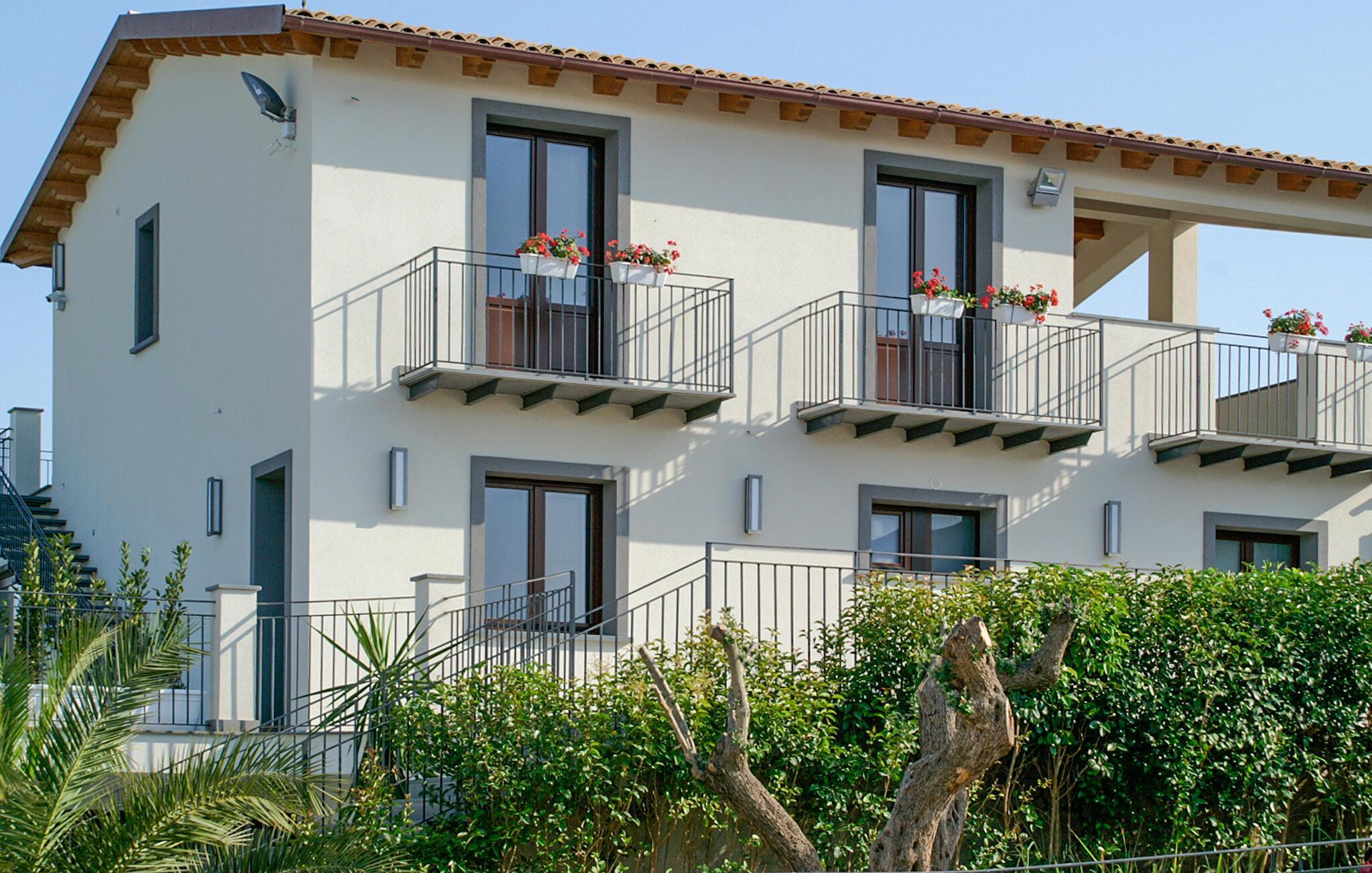 Draußen erwarten Sie eine großzügige Terrasse und ein gepflegter Garten mit Pool, den Si emit anderen Gästen teilen – der ideale Ort, um sich zu entspannen, ein Buch zu lesen oder die sizilianische Sonne zu genießen.