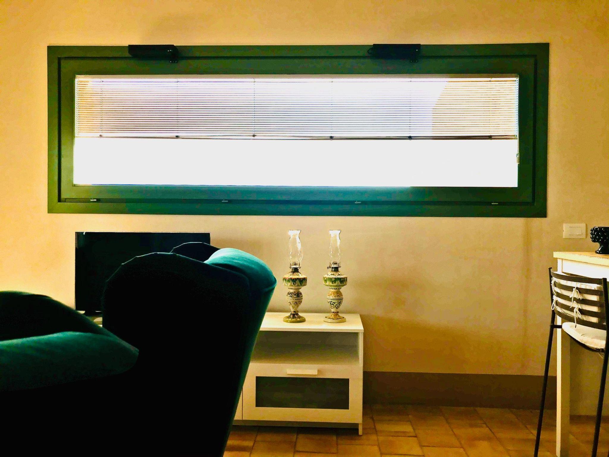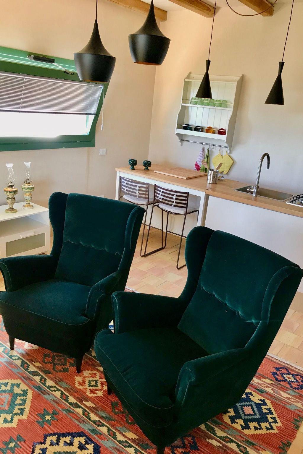 Die Palme, eine weitere Zierpflanze, die seit Jahrhunderten die Landschaft Siziliens prägt, begrüßt die Gäste, die in diesem Haus wohnen möchten. Der Zugang zum Haus der Palme erfolgt über eine große, schilfbewachsene Veranda mit Panoramablick, die nach Südosten ausgerichtet ist und über dem Boden liegt; sie wird auf der Nordseite von einem Innenhof begrenzt, aus dem majestätisch das Laub der Palme auftaucht, die uns zu diesem Haus inspiriert hat. Von der überdachten Veranda aus gelangt man in den Wohnbereich; ein rechteckiges Fenster, das nach Süden ausgerichtet ist, begrenzt das weite und tiefe Panorama, das man sehen kann, und wird so zum Rahmen des natürlichen Bildes, das es schafft, in dem das "Gemälde" durch die Landschaft, das Tal und das Meer, das den Hintergrund abschließt, dargestellt wird. Das Wohnzimmer ist mit allem Komfort ausgestattet; die Einrichtung zeichnet sich durch Schlichtheit, Nüchternheit und Wesentlichkeit aus; es zeichnet sich auch durch das Vorhandensein einer effizienten Kochecke mit einem hölzernen Sockel aus, der mit allen notwendigen Dienstleistungen und Zubehör ausgestattet ist. In der Mitte des Raumes sorgen zwei bunte Bergère-Sessel für fantastische Momente der absoluten Entspannung. Außerhalb des Wohnzimmers befindet sich die schilfgedeckte Veranda, die es den Gästen ermöglicht, die konkrete Erfahrung des Lebens in Sizilien in seiner tiefsten Essenz zu genießen. Von hier aus können die Gäste ihren Blick über einen Horizont schweifen lassen, der von Nordosten nach Südosten die gesamte umliegende Landschaft und Natur umfasst, wobei der Horizont auf der einen Seite von den Hügeln von Caltabellotta und Sciacca und auf der anderen Seite von der mit Olivenbäumen bewachsenen Landzunge von Capparina begrenzt wird, die zum Meer hin abfällt. In diesem gemütlichen Raum können sie in aller Ruhe ihre Mahlzeiten einnehmen und auch die kühlen Abende genießen, die uns das gemäßigte sizilianische Abendklima beschert. Das erste Schlafzimmer blickt durch zwei große, helle Fenster nach Osten auf die bereits beschriebene Veranda mit dem Palmendach und nach Norden auf die umliegende Landschaft und den Obstgarten. Seine sanften Farben spiegeln die natürlichen Elemente der Umgebung wider und harmonieren gut mit der schlichten Einrichtung. Über eine kleine gemauerte Treppe gelangt man in das Zimmer, das den Gästen insgesamt ein besonderes Gefühl der inneren Intimität vermittelt. Es verfügt über einen unabhängigen Zimmerservice. Die Einrichtung umfasst ein Doppelbett, einen begehbaren Kleiderschrank und eine Kommode. Die große Fenstertür kann mit Verdunklungsvorhängen geschlossen werden, um den Gästen, die es vorziehen, im Dunkeln zu schlafen, maximalen Komfort zu bieten. Vom Wohnbereich aus führt ein kleiner Flur zum zweiten Schlafzimmer, das mit einer besonderen architektonischen Lösung realisiert wurde, die es ermöglicht, es mit Hilfe einer Eisenunterkonstruktion und Holzwänden über das erste zu legen. Durch die Eingangstür gelangt man über eine kleine gemauerte Treppe auf die Etage, wo sich zwei Einzelbetten befinden, die in ein Doppelbett umgewandelt werden können; ein großes Fenster in Richtung Norden ermöglicht den Blick auf die umliegende Landschaft und den Obstgarten. Das Zimmer im Inneren ist ebenfalls mit Schubladen ausgestattet und verfügt über ein eigenes Bad. Spezielle Vorhänge an den Fenstern, die komplett verdunkelbar sind, bieten maximalen Komfort für Gäste, die es vorziehen, im Dunkeln zu schlafen. Das Haus ist voll klimatisiert und Wi-Fi ist immer aktiv und in allen Innen- und Außenbereichen zugänglich.
