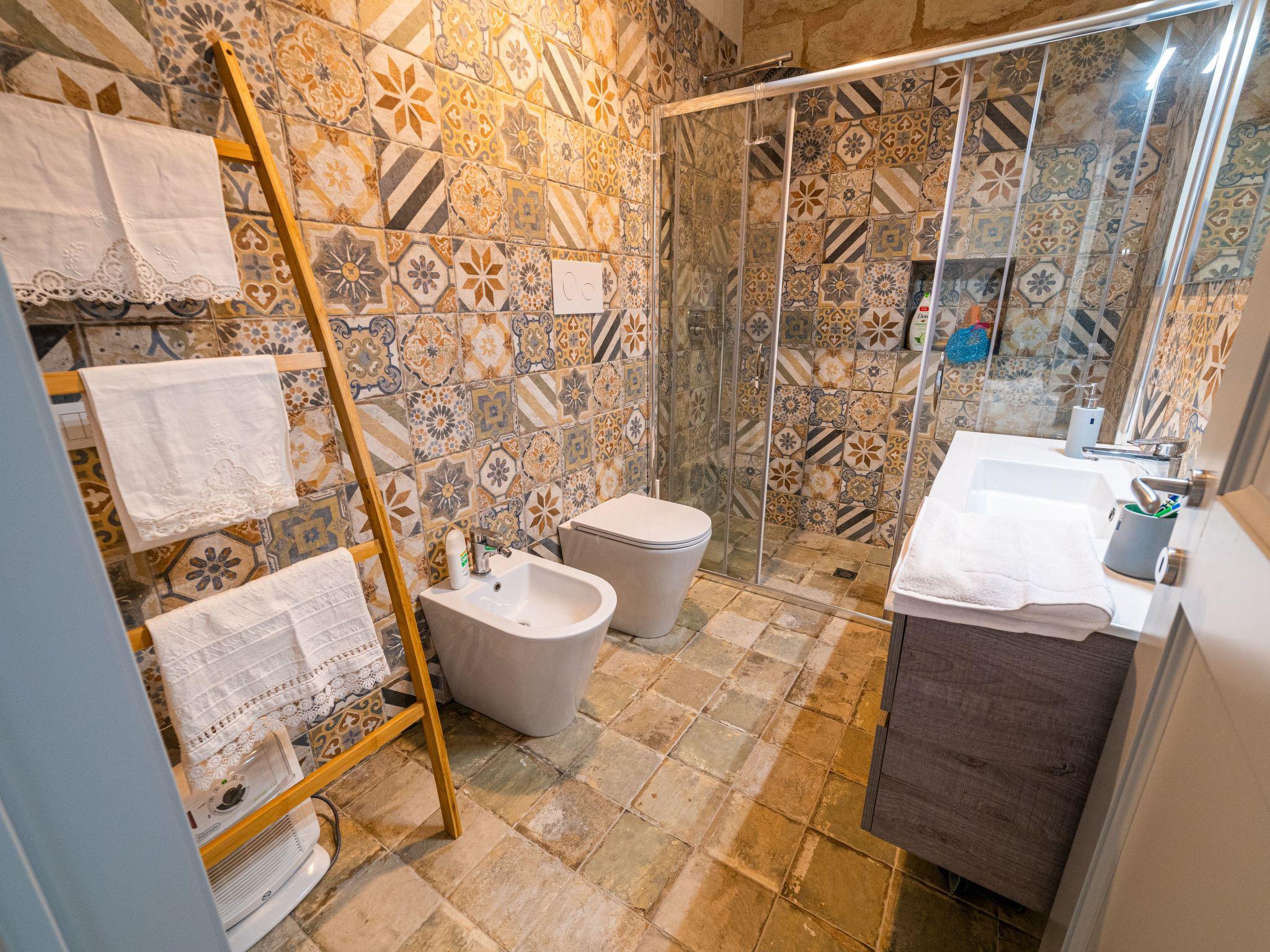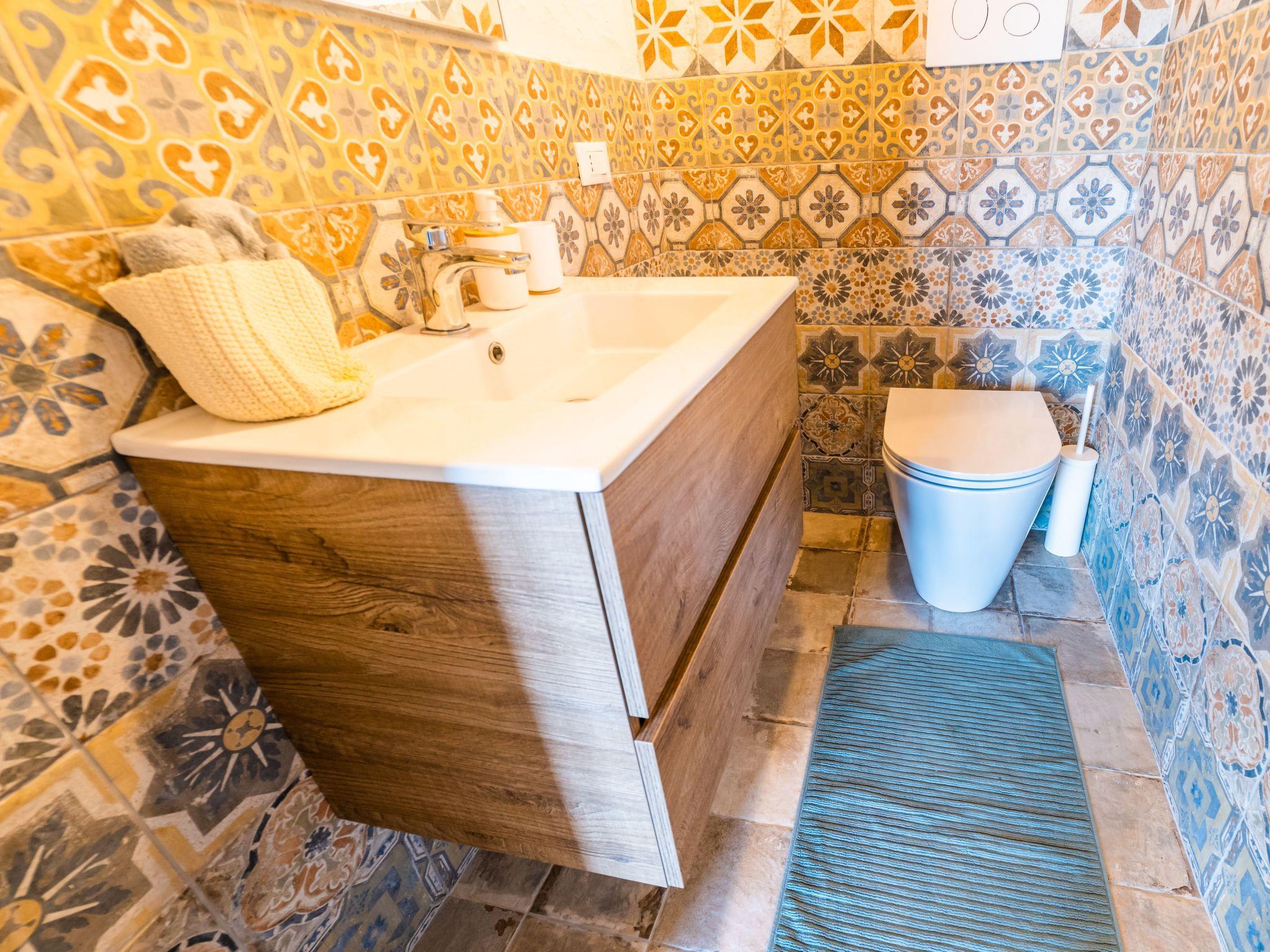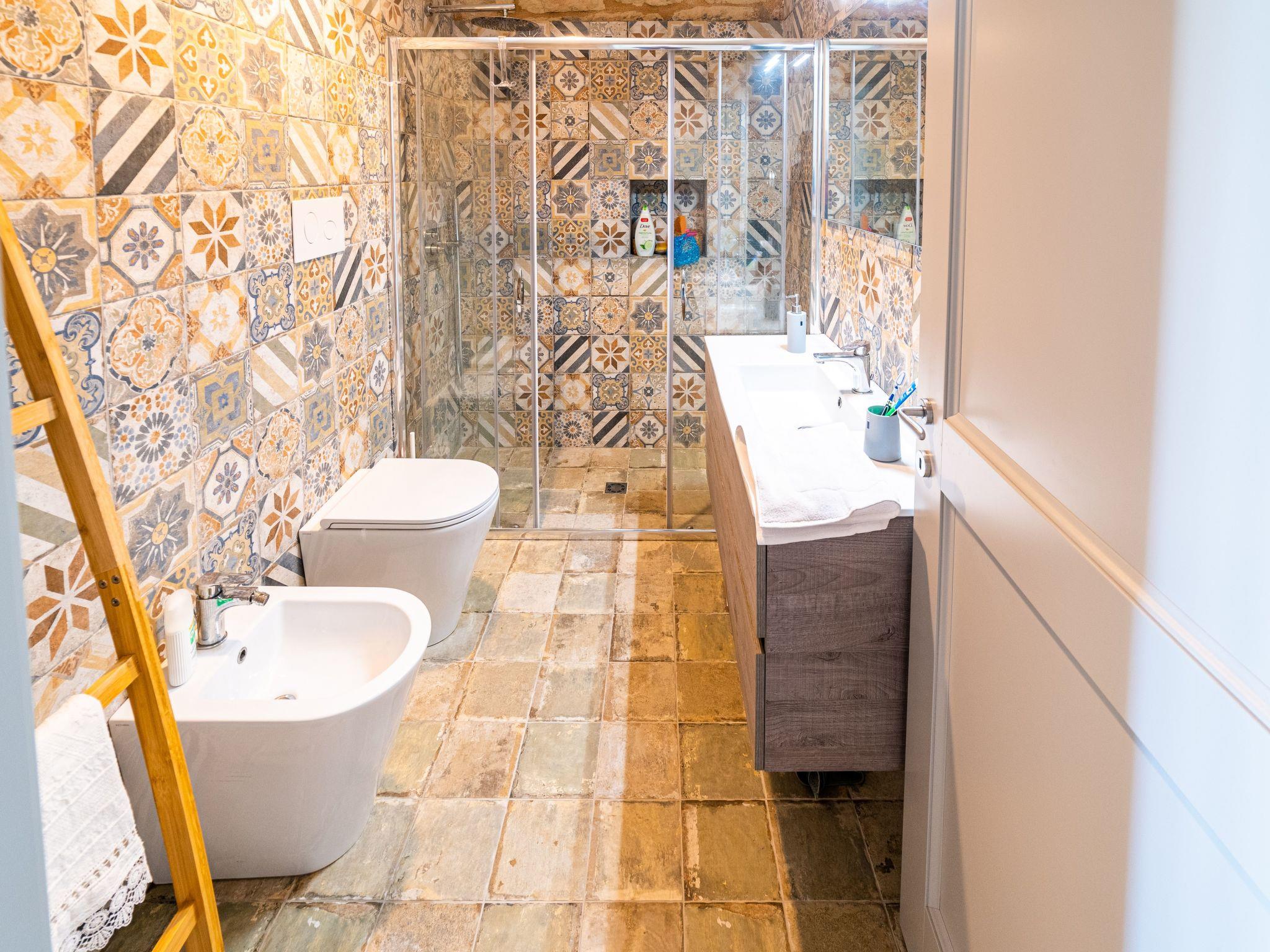 Das ganze Haus ist in seinen Details raffiniert, mit Sandstein an den Wänden, Terrakotta-Bodenfliesen, die Wärme spenden, und den schönen sizilianischen Majolika-Fliesen, die das ganze Haus beleben.