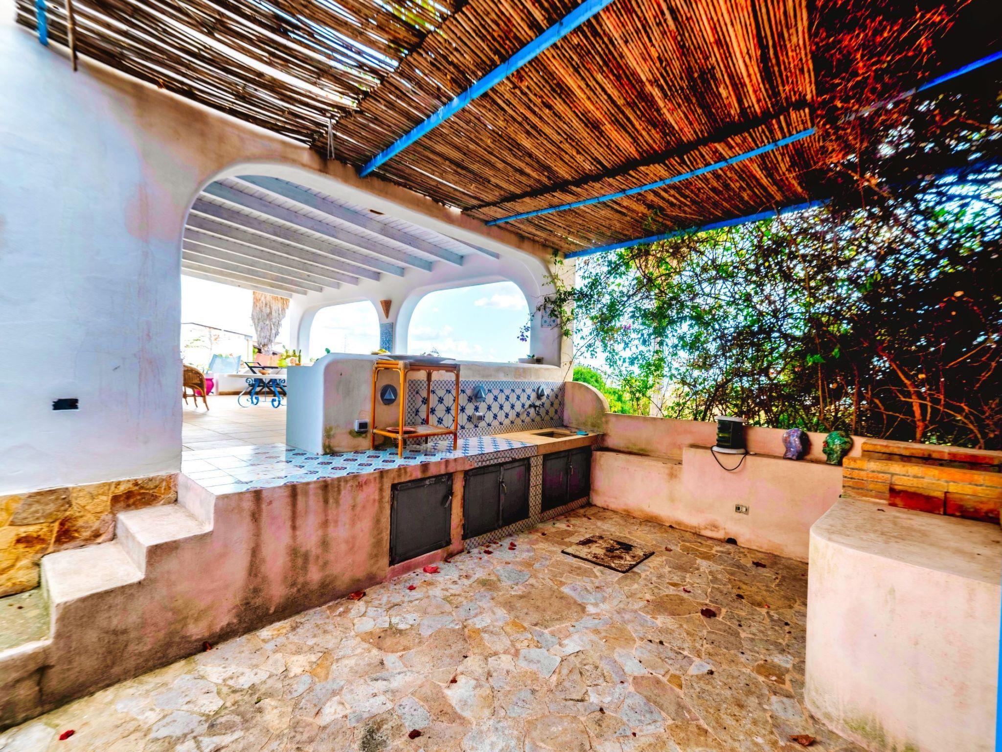 Im Inneren des Hauses gibt es ein Doppelzimmer mit eigenem Bad, ein Zweibettzimmer, ein Einzelzimmer und ein weiteres Bad mit Dusche. Der Wohn-Küchenbereich blickt auf die Terrasse, die mit einem Tisch, Stühlen und Liegestühlen ausgestattet ist. Die Klimaanlage befindet sich in den beiden Hauptschlafzimmern, sie fehlt im Zimmer mit dem Einzelbett (aber lassen Sie einfach die Tür eines der Zimmer offen und frische Luft kommt bequem herein)