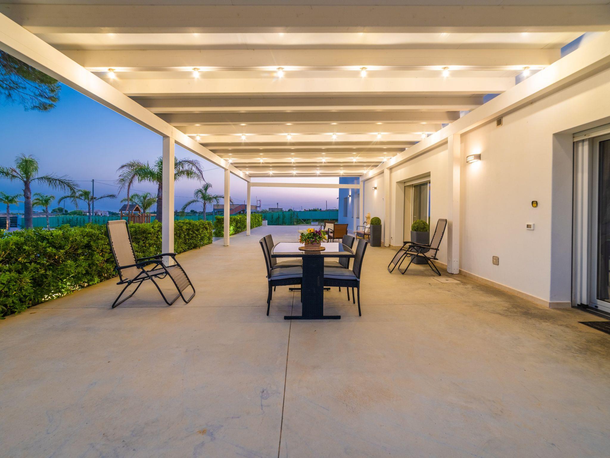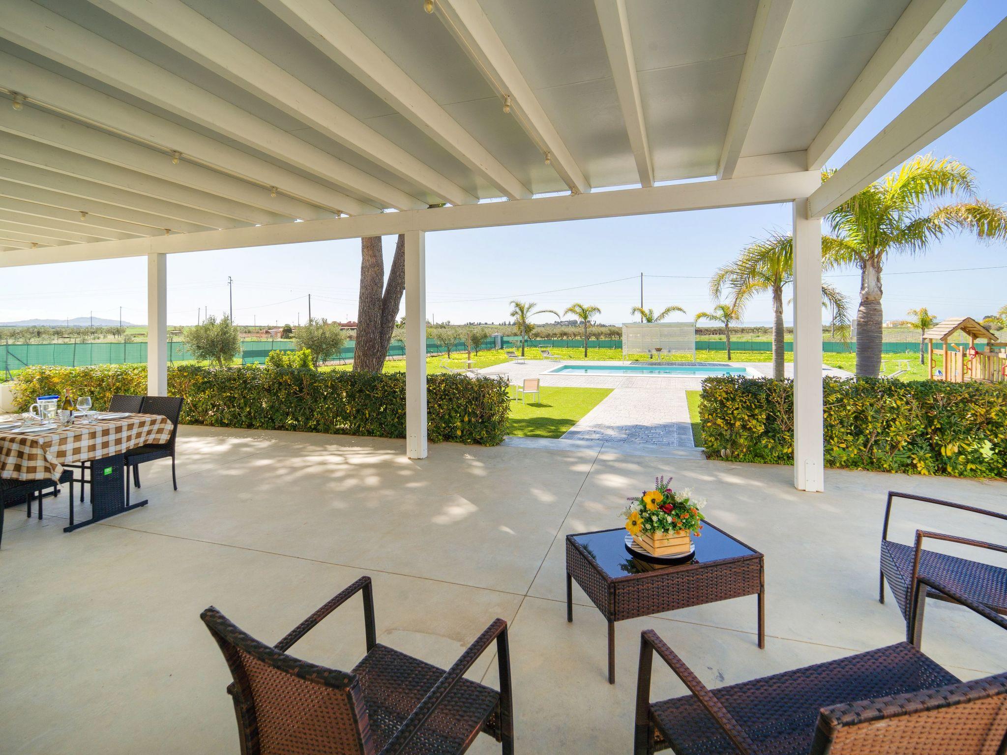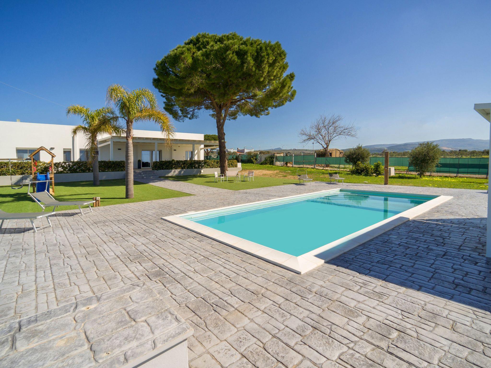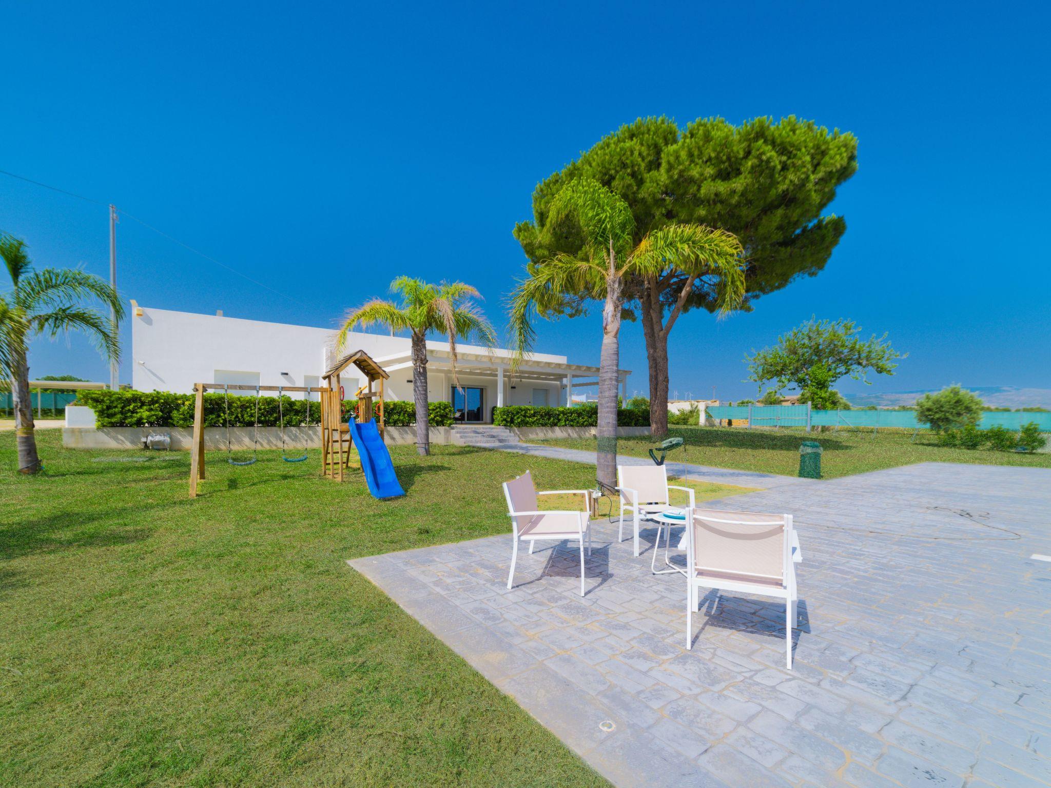 Die Villa erstreckt sich über einen 3000 Quadratmeter großen Garten und befindet sich auf dem Land von Menfi, der Stadt des Weins.