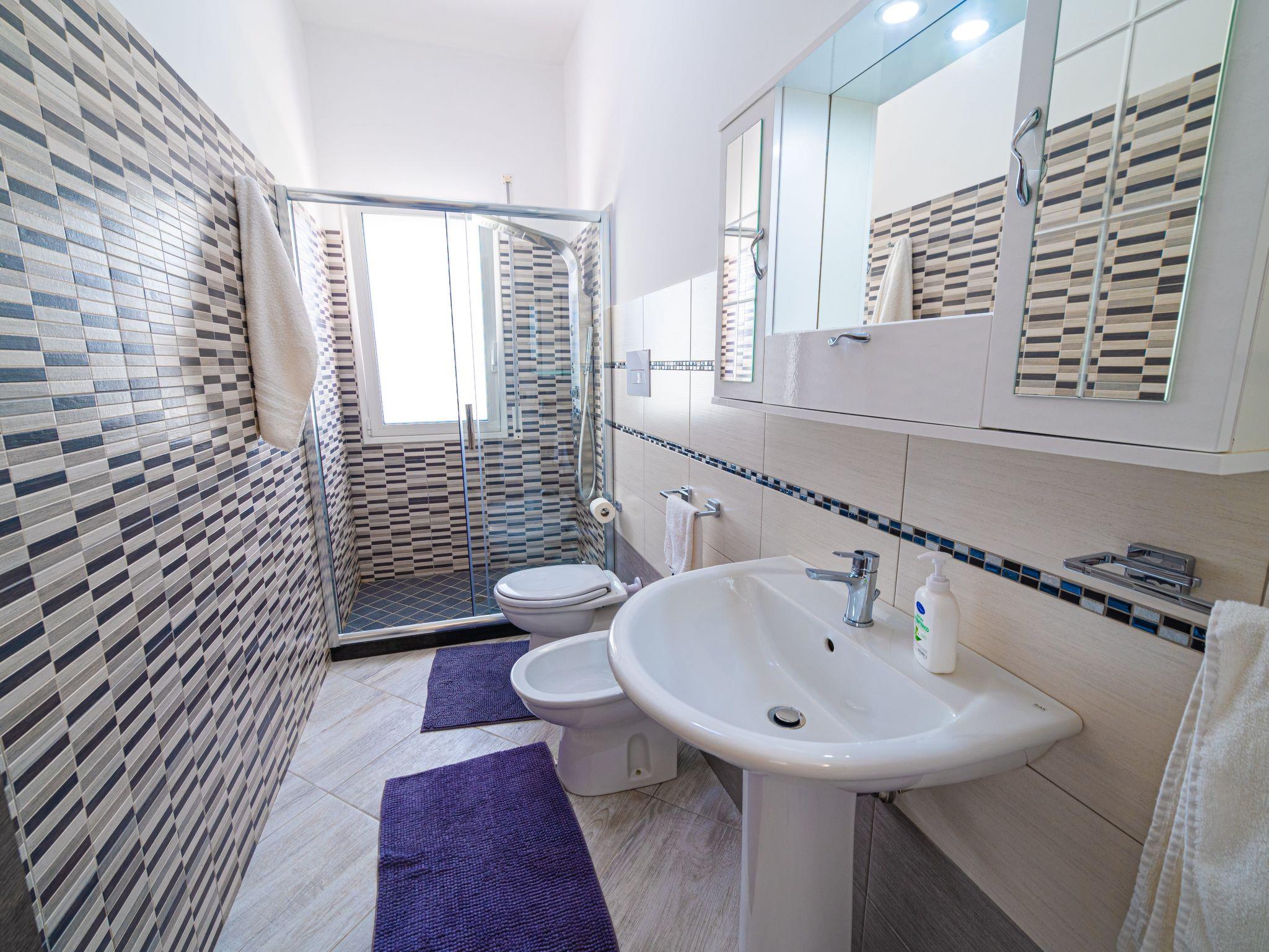 Mamma Antonella besteht aus einem großen Wohnzimmer, einer modernen und gut ausgestatteten Küche, 2 Doppelschlafzimmern mit Bad, einem Zweibettzimmer und einem weiteren Bad.