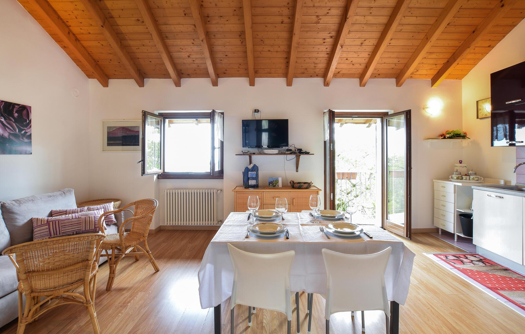 Ihr Ferienhaus bietet Ihnen den idealen Rückzugsort, um die Natur zu genießen und den Alltag hinter sich zu lassen. Treten Sie ein in den gemütlichen Wohnbereich mit einer offenen Küche, die sich ideal für gemeinsame Mahlzeiten eignet. Die stilvolle Einrichtung mit Holzbalkendecke und großen Fenstern verleiht dem Haus eine warme und einladende Atmosphäre. Genießen Sie Ihr Frühstück am gemütlichen Esstisch oder entspannen Sie auf dem komfortablen Sofa bei einem guten Buch oder einem Filmabend.