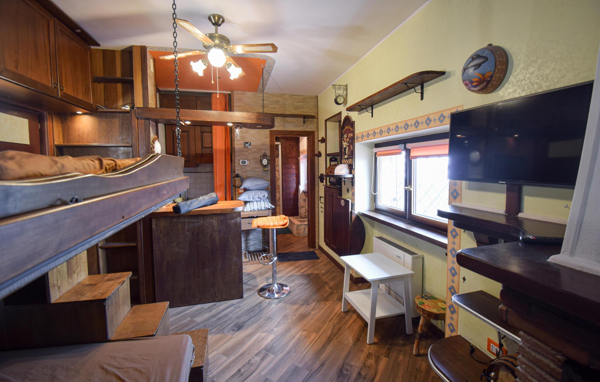 Wohnraum/Küche 35m2 - 1 Schlafmöglichkeit. (Etagenbett). 2 Schlafmöglichkeiten. (Schlafsofa,Matratze,Sonstiges).