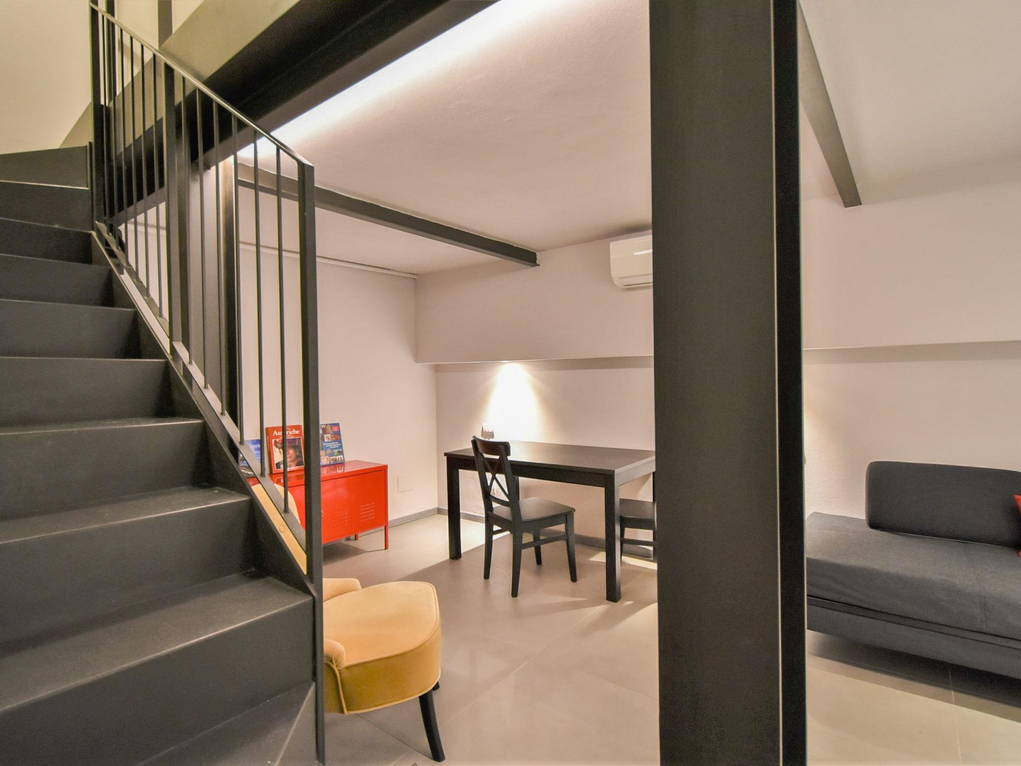 2-Zimmer-Loft 80 m2 auf 3 Stockwerken, im Erdgeschoss. Vollständig renoviert im Jahre 2024, zweckmässig und modern eingerichtet: Wohn-/Schlafzimmer mit 2 Betten und TV. Küche im Eingang (Backofen, Geschirrspüler, 4 Induktionskochplatten, Toaster, Wasserkocher, Mikrowelle, elektrische Kaffeemaschine, Kapseln für die Kaffeemaschine (Nespresso) gratis) mit Esstisch. Ausgang zum Gartensitzplatz. Dusche/Bidet/WC. Unteres Geschoss: 1 offenes Zimmer, ohne Fenster mit 1 Bett. Obergeschoss: offene Galerie mit begehbarem Kleiderschrank mit 1 Bett. Klimaanlage, Warmluftheizung. Kleiner Gartensitzplatz. Balkonmöbel. Zur Verfügung: Waschmaschine, Bügeleisen, Kinderhochstuhl, Babybett, Haartrockner. Internet (Wireless LAN, gratis). Bitte beachten: Nichtraucher-Haus. Eigener Eingang. IT015146C2VLMIN9CE