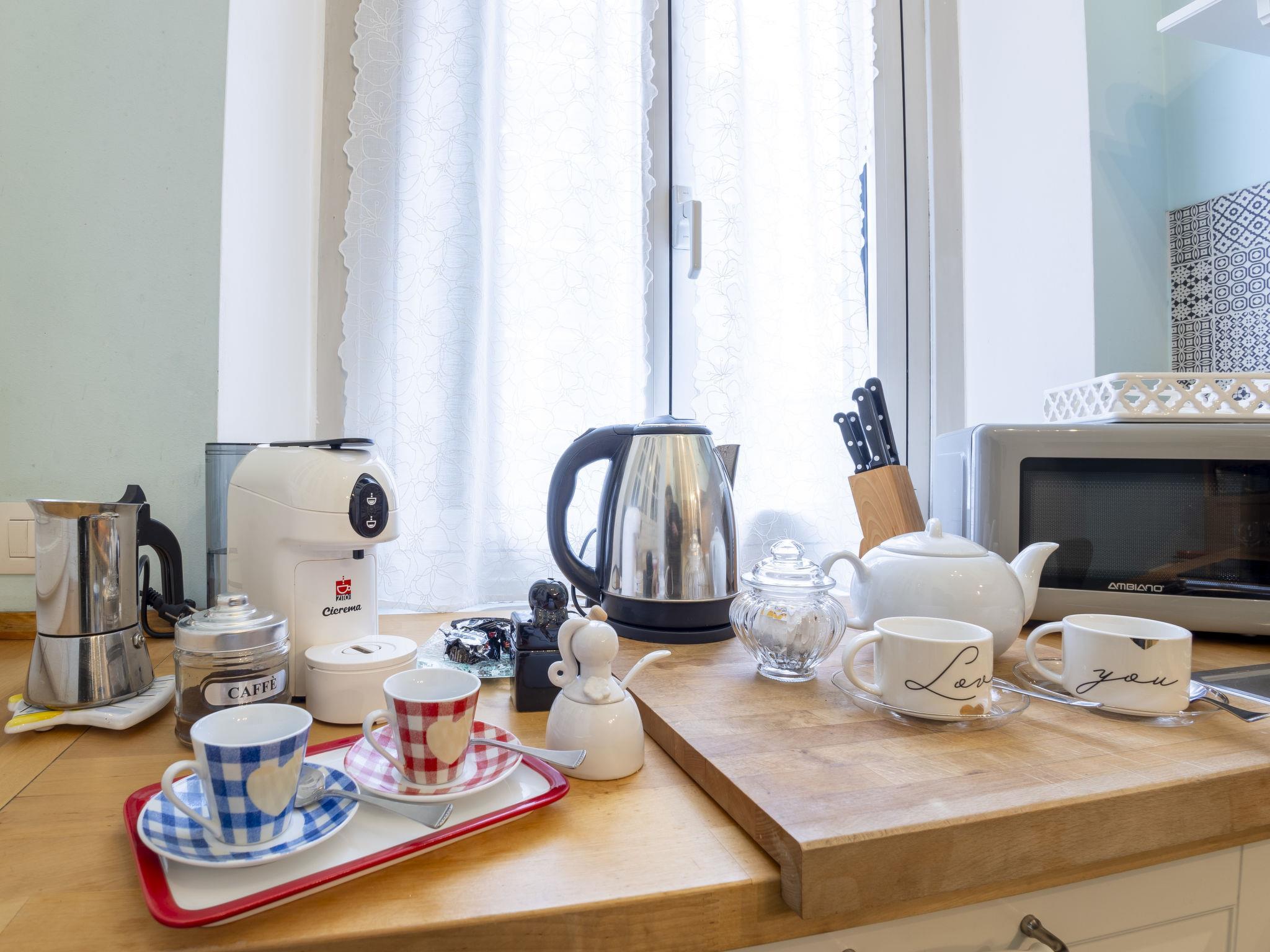2-Zimmer-Wohnung 50 m2 im 2. Stock. Hell, komfortabel und modern eingerichtet: Wohn-/Esszimmer mit 1 Doppeldiwanbett und TV. 1 Doppelzimmer mit begehbarem Kleiderschrank. Ausgang zum Balkon. Kochnische (Mini-Backofen, Geschirrspüler, 4 Induktionskochplatten, Toaster, Wasserkocher, Mikrowelle, elektrische Kaffeemaschine) mit Esstisch. Dusche/Bidet/WC. Heizung, Klimaanlage. Parkettboden. 2 Balkone. Zur Verfügung: Waschmaschine, Bügeleisen, Kinderhochstuhl, Babybett, Haartrockner. Internet (Wireless LAN, gratis). Bitte beachten: Nichtraucher-Haus. Kein Fahrstuhl. IT015146C25ACZ8J3Q