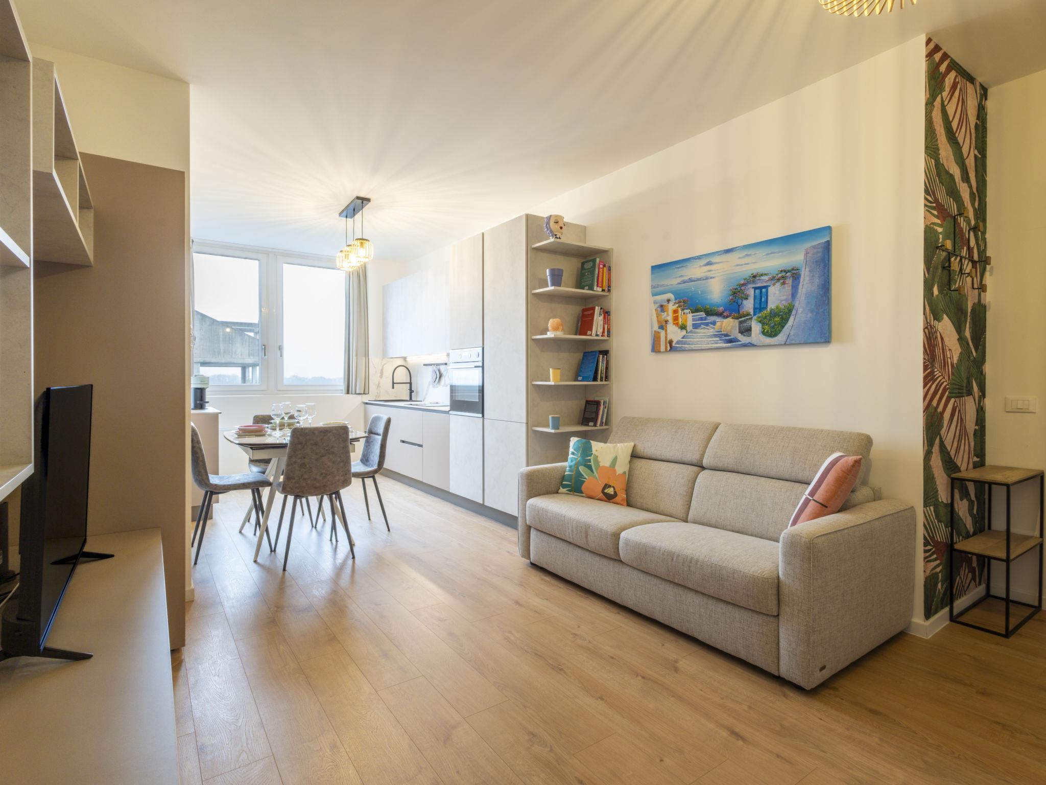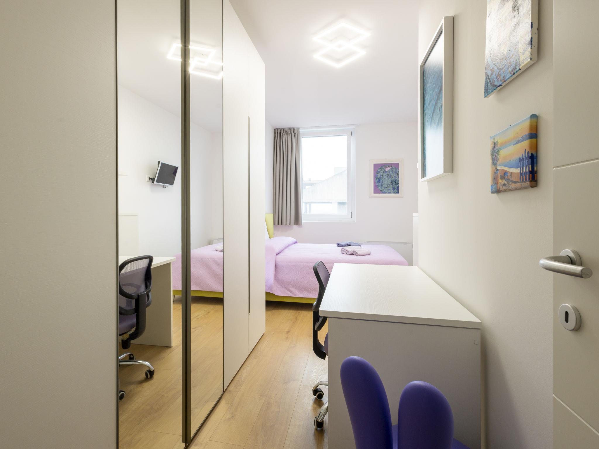 2-Zimmer-Wohnung 53 m2 im 8. Stock, Westlage. Komfortabel und modern eingerichtet: Wohn-/Esszimmer mit 1 Doppeldiwanbett, Esstisch und TV. 1 Zimmer mit 1 Doppelbett. Kochnische (Backofen, Geschirrspüler, 4 Induktionskochplatten, Toaster, Wasserkocher, Tiefkühler, elektrische Kaffeemaschine, Kapseln für die Kaffeemaschine (Nespresso) gratis). Dusche/Bidet/WC, Hydromassage-Dusche. Heizung, Klimaanlage, Boiler (50 Liter). Parkettboden. Zur Verfügung: Waschmaschine, Wäschetrockner, Bügeleisen, Kinderhochstuhl, Babybett, Haartrockner. Internet (WLAN, gratis). Bitte beachten: geeignet für Familien. Nichtraucher-Unterkunft. Feuerlöscher. IT015146C2OZVXAQPN