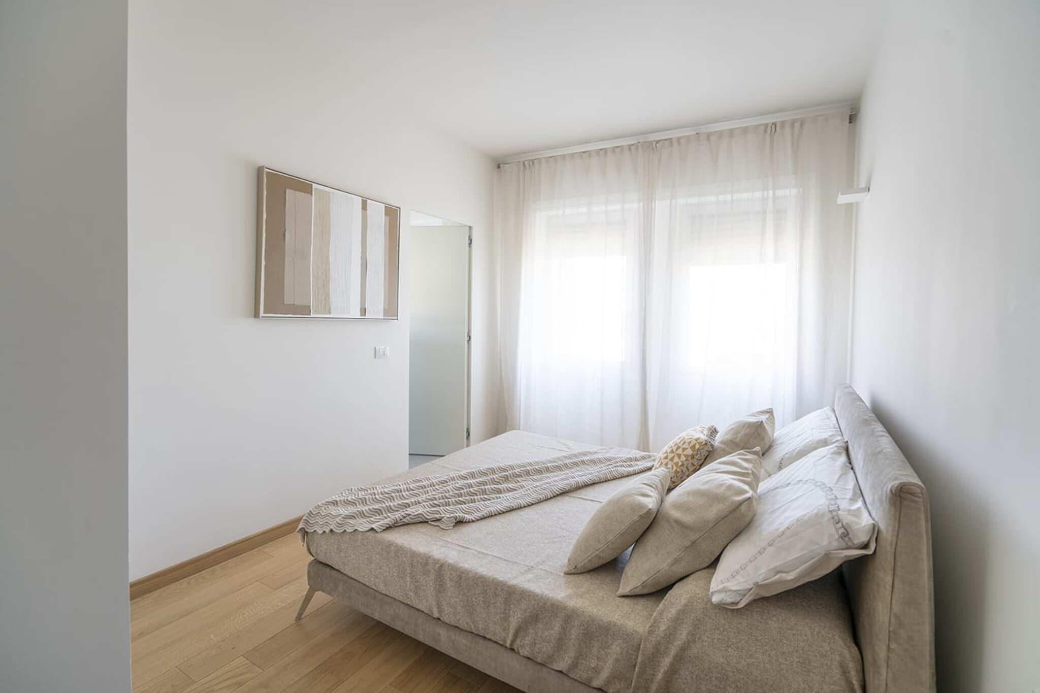 Moderner Stil trifft auf Komfort in diesem komplett renovierten Apartment im Herzen von Mailands pulsierendem Geschäftsviertel. Es befindet sich im 10. Stock eines markanten Gebäudes mit Concierge-Service und bietet einen atemberaubenden Blick auf die Skyline der Stadt sowie eine Atmosphäre aus Licht und Offenheit. Elegant und praktisch zugleich gestaltet, ist es der perfekte Rückzugsort für alle, die den innovativen Geist Mailands erleben möchten. Das 85 m² große Apartment verfügt über ein helles Wohnzimmer mit Balkon, eine voll ausgestattete Küche und zwei Schlafzimmer. Die Master-Suite verfügt über ein eigenes Bad, während das zweite Schlafzimmer eine separate Laptop-Ecke bietet – ideal für mobiles Arbeiten. Ein zweites Badezimmer und eine Waschmaschine sorgen für zusätzlichen Komfort und sorgen dafür, dass Sie bei Ihrer Urlaubs- oder Geschäftsreise an alles gedacht haben. Die Lage könnte nicht günstiger sein: nur 10 Minuten von der Piazza Gae Aulenti, den Vertical Forest-Türmen und Mailands berühmtesten architektonischen Wahrzeichen entfernt. Trendige Cafés, Boutiquen und Restaurants sind alle fußläufig erreichbar, ebenso wie kulturelle Orte, die den designorientierten Charakter der Stadt unterstreichen. Die Via Gerolamo Cardano, Heimat professioneller Dienstleister wie Chiara Ronchi, Psicologa, spiegelt die dynamische Mischung aus Business, Wellness und Lifestyle des Viertels wider. Dank der hervorragenden Anbindung an den öffentlichen Nahverkehr sind Sie ideal gelegen, um sowohl das historische Zentrum als auch die avantgardistische Seite Mailands zu erkunden.