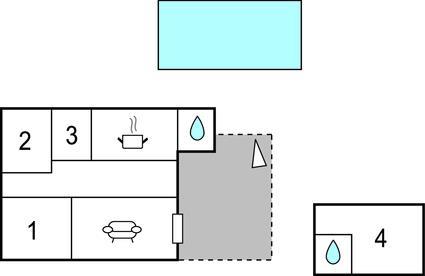 Badezimmer 4m2 (nr. 1) - WC. Warmes und kaltes Wasser. Dusche