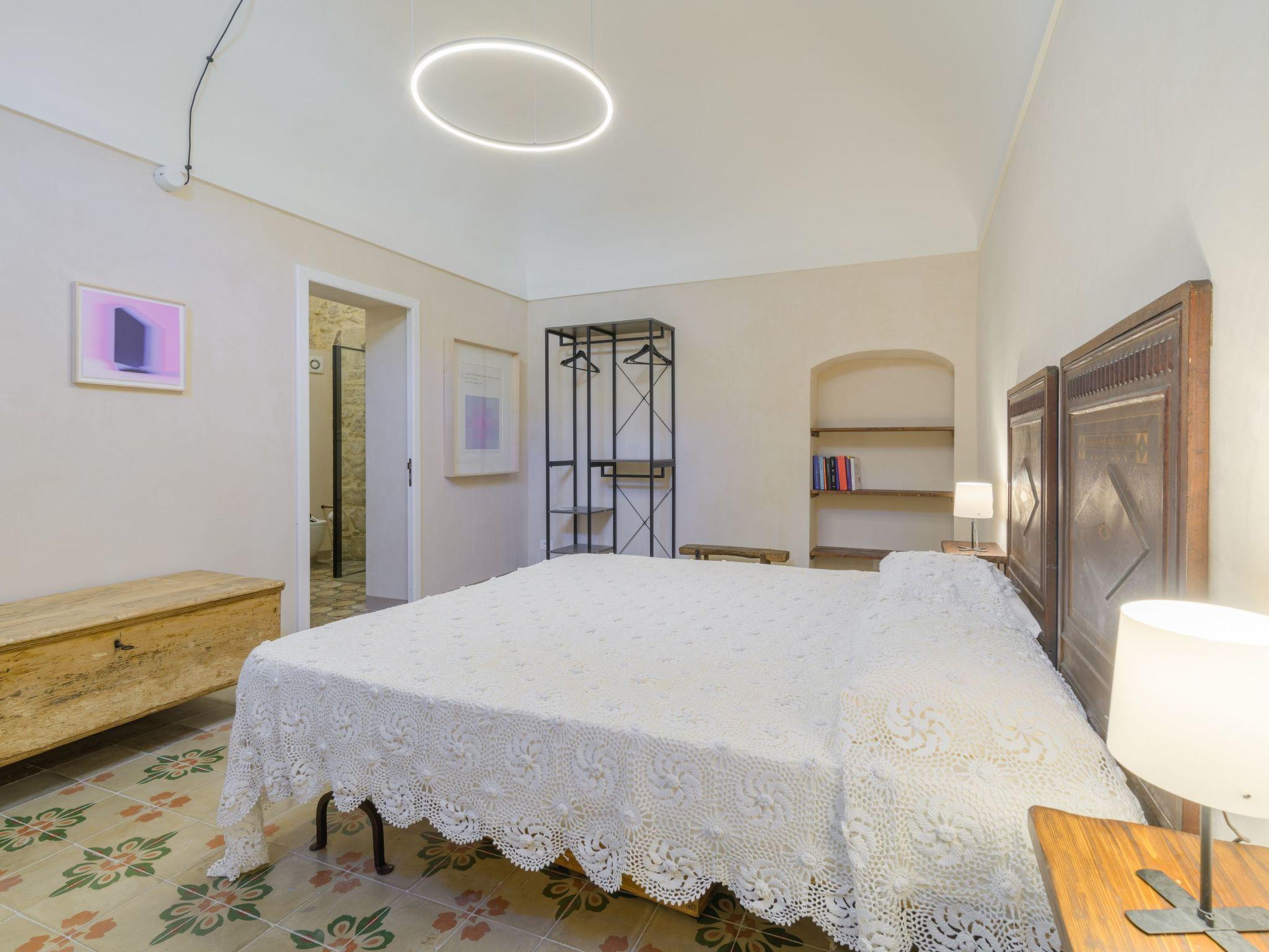 Der Schlafbereich besteht aus zwei Zimmern: ein Schlafzimmer mit Doppelbett und eigenem Bad mit Dusche; ein Doppelzimmer mit Zugang zu einem Panoramabalkon mit Blick auf den Garten unten und die Stadt vor.