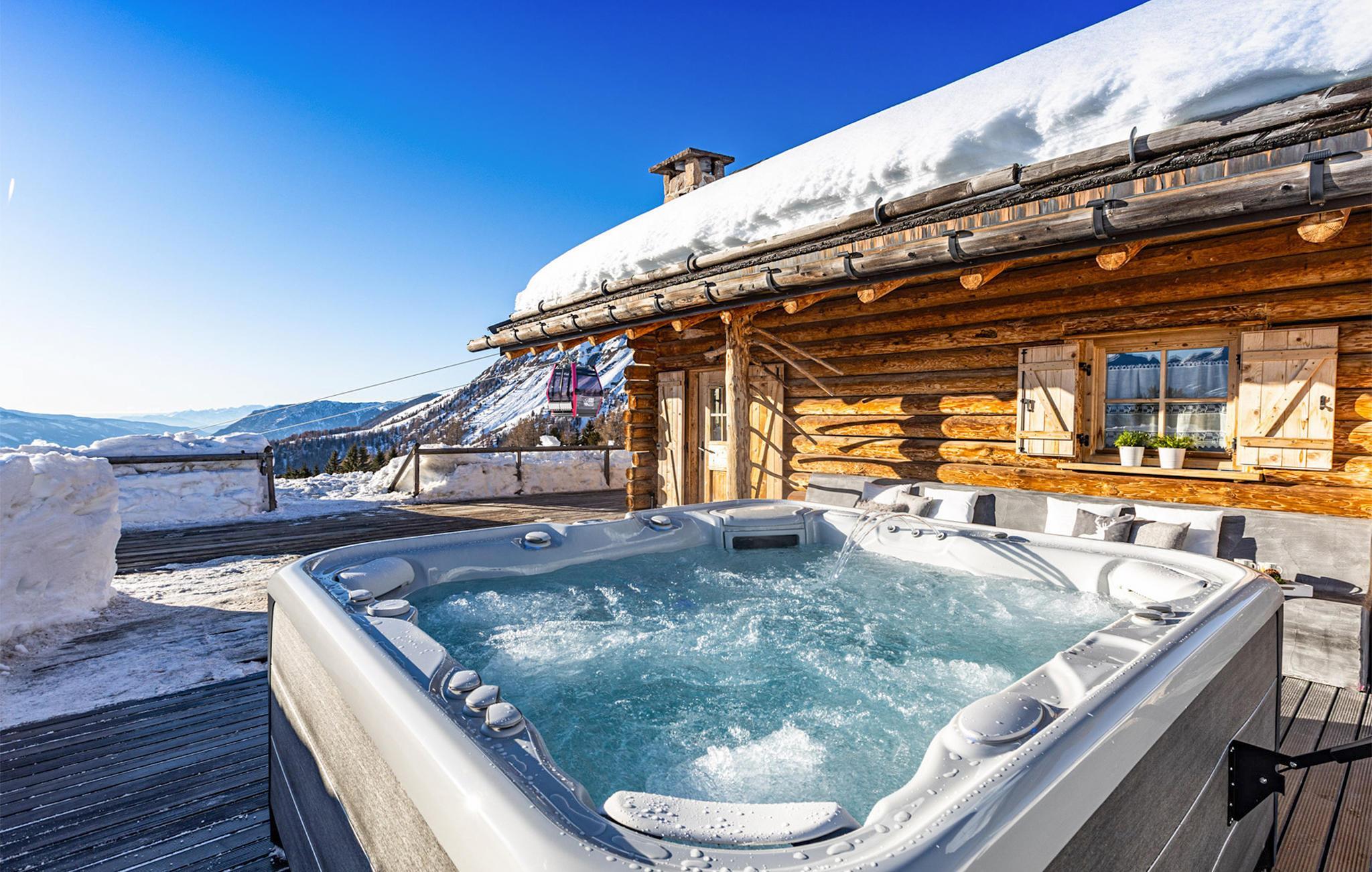 Nach einem langen Tag an der frischen Luft können Sie entspannte Momente im Außenwhirlpool verbringen und sich massieren lassen, während Sie das Bergpanorama genießen. Ein weitere Whirlpool befindet sich im Haus.