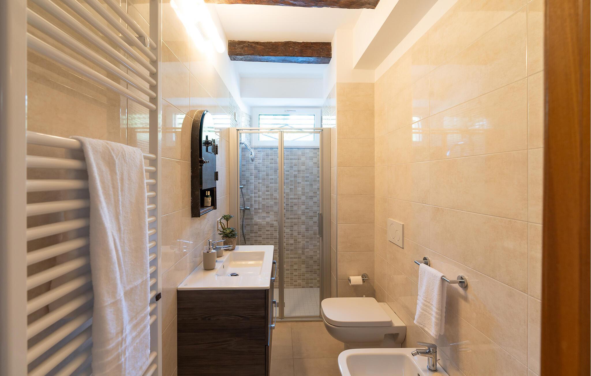 Badezimmer (nr. 1) - WC. Warmes und kaltes Wasser. Dusche