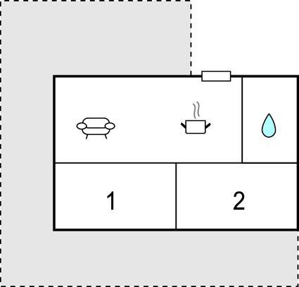Wohnraum/Küche 22m2 - 2 Schlafmöglichkeiten. (Schlafsofa,Matratze,Sonstiges).
