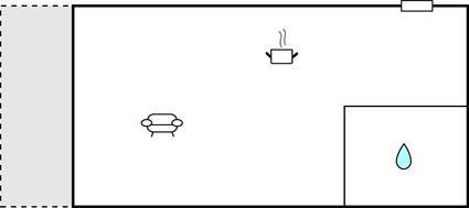 Badezimmer 5m2 (nr. 1) - WC. Warmes und kaltes Wasser. Dusche