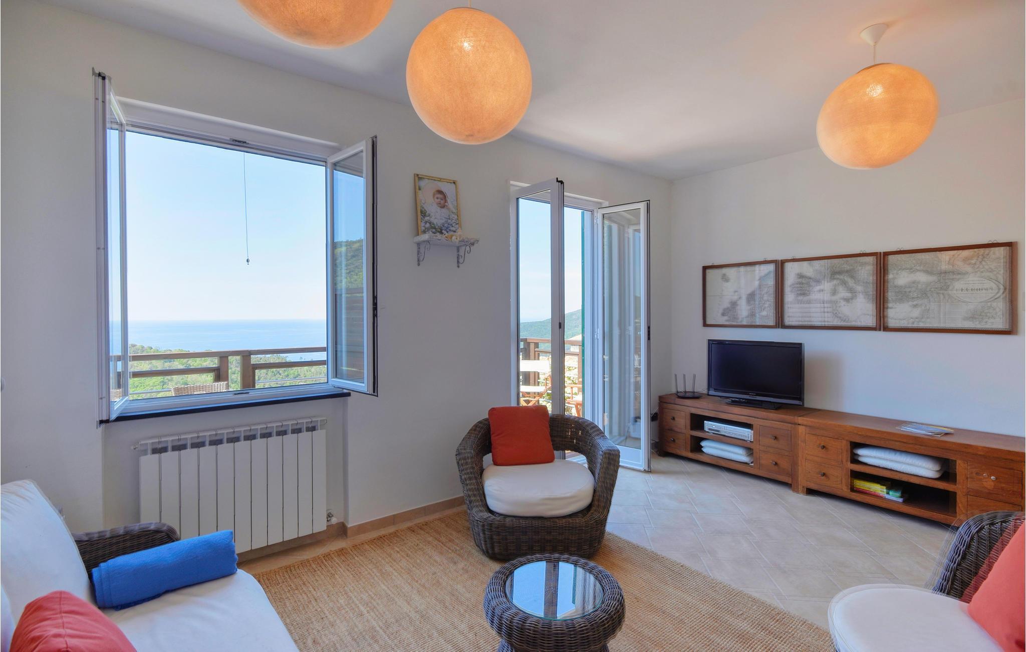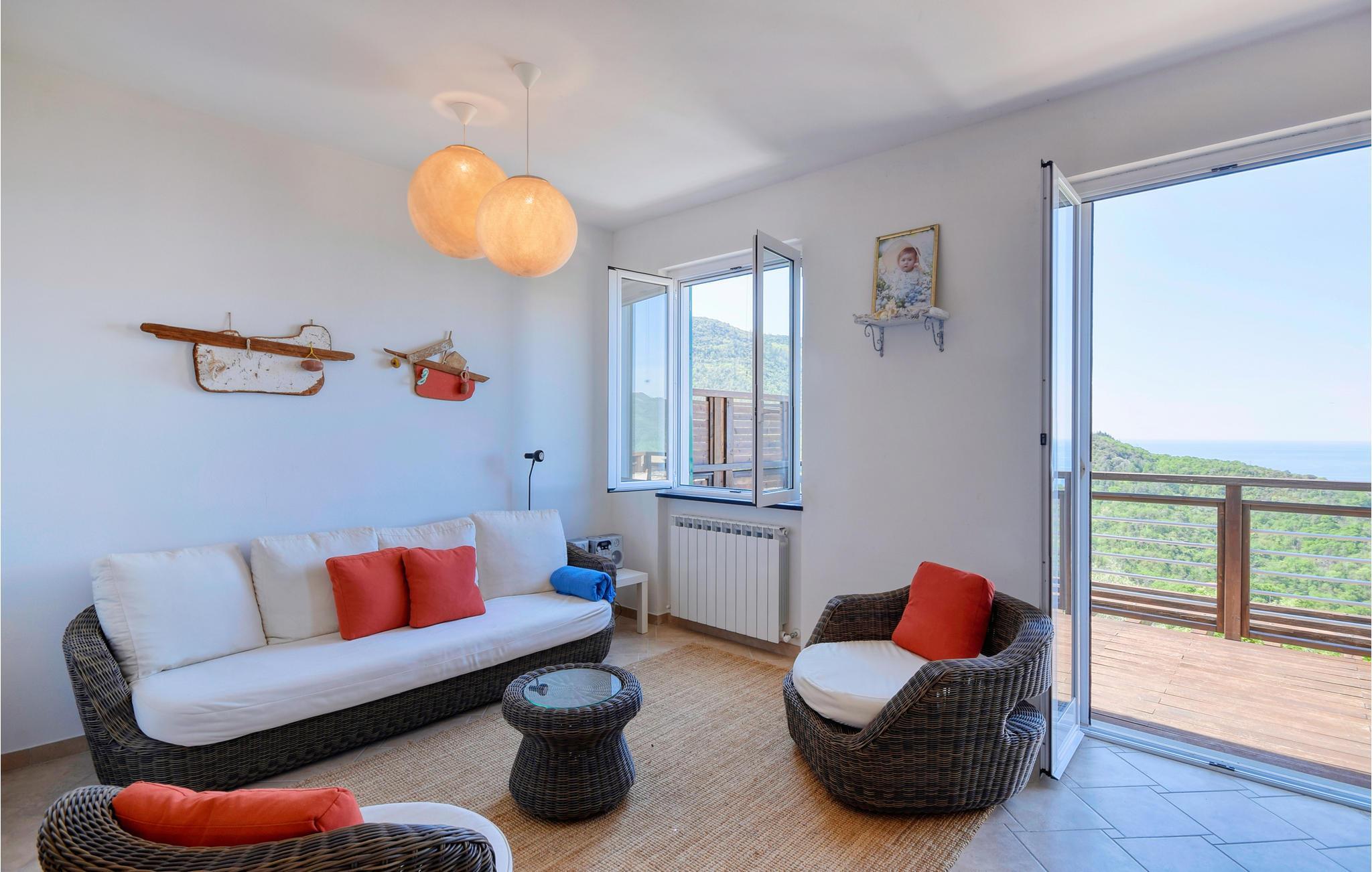 Das einladende Haus empfängt Sie in idyllischer Lage mit Blick auf das Meer. Freuen Sie sich auf helle Räume, eine wohnliche Einrichtung und freundliche Farben. Entspannen Sie hier in ansprechendem Rahmen, genießen Sie gemeinsame Mahlzeiten in der Wohnküche und machen Sie es sich abends nach wunderbaren Urlaubstagen zusammen gemütlich. Treten Sie mit dem ersten Kaffee auf den Balkon, die Aussicht wird Sie verzaubern. Kosten Sie im Außenbereich die erhöhte Lage des Hauses voll aus, dank der Sie hier ein wundervolles Landschaftspanorama genießen. Die Panoramaterrasse lädt zu langen Sonnenbädern ein, beenden Sie den Tag mit einem Glas Wein unter freiem Himmel.
