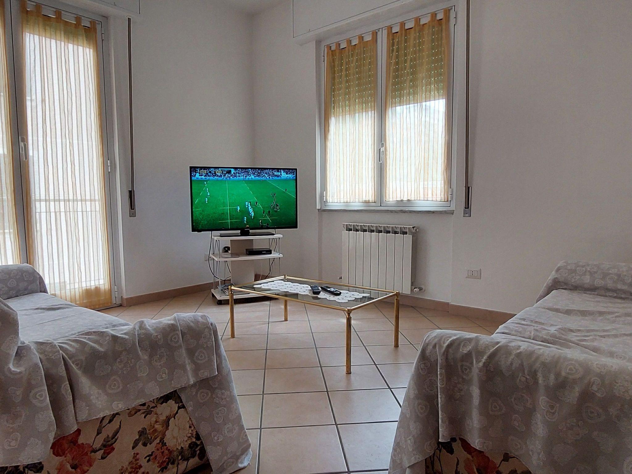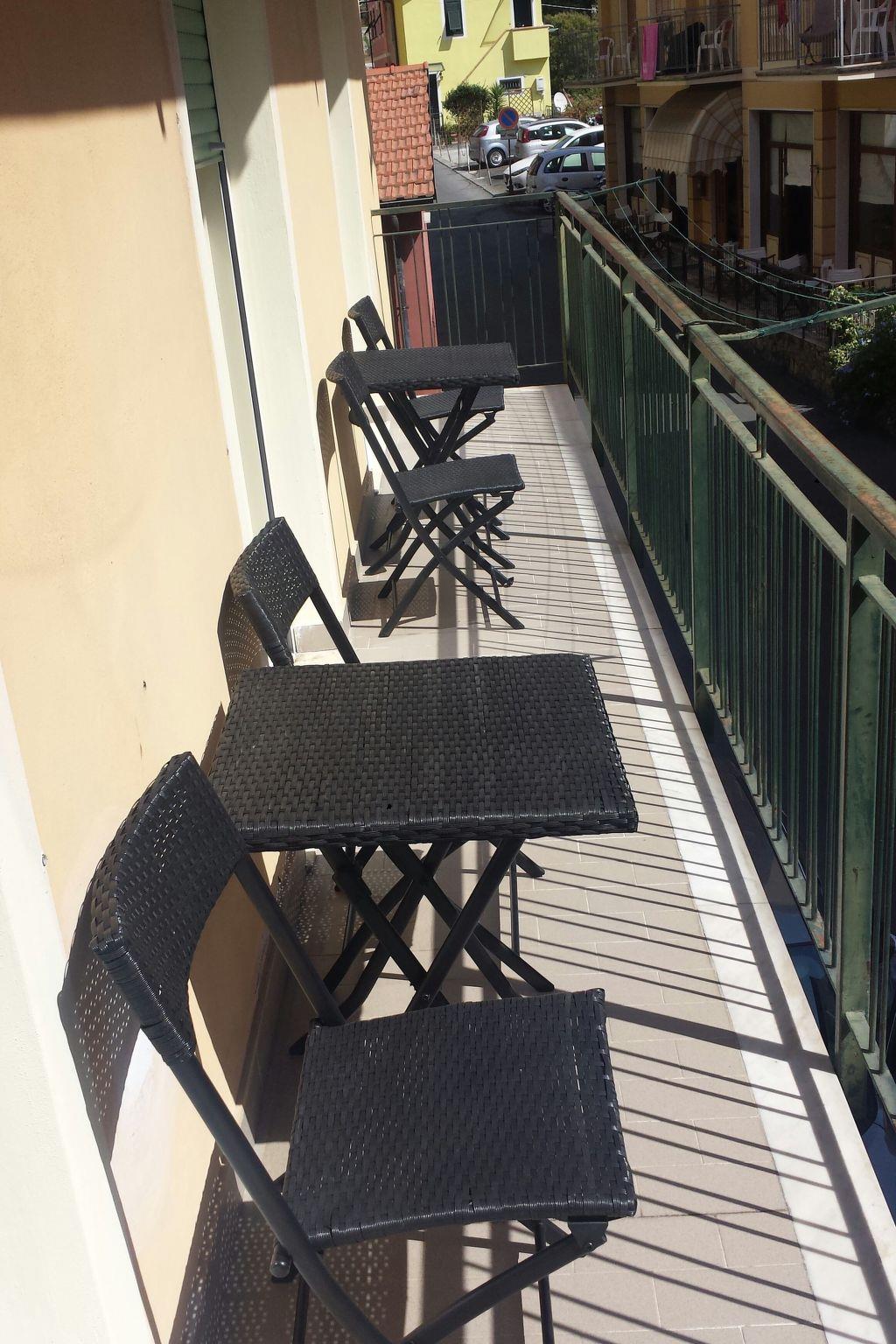 Im Außenbereich bietet der Balkon der Wohnung den idealen Platz, um sich nach einem Tag der Erkundung der örtlichen Sehenswürdigkeiten zu entspannen oder um eine Mahlzeit im Freien zu genießen, inmitten der einzigartigen Atmosphäre, die nur die italienische Riviera bieten kann.