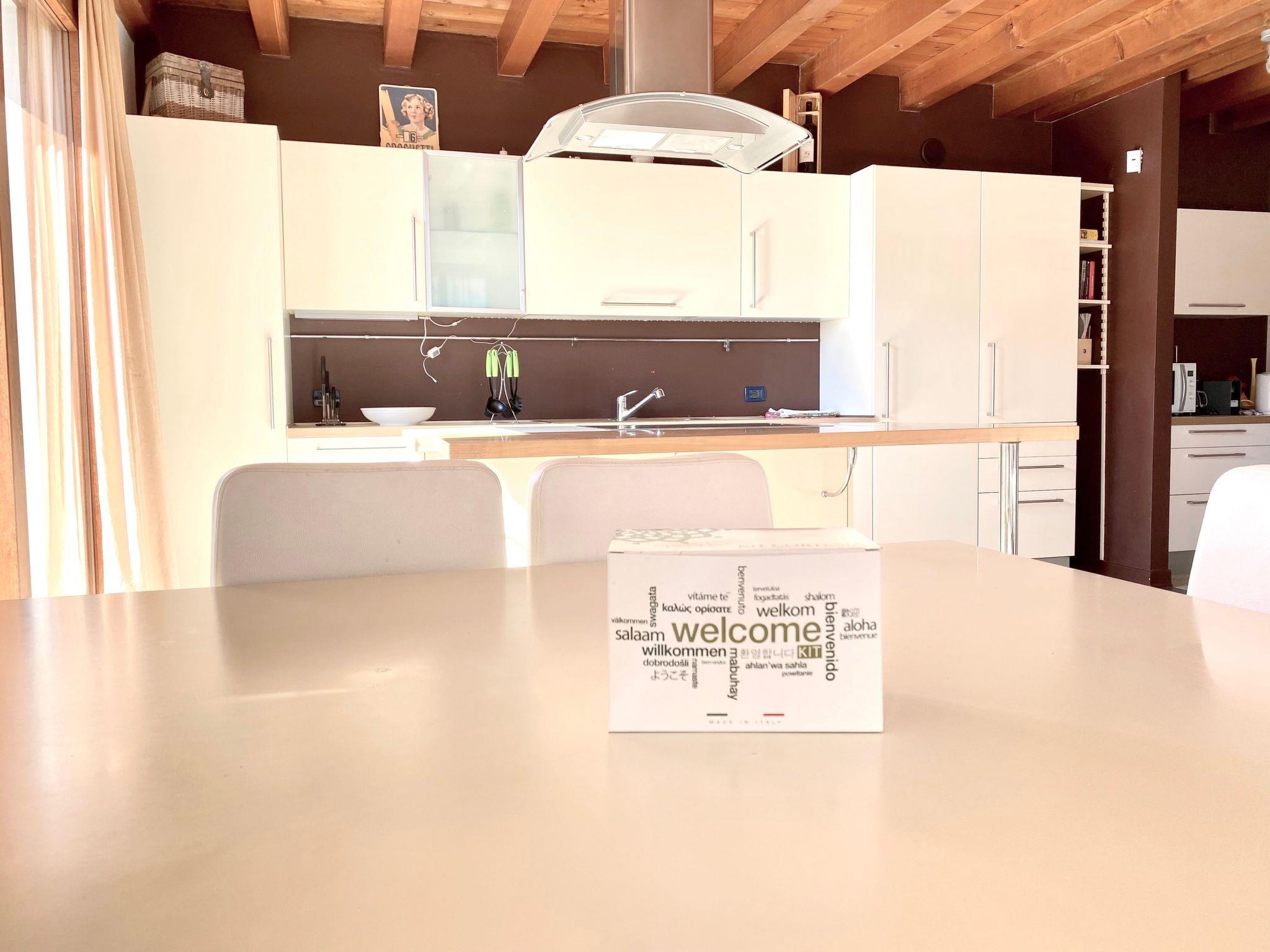 Die Wohnung ist sehr geräumig und verfügt über einen Balkon im ersten Stock und eine Terrasse im zweiten Stock, beide mit Blick auf den See.