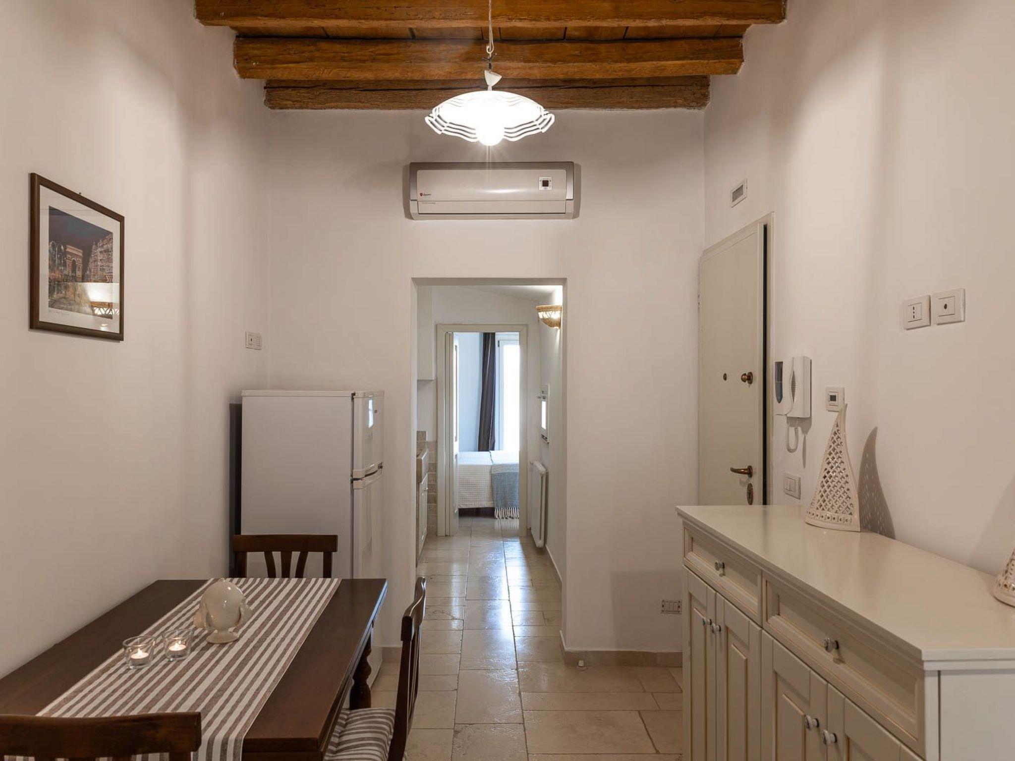 Im Außenbereich verfügt die Wohnung über eine schöne Terrasse, ein privater Raum, in dem Sie die Ruhe des Ortes genießen oder einfach nur Momente der Entspannung unter dem Himmel von Monopoli erleben können. Das Haus befindet sich im ersten Stock eines geschickt renovierten historischen Gebäudes und bietet eine Atmosphäre, die Vergangenheit und Gegenwart harmonisch miteinander verbindet und seinen Gästen ein authentisches Monopoli-Erlebnis bietet.