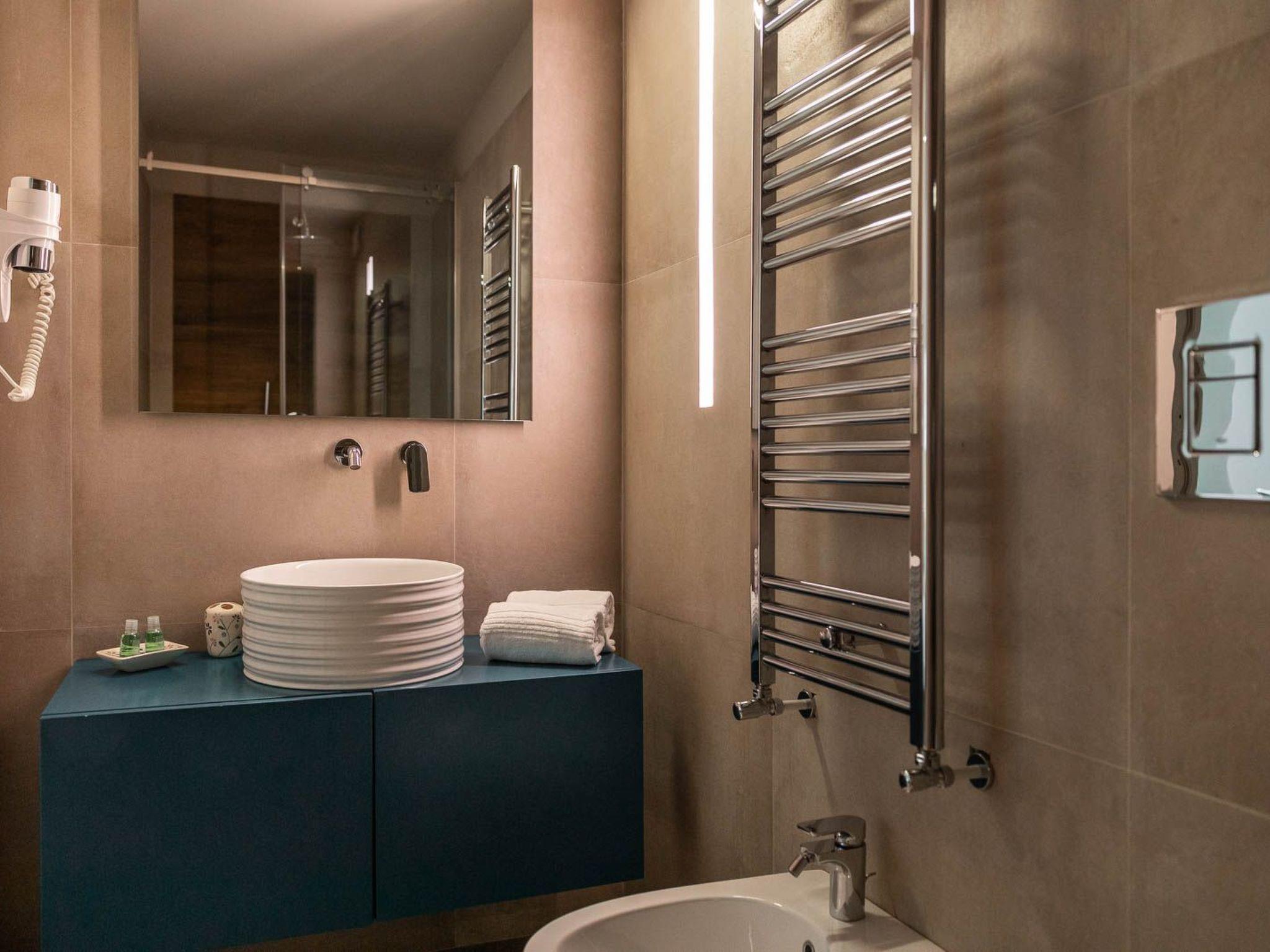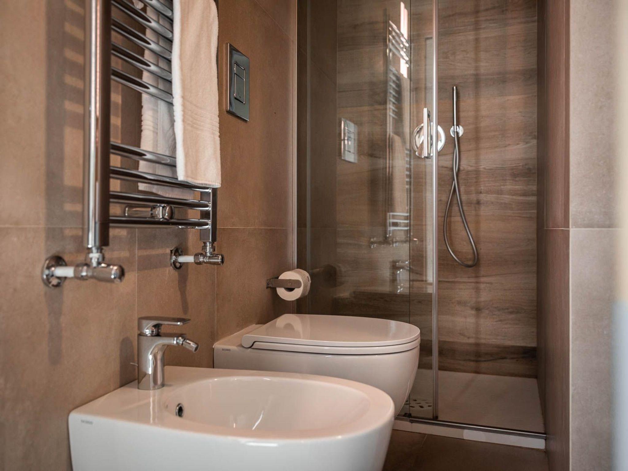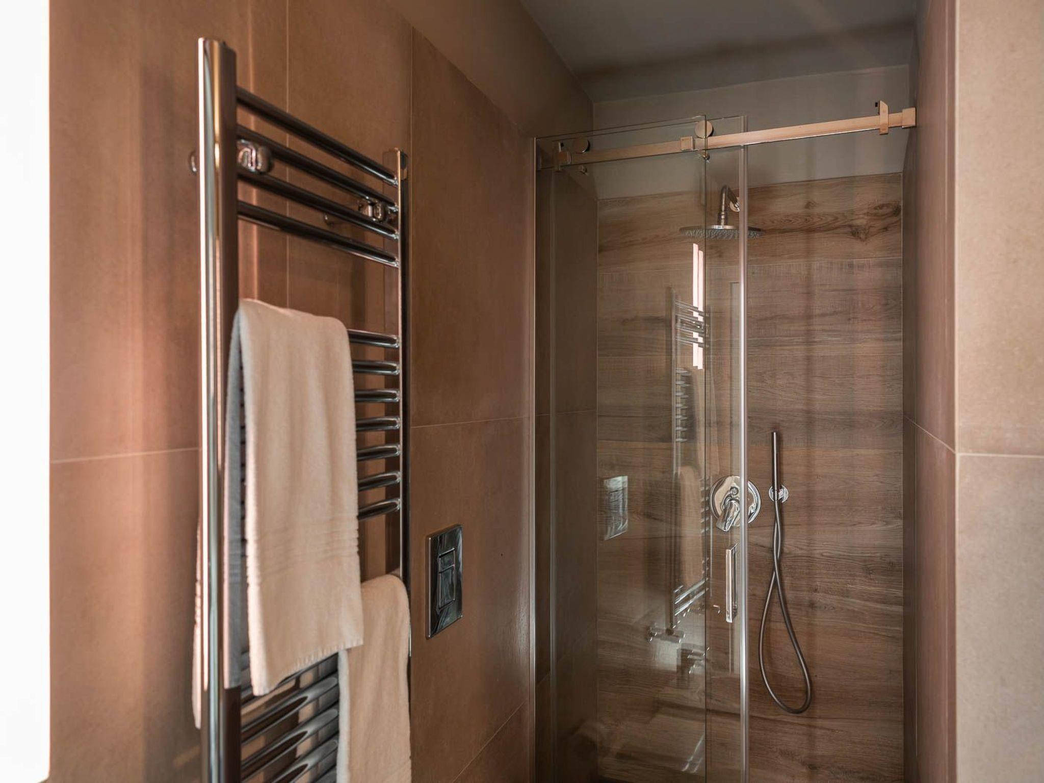 In der dritten Etage befindet sich ein großes Schlafzimmer mit Doppelbett und ein Badezimmer mit Dusche.