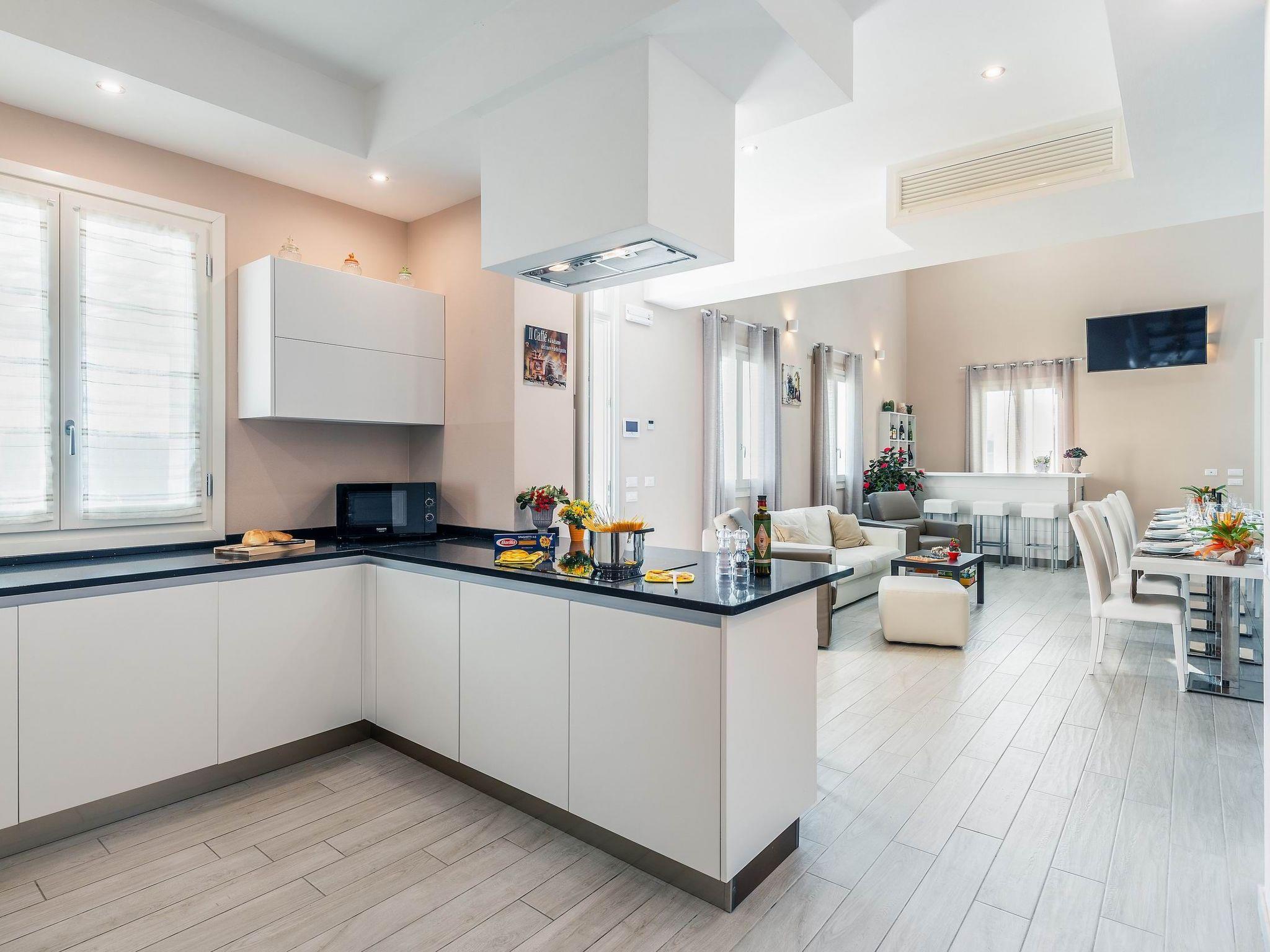 Erdgeschoss: Es gibt verschiedene offene Räume, unterteilt in einen Essbereich, eine gut ausgestattete Küche (Herd, Kühlschrank mit Gefrierfach, Backofen, Geschirrspüler, Mikrowelle, Wasserkocher, Mixer, Toaster, amerikanische Kaffee- und Espressomaschine, Eismaschine), ein Wohnzimmer mit Sofas und Satellitenfernsehen und Stereoanlage. Ein Doppelschlafzimmer mit Satellitenfernsehen, ein eigenes Bad mit Dusche und Zugang zum Garten. Eine Waschküche mit Waschmaschine und Trockner sowie Bügeleisen und Bügelbrett.
