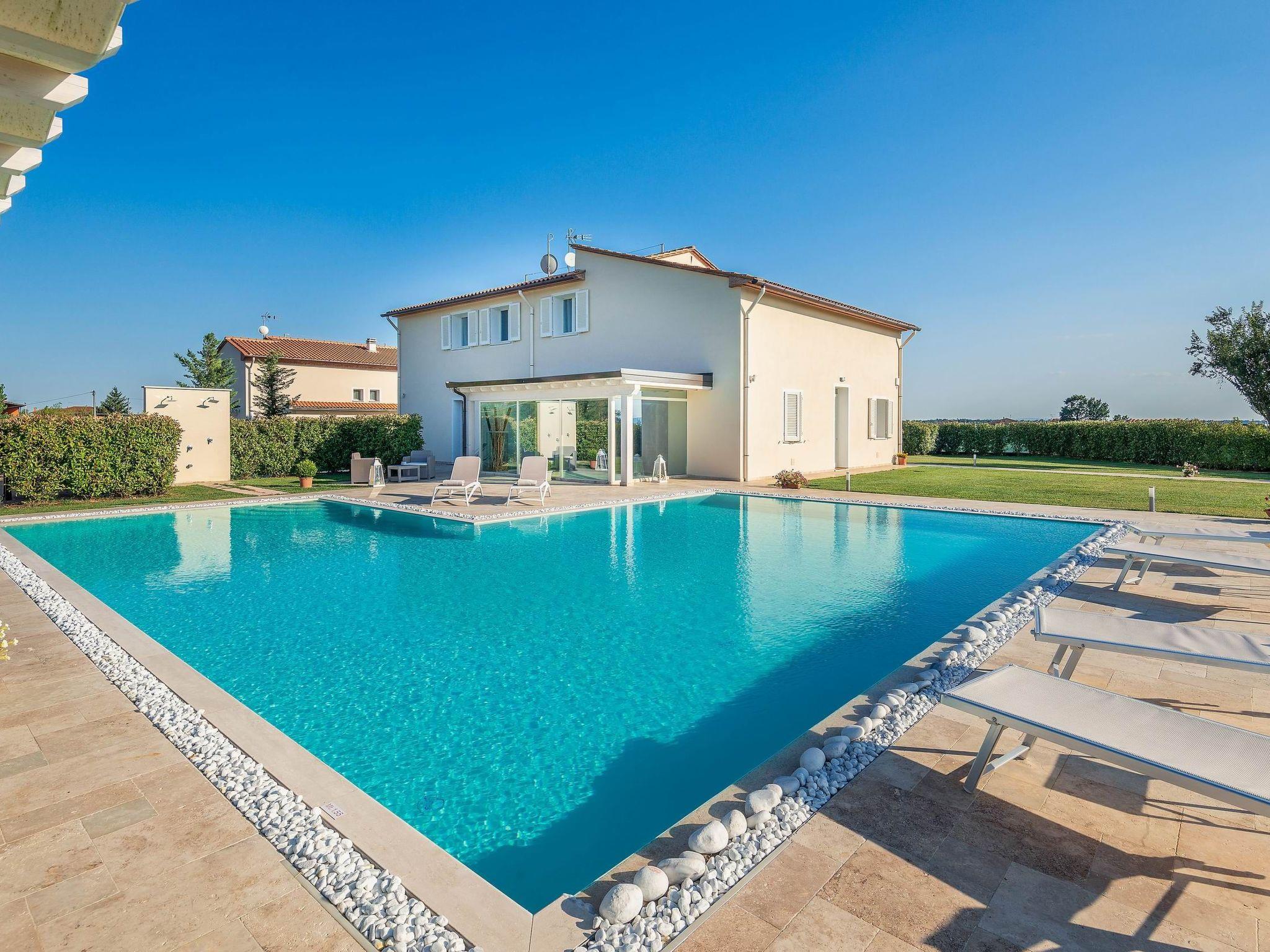 Die Villa ist in einem modernen Stil eingerichtet und bevorzugt elegante Formen und Farben. Sie ist auch der perfekte Ort für diejenigen, die einen Urlaub in absoluter Privatsphäre, Entspannung und Ruhe in der toskanischen Landschaft verbringen wollen, aber auch Geschäfte und Verkehrsmittel in der Nähe haben möchten. Die nächstgelegene Stadt, Cintolese, mit Geschäften, Supermärkten usw., ist nur 1,5 km entfernt.