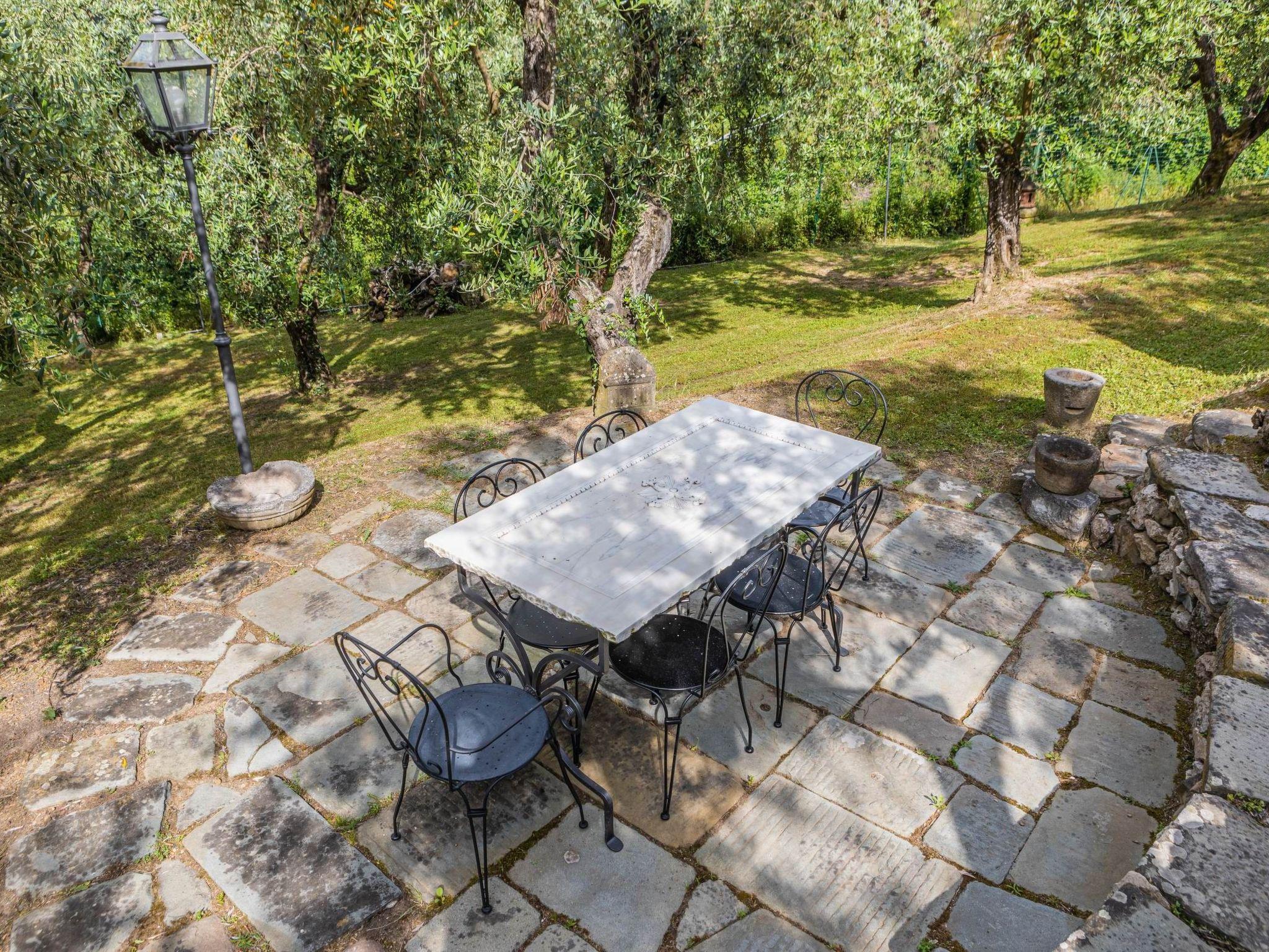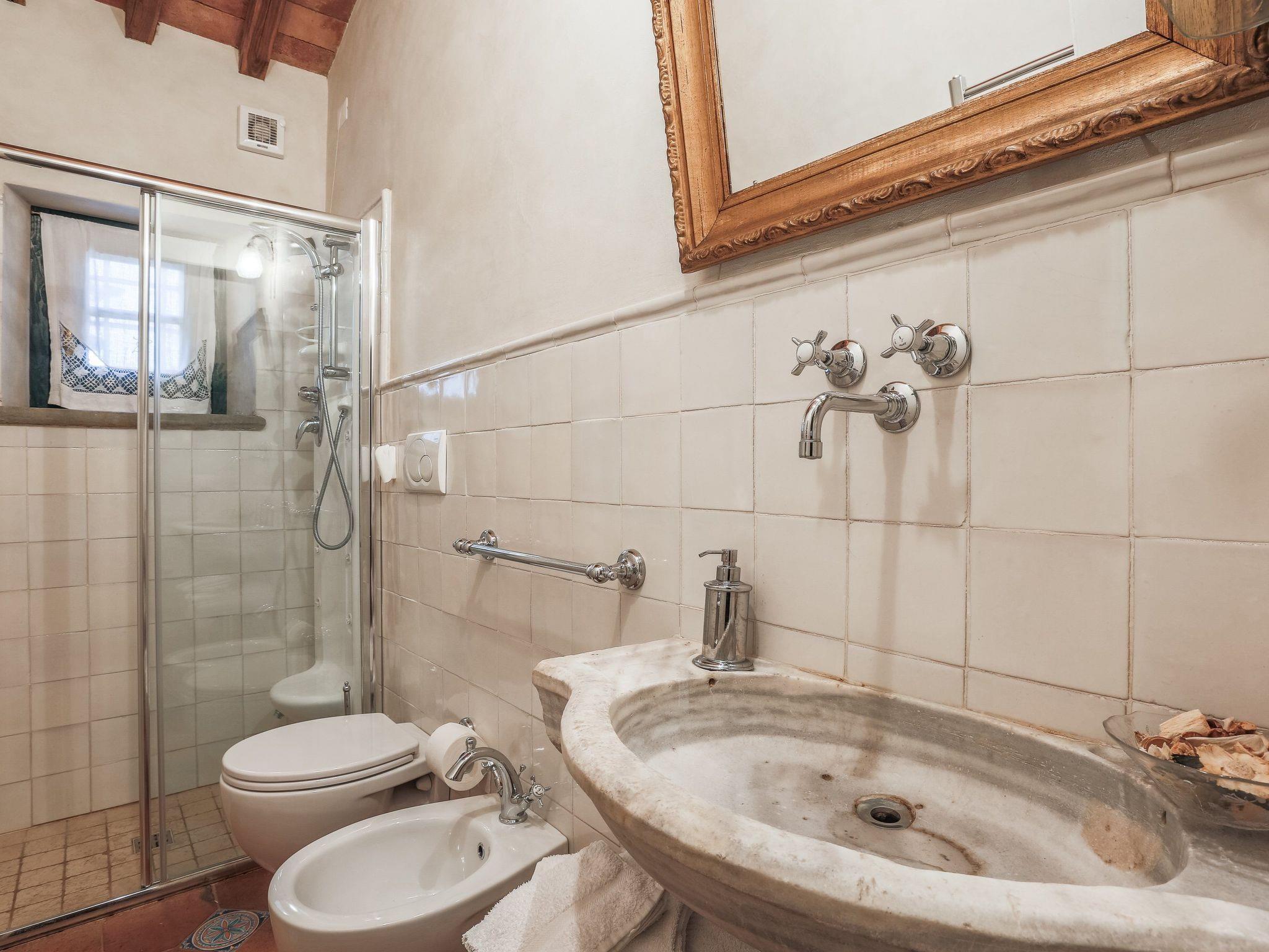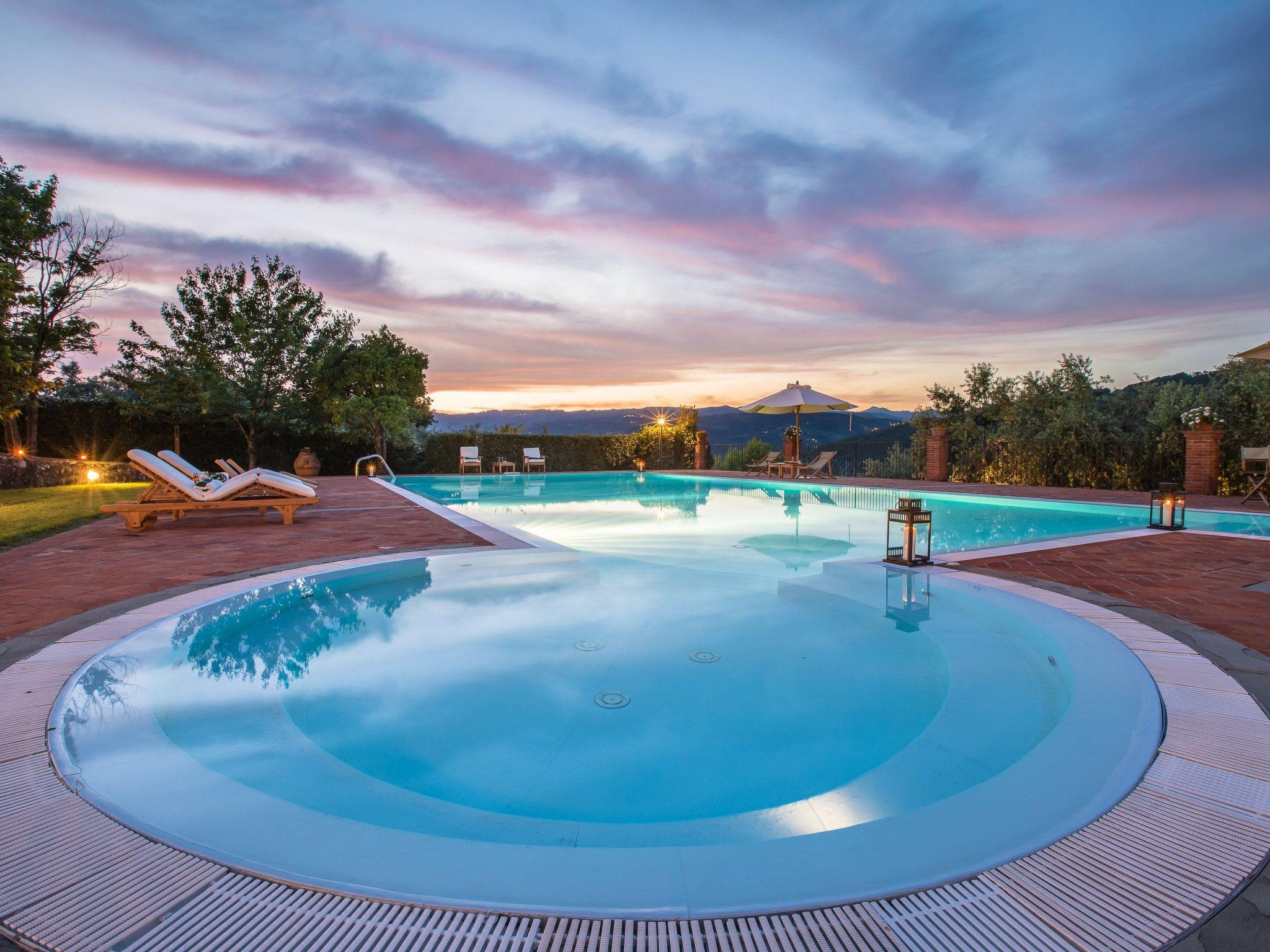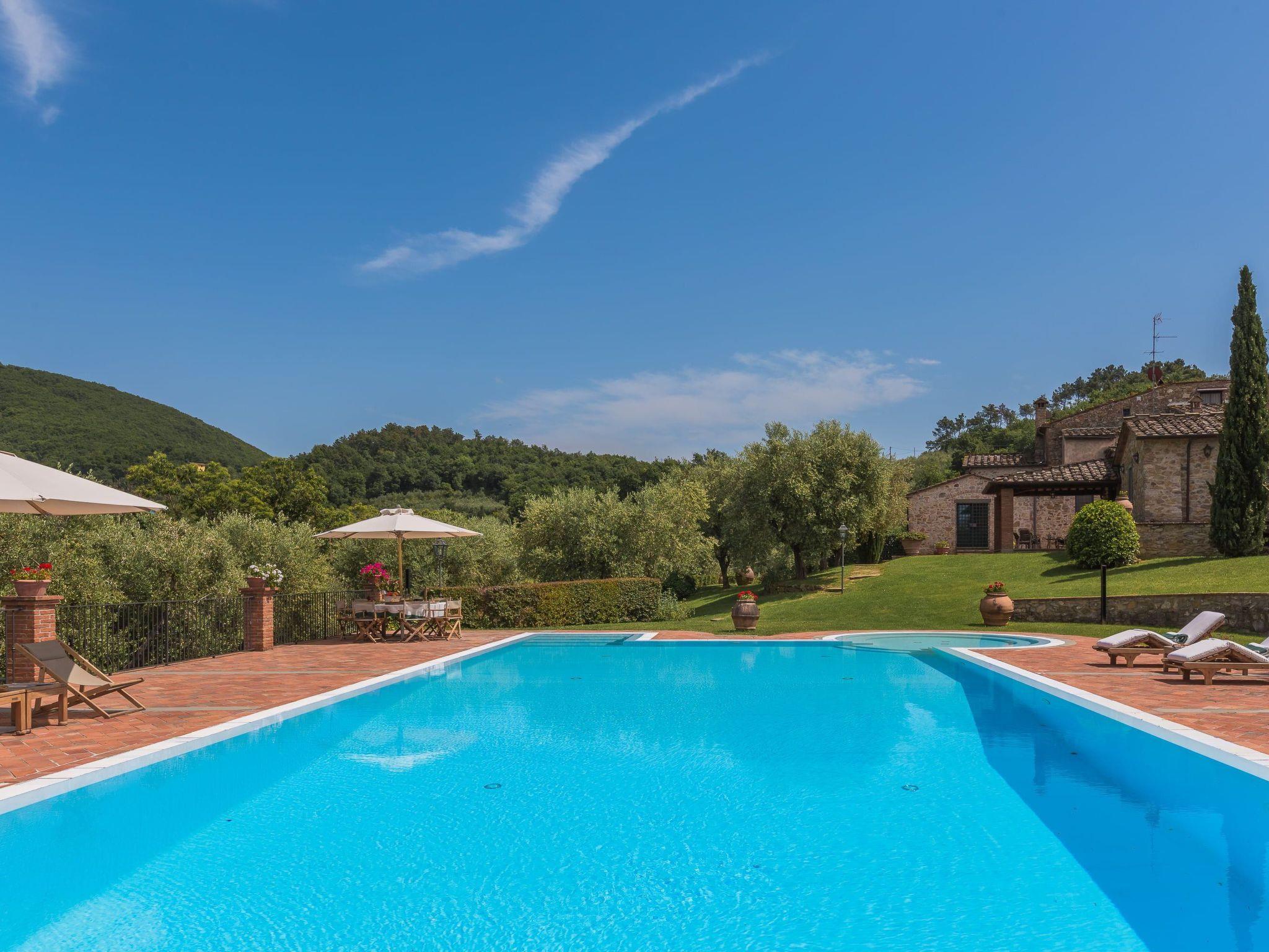 Diese charmante Steinvilla mit Swimmingpool liegt in den fruchtbaren Hügeln des Valdinievole, nur 2 km vom berühmten Kurort Monsummano Terme entfernt. Ursprünglich ein Bauernhaus aus dem 18. Jahrhundert, das aus lokalem Stein gebaut wurde, ist die Villa jetzt von einem großen Garten voller üppiger Pflanzen und schöner toskanischer Terrakotta-Vasen umgeben. In malerischer Lage mit weitem Blick auf die umliegende Landschaft befindet sich ein Infinity-Pool (16 x 8 m, Tiefe von 1,35 bis 2,50 m, geöffnet von Mitte April bis Mitte Oktober) mit einem sehr großen Whirlpool-Bereich für 8 Personen. Unter dem Pool, der mit Nachtbeleuchtung und einem akustischen Alarmsystem für die Sicherheit unserer kleinen Gäste ausgestattet ist, befindet sich ein großer Umkleideraum mit 2 Duschen und einem WC. Außerdem gibt es einen Fitnessraum, der mit einem Laufband mit Digitalanzeige, einer multifunktionalen Technogym-Bank, einem Heimtrainer und einem Kickertisch ausgestattet ist. Der Garten bietet außerdem mehrere möblierte Bereiche, die sich hervorragend für Mahlzeiten im Freien eignen, darunter ein entspannendes Amphitheater aus Stein, ein Grill und eine Kinderecke mit Schaukel und Rutsche. Ein idealer Ort für alle, die Ruhe und Erholung suchen. Die 350 m² große Villa bietet auf zwei Etagen Platz für bis zu 11 Personen. Sie ist elegant mit außergewöhnlichen Antiquitäten eingerichtet, die im Laufe der Jahre geschmackvoll gesammelt wurden, und verfügt über Holzbalkendecken und schöne alte Terrakottaböden, die von den Eigentümern liebevoll restauriert wurden. Im Erdgeschoss befindet sich ein großes Wohn-Esszimmer (80 qm) mit einem Tisch für 14 Personen und einem prächtigen Kamin aus dem 16. Jahrhundert (nicht in Gebrauch), schrägen Decken mit Holzbalken und Fenstertüren zum Garten mit Blick auf das historische Zentrum von Monsummano Alto; ein weiteres Wohnzimmer mit Satellitenfernsehen (Netflix, Bose Bluetooth-Akustiklautsprecher) und einem Doppelschlafsofa sowie einem Einzelbett führt zur großen toskanischen Küche mit Kamin (komplett ausgestattet mit professionellem Kochfeld mit 2 Backöfen, Side-by-Side-Kühlschrank mit Eismaschine, Geschirrspüler, Mikrowelle, Nespresso-Kaffeemaschine, amerikanischer Kaffeemaschine, Mokka, Toaster, Mixer, Saftpresse), einem gusseisernen Herd mit Backöfen und einer Fenstertür, die auf die Veranda führt, die für Mahlzeiten im Freien mit einem Tisch für 14 Personen geeignet ist ein Doppelschlafzimmer mit einem Kamin aus dem 17. Jahrhundert (nicht in Gebrauch) und Flügeltüren zu einer überdachten Veranda; ein Badezimmer mit Hydromassage-Dusche; eine Waschküche mit Waschmaschine und Trockner. Von der Eingangshalle führt eine Steintreppe in den ersten Stock, wo sich ein großes Doppelzimmer (30 m²) mit eigenem Bad mit türkischer Badewanne/Dusche, ein weiteres Doppelzimmer und ein Zweibettzimmer (das in ein weiteres Doppelbett umgewandelt werden kann) befinden, die sich beide ein Bad mit Whirlpool und Dusche mit Chromotherapie- und Aromatherapieset teilen. Alle Zimmer sind mit prächtigen Perserteppichen ausgestattet. Annehmlichkeiten: Wi-Fi (bis zu 30 MB Download, bis zu 3 MB Upload), alle Doppelbetten sind Kingsize-Betten, alle Fenster sind mit Moskitonetzen ausgestattet, Kinderbetten, Hochstühle, Babyflaschen-Sterilisator auf Anfrage, Heizung und Klimaanlage in allen Zimmern (Heizungs- und Klimaanlagenverbrauch nicht inbegriffen), Willkommenskorb mit leichtem Abendessen am Ankunftsabend und kontinentalem Frühstück am ersten Morgen, Housekeeping am Mittwoch (2 Stunden) mit Handtuchwechsel, kostenlose Toilettenartikel in allen Badezimmern mit Dusch-/Shampoo/Handseife und Körper-/Handcreme, Haartrockner in allen Badezimmern, Wandsafe, Netflix, Bose Bluetooth-Lautsprecher, Feuerlöscher und Löschdecke, Kohlenmonoxiddetektoren in den Küchen, Rauchmelder auf jeder Etage, Erste-Hilfe-Kasten (einer in der Villa und einer in der Umkleidekabine am Pool), akustisches Alarmsystem am Pool, 4 Mountainbikes, Holzkohle und Feuertabletten für Grillabende und Privatparkplatz für bis zu 5 Personen. Auto, kleine Haustiere auf Anfrage erlaubt. Persönlicher Koch, Wein- und Produktverkostungen, Babysitter, Transfer zum/vom Flughafen, Lebensmittellieferservice, Friseur/Kosmetikerin/Masseurin im Haus; Organisation von Kochkursen, Weinbergsbesichtigungen und Weinverkostungen, Malkursen (auf Leinwand oder Porzellan); Bereitstellung eines Fahrers und eines Hochzeitsplaners und Partyplaners. Entfernungen: nächste Geschäfte und Restaurants Monsummano Terme 2 km, Montecatini Terme 5 km, San Miniato 30 km, Flughafen Florenz 40 km, Flughafen Pisa 45 km.