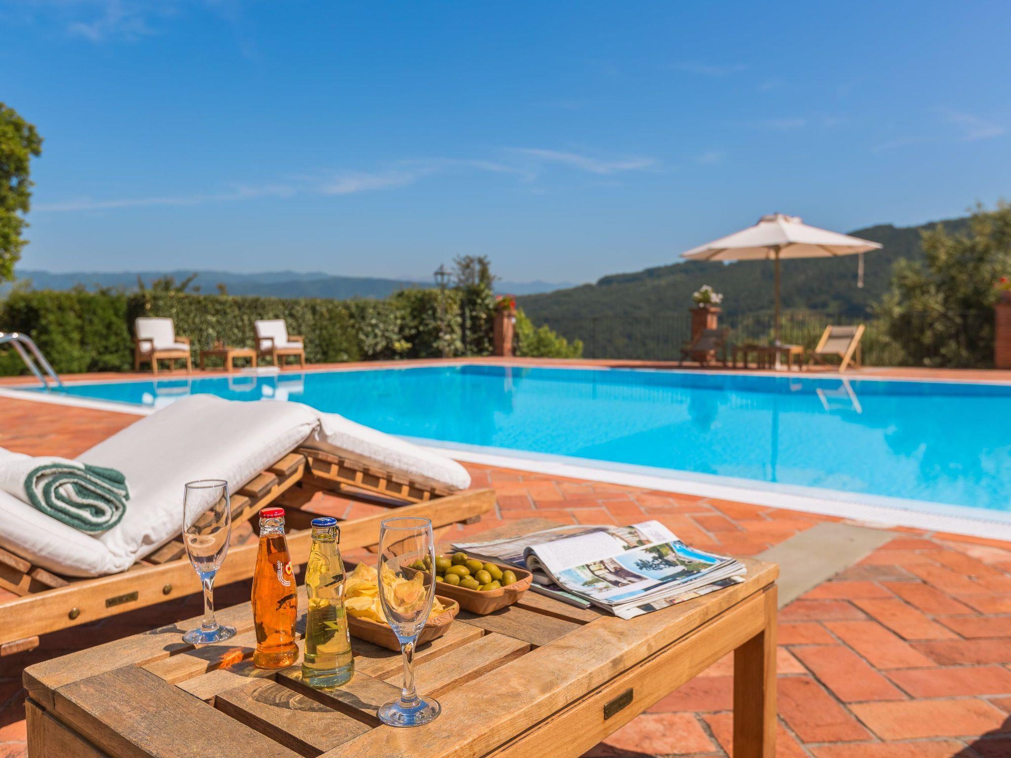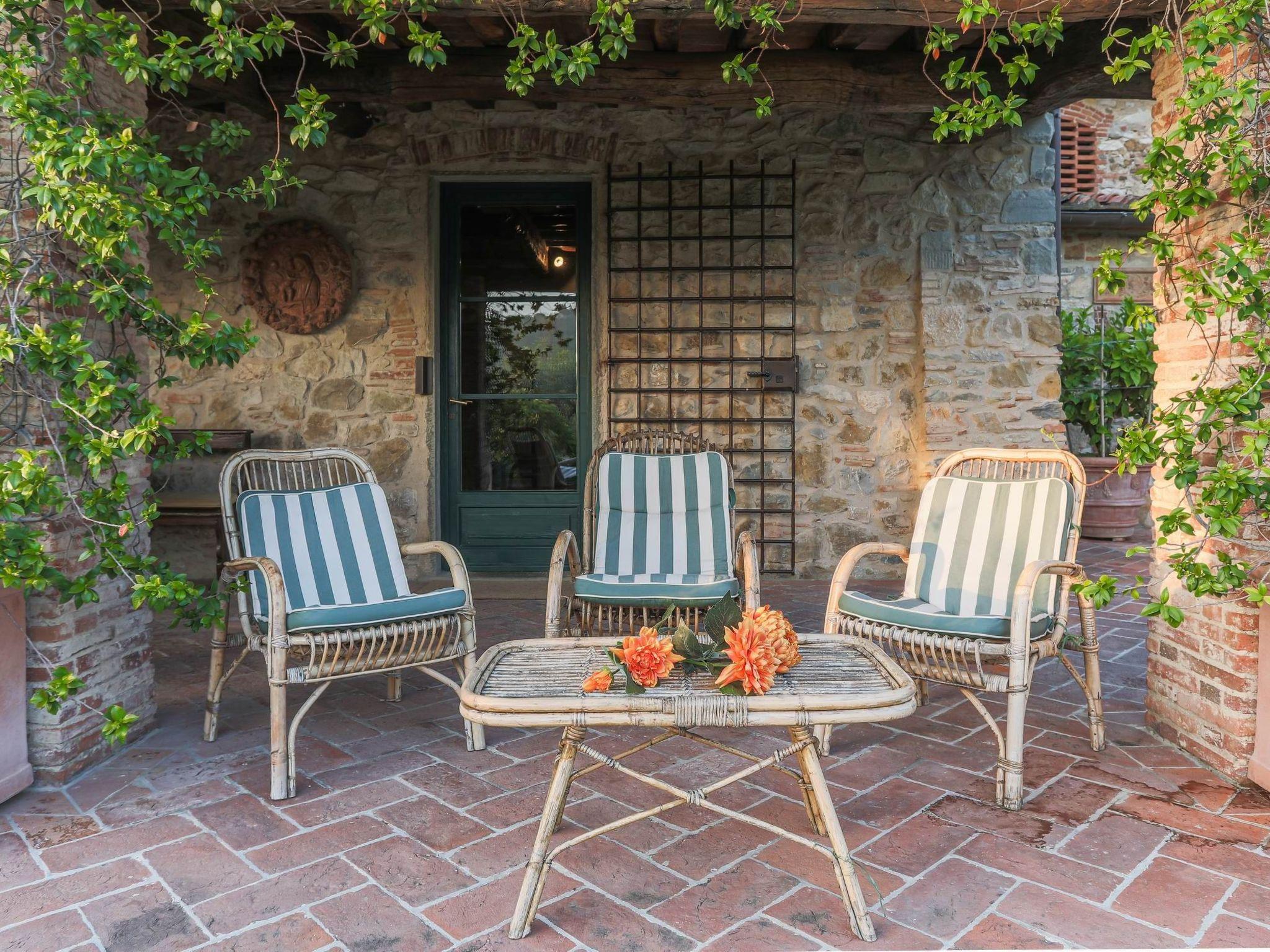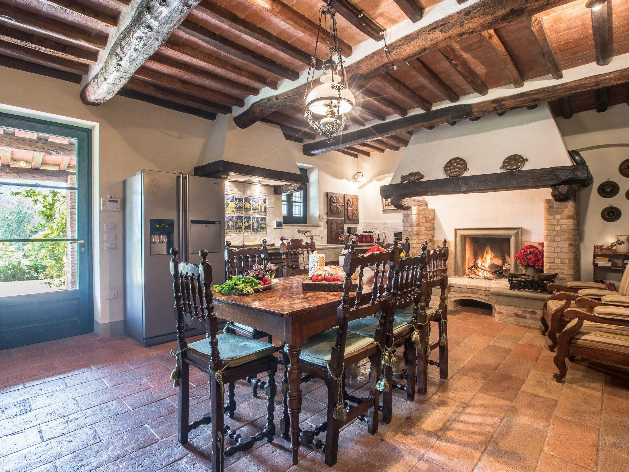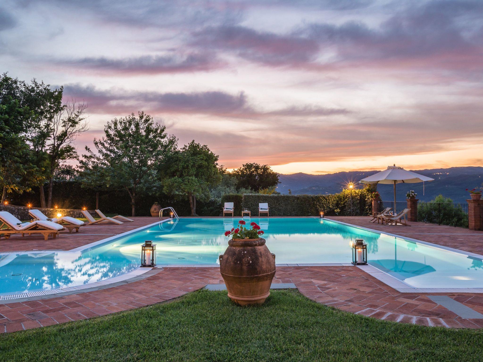 Diese charmante Steinvilla mit Swimmingpool liegt in den fruchtbaren Hügeln des Valdinievole, nur 2 km vom berühmten Kurort Monsummano Terme entfernt. Ursprünglich ein Bauernhaus aus dem 18. Jahrhundert, das aus lokalem Stein gebaut wurde, ist die Villa jetzt von einem großen Garten voller üppiger Pflanzen und schöner toskanischer Terrakotta-Vasen umgeben. In malerischer Lage mit weitem Blick auf die umliegende Landschaft befindet sich ein Infinity-Pool (16 x 8 m, Tiefe von 1,35 bis 2,50 m, geöffnet von Mitte April bis Mitte Oktober) mit einem sehr großen Whirlpool-Bereich für 8 Personen. Unter dem Pool, der mit Nachtbeleuchtung und einem akustischen Alarmsystem für die Sicherheit unserer kleinen Gäste ausgestattet ist, befindet sich ein großer Umkleideraum mit 2 Duschen und einem WC. Außerdem gibt es einen Fitnessraum, der mit einem Laufband mit Digitalanzeige, einer multifunktionalen Technogym-Bank, einem Heimtrainer und einem Kickertisch ausgestattet ist. Der Garten bietet außerdem mehrere möblierte Bereiche, die sich hervorragend für Mahlzeiten im Freien eignen, darunter ein entspannendes Amphitheater aus Stein, ein Grill und eine Kinderecke mit Schaukel und Rutsche. Ein idealer Ort für alle, die Ruhe und Erholung suchen. Die 350 m² große Villa bietet auf zwei Etagen Platz für bis zu 11 Personen. Sie ist elegant mit außergewöhnlichen Antiquitäten eingerichtet, die im Laufe der Jahre geschmackvoll gesammelt wurden, und verfügt über Holzbalkendecken und schöne alte Terrakottaböden, die von den Eigentümern liebevoll restauriert wurden. Im Erdgeschoss befindet sich ein großes Wohn-Esszimmer (80 qm) mit einem Tisch für 14 Personen und einem prächtigen Kamin aus dem 16. Jahrhundert (nicht in Gebrauch), schrägen Decken mit Holzbalken und Fenstertüren zum Garten mit Blick auf das historische Zentrum von Monsummano Alto; ein weiteres Wohnzimmer mit Satellitenfernsehen (Netflix, Bose Bluetooth-Akustiklautsprecher) und einem Doppelschlafsofa sowie einem Einzelbett führt zur großen toskanischen Küche mit Kamin (komplett ausgestattet mit professionellem Kochfeld mit 2 Backöfen, Side-by-Side-Kühlschrank mit Eismaschine, Geschirrspüler, Mikrowelle, Nespresso-Kaffeemaschine, amerikanischer Kaffeemaschine, Mokka, Toaster, Mixer, Saftpresse), einem gusseisernen Herd mit Backöfen und einer Fenstertür, die auf die Veranda führt, die für Mahlzeiten im Freien mit einem Tisch für 14 Personen geeignet ist ein Doppelschlafzimmer mit einem Kamin aus dem 17. Jahrhundert (nicht in Gebrauch) und Flügeltüren zu einer überdachten Veranda; ein Badezimmer mit Hydromassage-Dusche; eine Waschküche mit Waschmaschine und Trockner. Von der Eingangshalle führt eine Steintreppe in den ersten Stock, wo sich ein großes Doppelzimmer (30 m²) mit eigenem Bad mit türkischer Badewanne/Dusche, ein weiteres Doppelzimmer und ein Zweibettzimmer (das in ein weiteres Doppelbett umgewandelt werden kann) befinden, die sich beide ein Bad mit Whirlpool und Dusche mit Chromotherapie- und Aromatherapieset teilen. Alle Zimmer sind mit prächtigen Perserteppichen ausgestattet. Annehmlichkeiten: Wi-Fi (bis zu 30 MB Download, bis zu 3 MB Upload), alle Doppelbetten sind Kingsize-Betten, alle Fenster sind mit Moskitonetzen ausgestattet, Kinderbetten, Hochstühle, Babyflaschen-Sterilisator auf Anfrage, Heizung und Klimaanlage in allen Zimmern (Heizungs- und Klimaanlagenverbrauch nicht inbegriffen), Willkommenskorb mit leichtem Abendessen am Ankunftsabend und kontinentalem Frühstück am ersten Morgen, Housekeeping am Mittwoch (2 Stunden) mit Handtuchwechsel, kostenlose Toilettenartikel in allen Badezimmern mit Dusch-/Shampoo/Handseife und Körper-/Handcreme, Haartrockner in allen Badezimmern, Wandsafe, Netflix, Bose Bluetooth-Lautsprecher, Feuerlöscher und Löschdecke, Kohlenmonoxiddetektoren in den Küchen, Rauchmelder auf jeder Etage, Erste-Hilfe-Kasten (einer in der Villa und einer in der Umkleidekabine am Pool), akustisches Alarmsystem am Pool, 4 Mountainbikes, Holzkohle und Feuertabletten für Grillabende und Privatparkplatz für bis zu 5 Personen. Auto, kleine Haustiere auf Anfrage erlaubt. Persönlicher Koch, Wein- und Produktverkostungen, Babysitter, Transfer zum/vom Flughafen, Lebensmittellieferservice, Friseur/Kosmetikerin/Masseurin im Haus; Organisation von Kochkursen, Weinbergsbesichtigungen und Weinverkostungen, Malkursen (auf Leinwand oder Porzellan); Bereitstellung eines Fahrers und eines Hochzeitsplaners und Partyplaners. Entfernungen: nächste Geschäfte und Restaurants Monsummano Terme 2 km, Montecatini Terme 5 km, San Miniato 30 km, Flughafen Florenz 40 km, Flughafen Pisa 45 km.