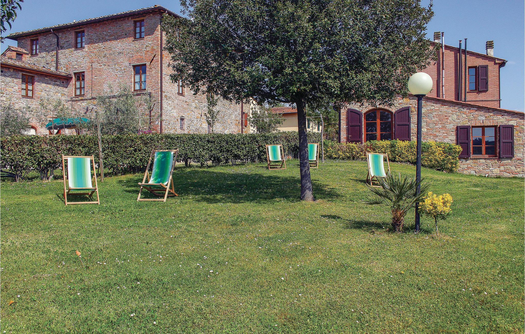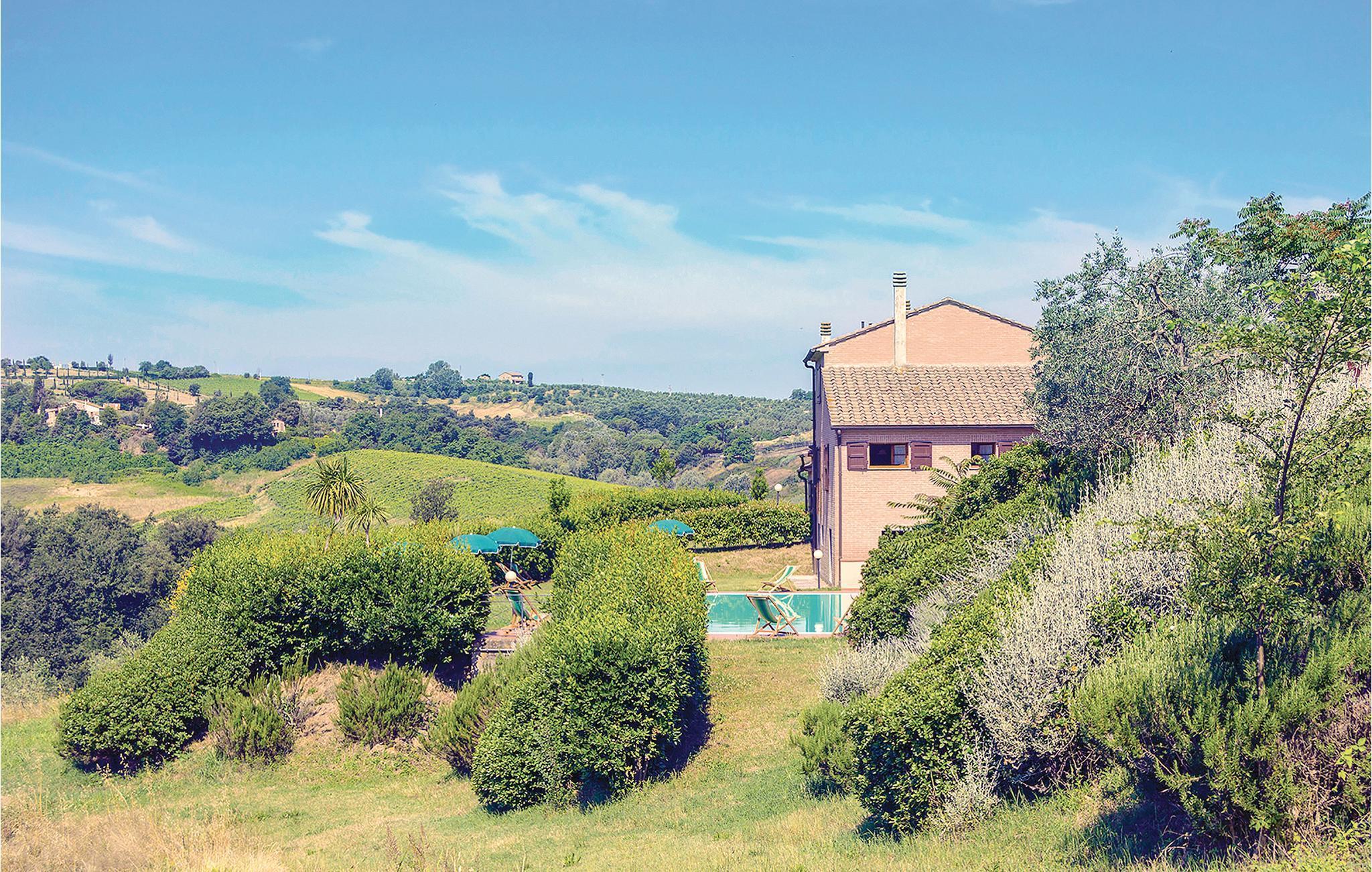 Schöner Landhauskomplex in ruhiger Panoramalage in den Hügeln um Montaione (2 Km), nur 20 Minuten von der wunderschönen weltbekannten Turmstadt San Gimignano entfernt. Der Weiler besteht aus dem Haus des Eigentümers und 13 Ferienwohnungen. Die charakteristische Silhouette des mittelalterlichen San Gimignano mit seinen emporragenden Türmen erkennt man schon von Weitem. Hier sollten Sie unbedingt den guten lokalen Vernaccia- Weißwein am bezaubernden Domplatz genießen und im Dom aus dem 12. Jahrhundert können Sie Fresken mit Geschichten aus dem Alten und Neuen Testament bewundern. Ein Muss ist der Panoramablick von der Ruine der Rocca aus: Den atemberaubenden Blick auf die Türme und die umliegende Hügellandschaft wird Ihnen garantiert lange in Erinnerung bleiben! Zufahrt über 800 m Naturstraße. Gemeinschaftsraum mit SAT-TV. Waschmaschinennutzung mit Gebühr. Siehe ITN162 - ITN170 und ITN604 - ITN607.