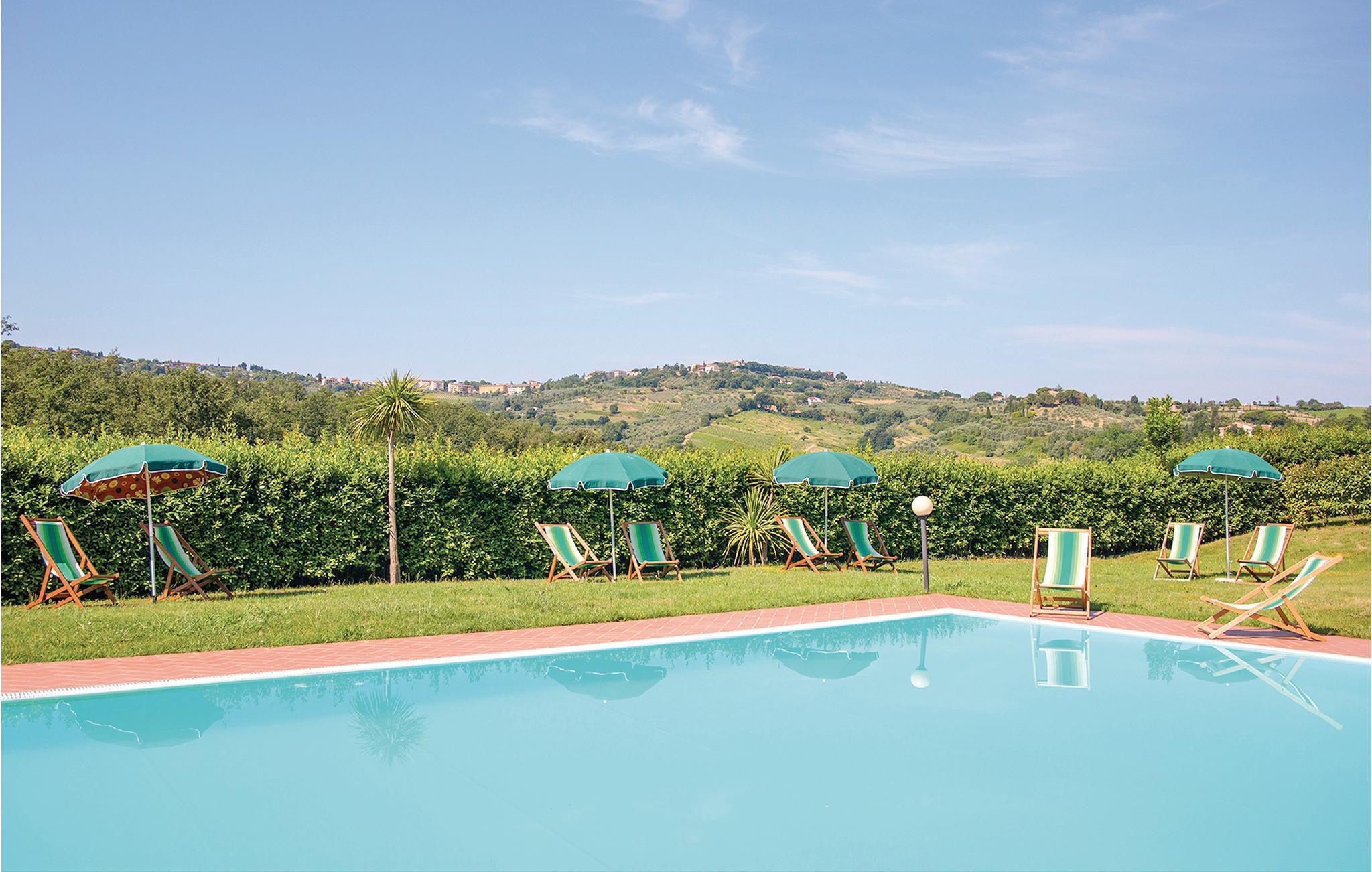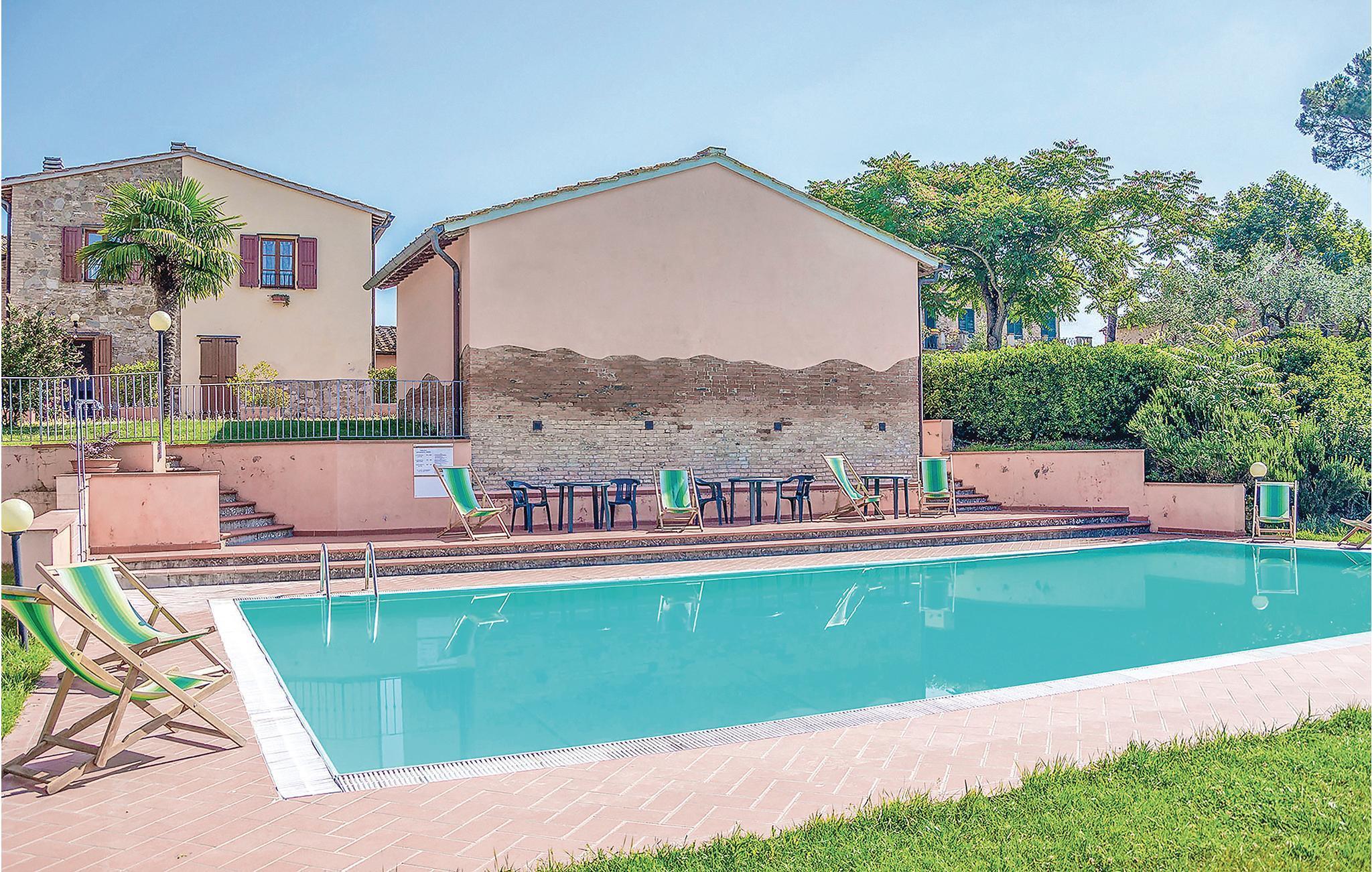 Schöner Landhauskomplex in ruhiger Panoramalage in den Hügeln um Montaione (2 Km), nur 20 Minuten von der wunderschönen weltbekannten Turmstadt San Gimignano entfernt. Der Weiler besteht aus dem Haus des Eigentümers und 13 Ferienwohnungen. Die charakteristische Silhouette des mittelalterlichen San Gimignano mit seinen emporragenden Türmen erkennt man schon von Weitem. Hier sollten Sie unbedingt den guten lokalen Vernaccia- Weißwein am bezaubernden Domplatz genießen und im Dom aus dem 12. Jahrhundert können Sie Fresken mit Geschichten aus dem Alten und Neuen Testament bewundern. Ein Muss ist der Panoramablick von der Ruine der Rocca aus: Den atemberaubenden Blick auf die Türme und die umliegende Hügellandschaft wird Ihnen garantiert lange in Erinnerung bleiben! Zufahrt über 800 m Naturstraße. Gemeinschaftsraum mit SAT-TV. Waschmaschinennutzung mit Gebühr. Siehe ITN162 - ITN170 und ITN604 - ITN607.