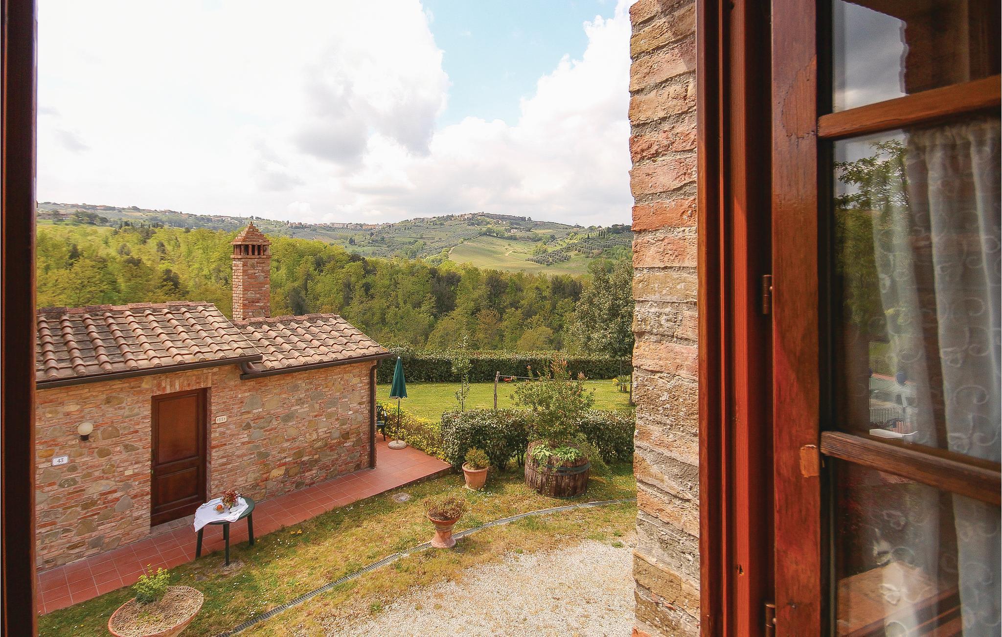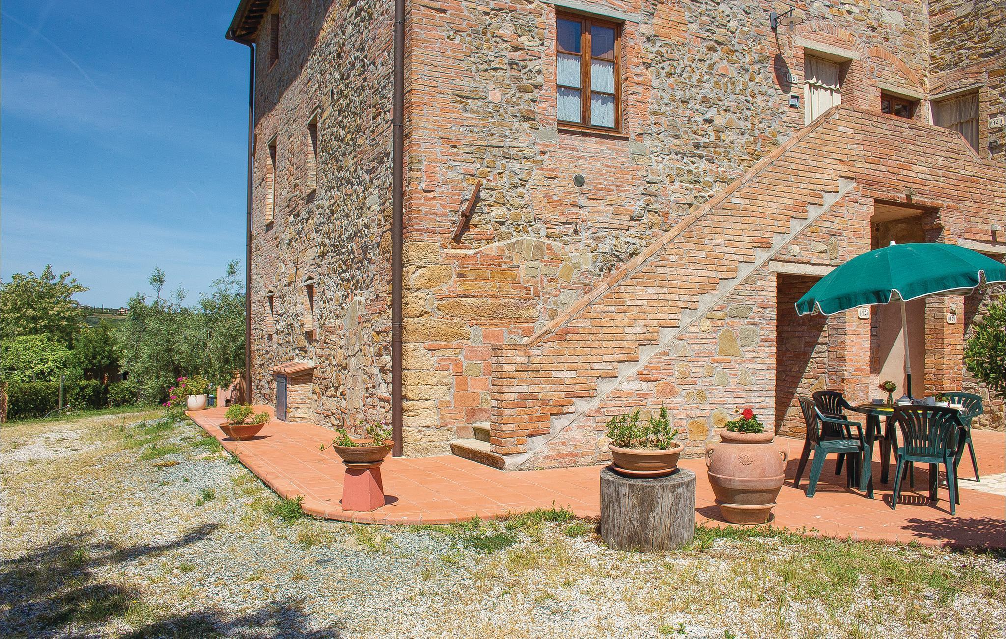 Schöner Landhauskomplex in ruhiger Panoramalage in den Hügeln um Montaione (2 Km), nur 20 Minuten von der wunderschönen weltbekannten Turmstadt San Gimignano entfernt. Der Weiler besteht aus dem Haus des Eigentümers und 13 Ferienwohnungen. Die charakteristische Silhouette des mittelalterlichen San Gimignano mit seinen emporragenden Türmen erkennt man schon von Weitem. Hier sollten Sie unbedingt den guten lokalen Vernaccia- Weißwein am bezaubernden Domplatz genießen und im Dom aus dem 12. Jahrhundert können Sie Fresken mit Geschichten aus dem Alten und Neuen Testament bewundern. Ein Muss ist der Panoramablick von der Ruine der Rocca aus: Den atemberaubenden Blick auf die Türme und die umliegende Hügellandschaft wird Ihnen garantiert lange in Erinnerung bleiben! Zufahrt über 800 m Naturstraße. Gemeinschaftsraum mit SAT-TV. Waschmaschinennutzung mit Gebühr. Siehe ITN162 - ITN170 und ITN604 - ITN607.