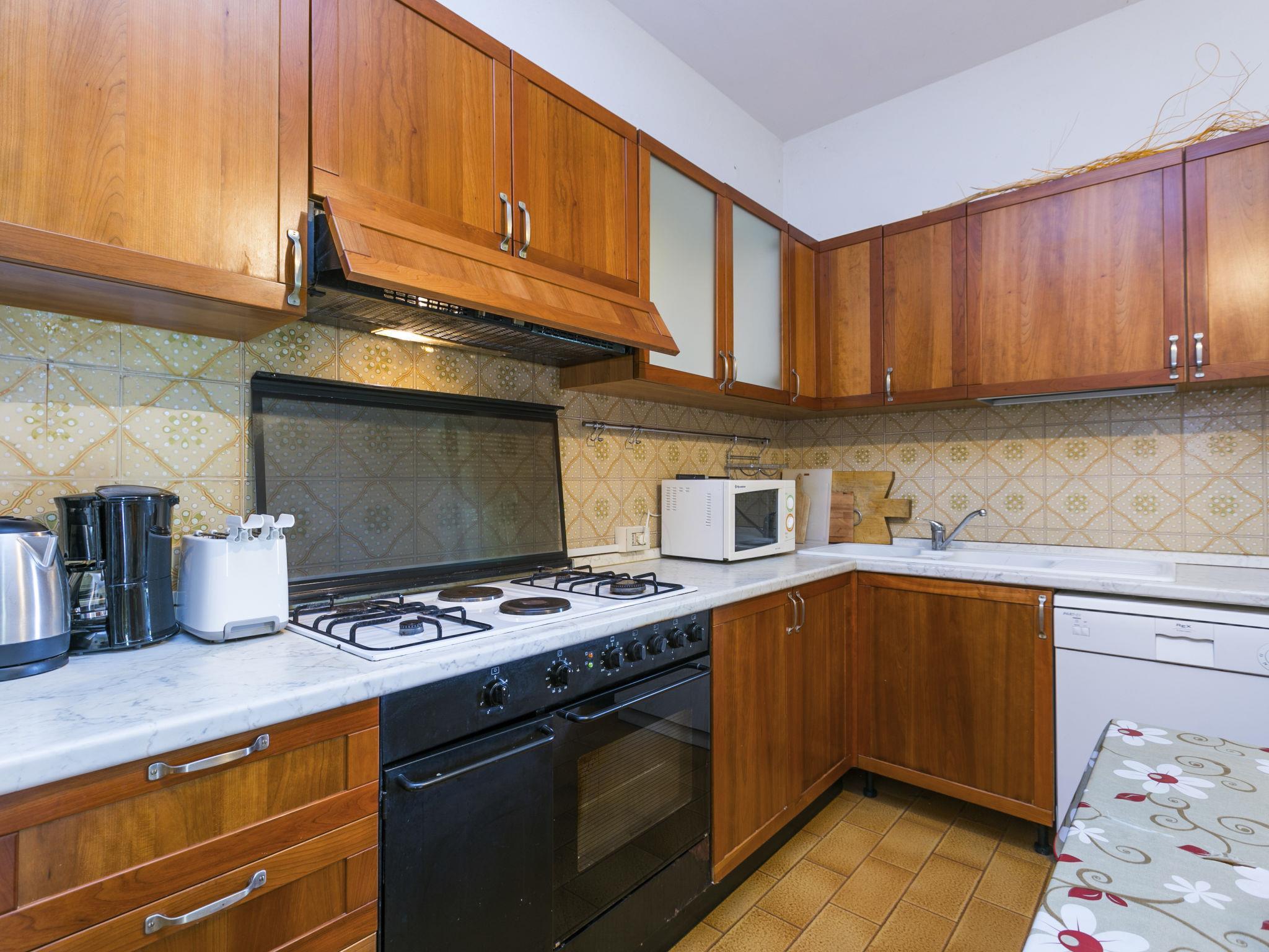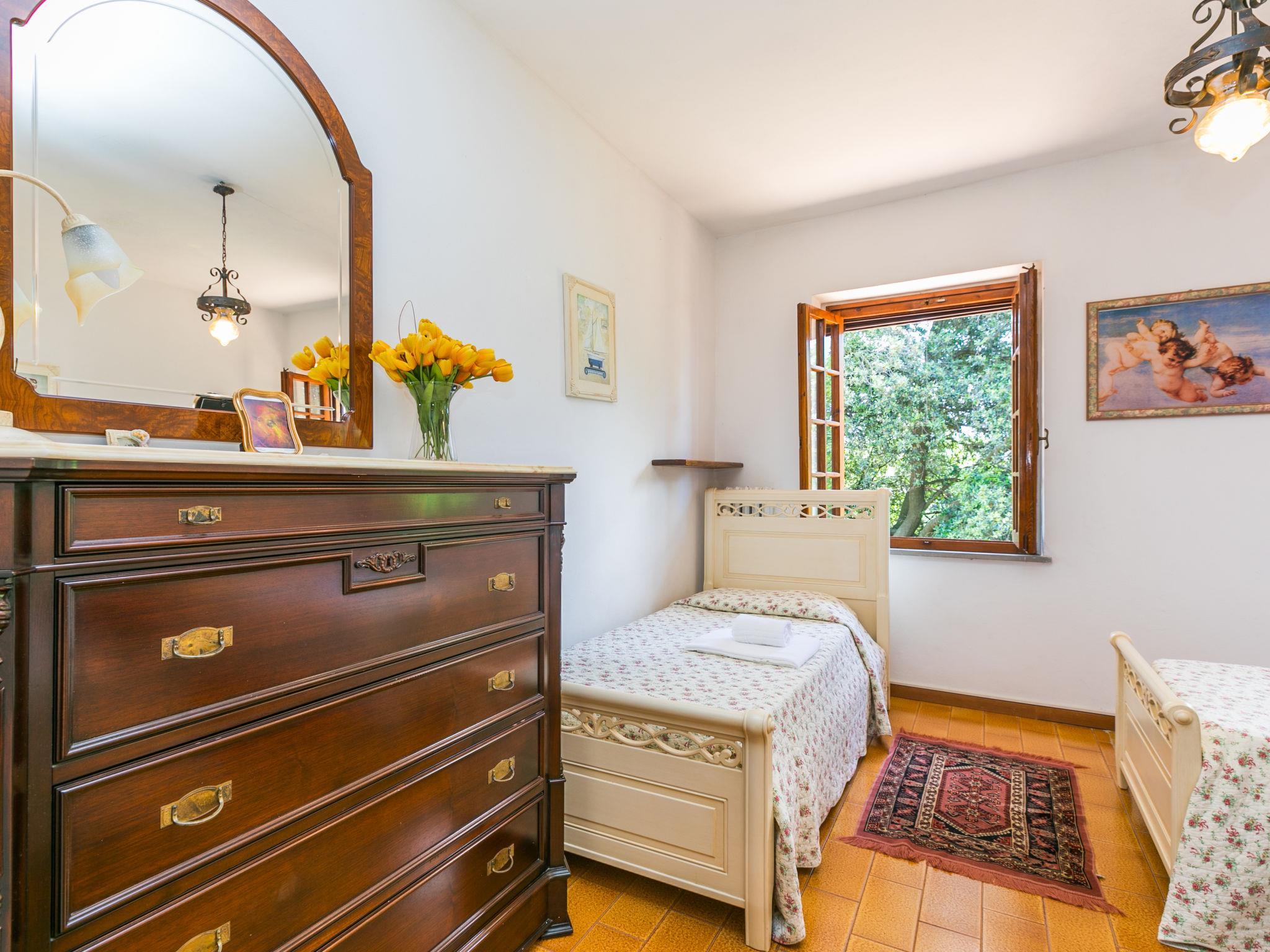 8-Zimmer-Haus 300 m2 auf 2 Stockwerken, im Erdgeschoss. Objekt geeignet für 11 Erwachsene + 2 Kinder. Rustikal eingerichtet: Eingang. Offenes grosses Wohn-/Esszimmer mit Sat-TV und CD. Ausgang zum Garten, zur Loggia. Offenes Wohnzimmer mit offenem Kamin (nur Deko). 1 grosses Doppelzimmer. Küche (6 Kochplatten, Backofen, Geschirrspüler, Mikrowelle). Ausgang zum Garten, zur Loggia. Dusche/WC, Dusche/Bidet/WC. Obergeschoss: 2 Doppelzimmer. 1 Zimmer mit 1 franz. Bett. 1 Zimmer mit 3 Betten. 1 Zimmer mit 1 Bett und 1 Doppelbett. Ausgang zur Terrasse. Bad/Bidet/WC. Herrliche Panoramasicht auf die Landschaft. Zur Verfügung: Kinderhochstuhl. Internet (Wireless LAN, extra). Ca. 50 m2 Sonnenterrasse im OG. Eines der Bäder im Erdgeschoß ist klein. Die Schlafzimmer im OG sind mit Fliegengitter ausgestattet. IT048027B5AAMPOD55