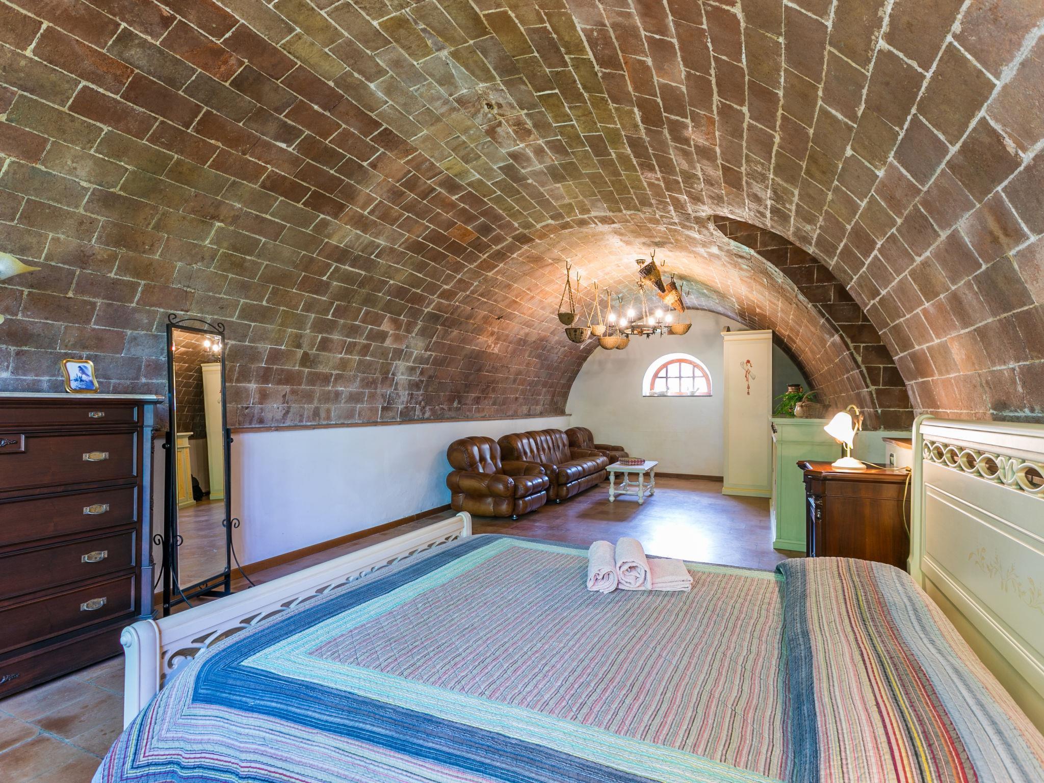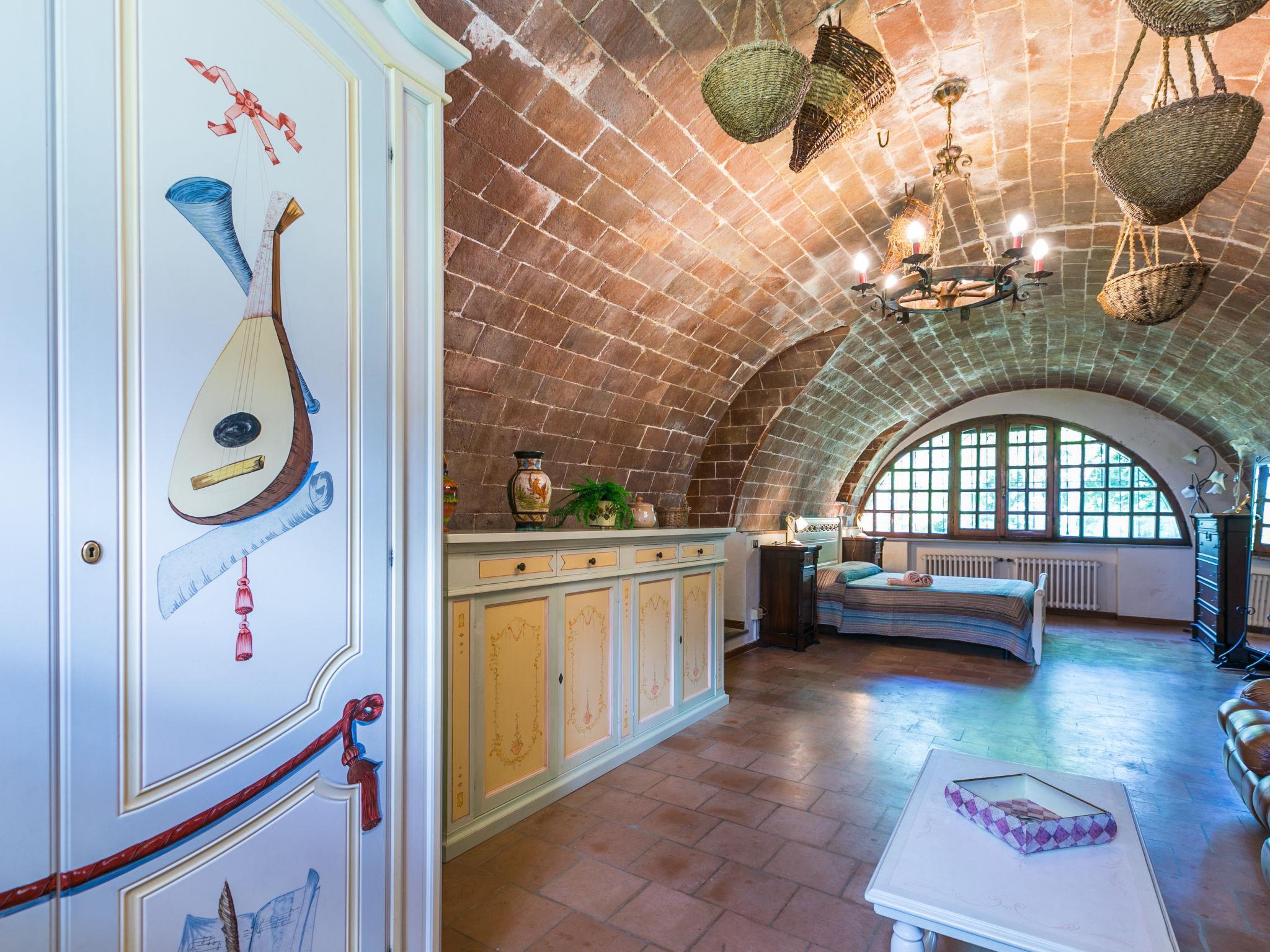 "Poggio al Colle", ein antikes Natursteinhaus in überwältigender Panoramalage befindet sich in der wunderschönen Hügellandschaft zwischen San Gimignano (12 km) und Volterra (20 km) nahe dem Franziskanerkloster S. Vivaldo. Zum Anwesen gehört ein 120 ha großes Landgut mit Weinbergen, Olivenhainen und Getreidefeldern. Der grosse private Garten, umgeben von Bäumen und Wiesen, bietet verschiedene, ausgestattete Aussenbereiche. Typischer, mediterraner Portico zum Essen im Freien und in der oberen Etage eine große Terrasse mit weitem Ausblick. Der ursprüngliche Charakter des Hauses wird durch die geschmackvolle Einrichtung mit rustikalen und antiken Möbelstücken unterstrichen. Das Haus kann von max. 11 Erwachsenen und 2 Kindern bis 12 Jahre belegt werden. Landsitz "Poggio al Colle", renoviert, umgeben von Bäumen und Wiesen. 8 km vom Zentrum von Montaione, alleinstehende, sonnige Lage auf einem Hügel, im Grünen. Zur Alleinbenutzung: grosser Garten mit Rasen und Pflanzen, Schwimmbad (5 x 12 m, 140 cm tief, saisonale Verfügbarkeit: 10.Mai. - 12.Okt.). Aussendusche, Terrasse, Gartenmöbel, Grill. Im Hause: Zentralheizung, Waschmaschine, Heizung vor Ort zu zahlen (01.Nov. - 15.Apr.) (extra). Wohnungsreinigung möglich (extra). Koch möglich (extra). Parkplatz. Einkaufsgeschäft 600 m, Restaurant, Bushaltestelle 500 m, Bahnstation "Castelfiorentino" 15 km. Golfplatz 8 km, Tennis 8 km. Nahe gelegene Sehenswürdigkeiten: Firenze 55 km, Pisa 55 km.