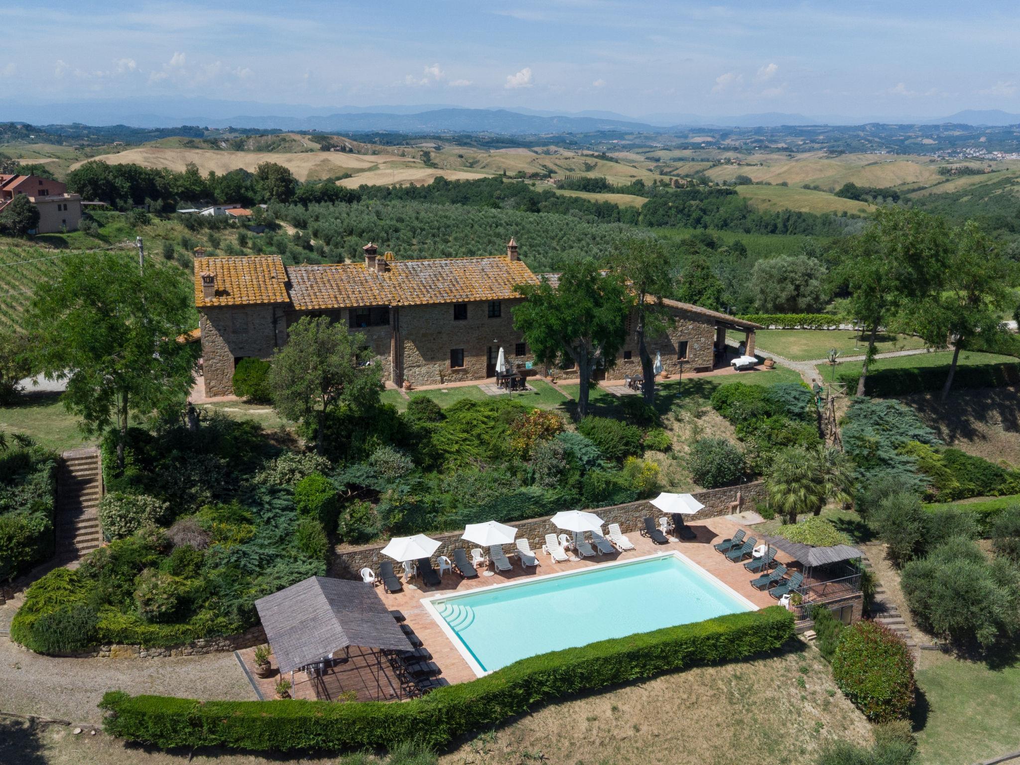 Montaione 19 km von San Gimignano: Das Ferienlandgut Casa Baccelli verfügt über 7 Wohnungen, wobei der Eigentümer in einer dieser Wohnungen lebt. An Hügellage, 2 km vom Ortszentrum von Montaione gelegen, einer Oase der Ruhe. Ideal für entspannende Ferien mitten im Grünen der Toskana. Ebenso ist der Ort ein guter Ausgangspunkt für Ausflüge in die Kunststädte der Region, wie Volterra (20 km), Siena und Lucca (50 km) oder die Strände der Etruskischen Küste (60 km). Bauerngut "Baccelli". 7 Wohnungen im Ferienhaus. 2 km vom Zentrum von Montaione, 15 km vom Zentrum von San Gimignano, 50 km vom Zentrum von Firenze, alleinstehende, ruhige, sonnige Lage auf einem Hügel. Zur Mitbenutzung: Garten (eingezäunt), Schwimmbad (15 x 9 m, 120 - 200 cm tief, saisonale Verfügbarkeit: 27.Apr. - 28.Sep.). Gartenmöbel, Grill. In der Anlage: Wireless LAN, Zentralheizung, Heizung vor Ort zu zahlen, Heizung nur verfügbar von 01.Nov. - 07.Apr.. Zufahrt bis zum Haus (800 m Naturweg). Parkplatz beim Haus. Einkaufsgeschäft 2 km, Lebensmittelgeschäft 2 km, Supermarkt 2 km, Bushaltestelle 2 km, Bahnstation "Castelfiornetino" 12 km. Golfplatz (18 Loch) 17 km, Tennis 5 km. Nahe gelegene Sehenswürdigkeiten: Certaldo 19 km, San Miniato 30 km, San Casciano in Val di Pesa 40 km, Colle Val d'Elsa 40 km.