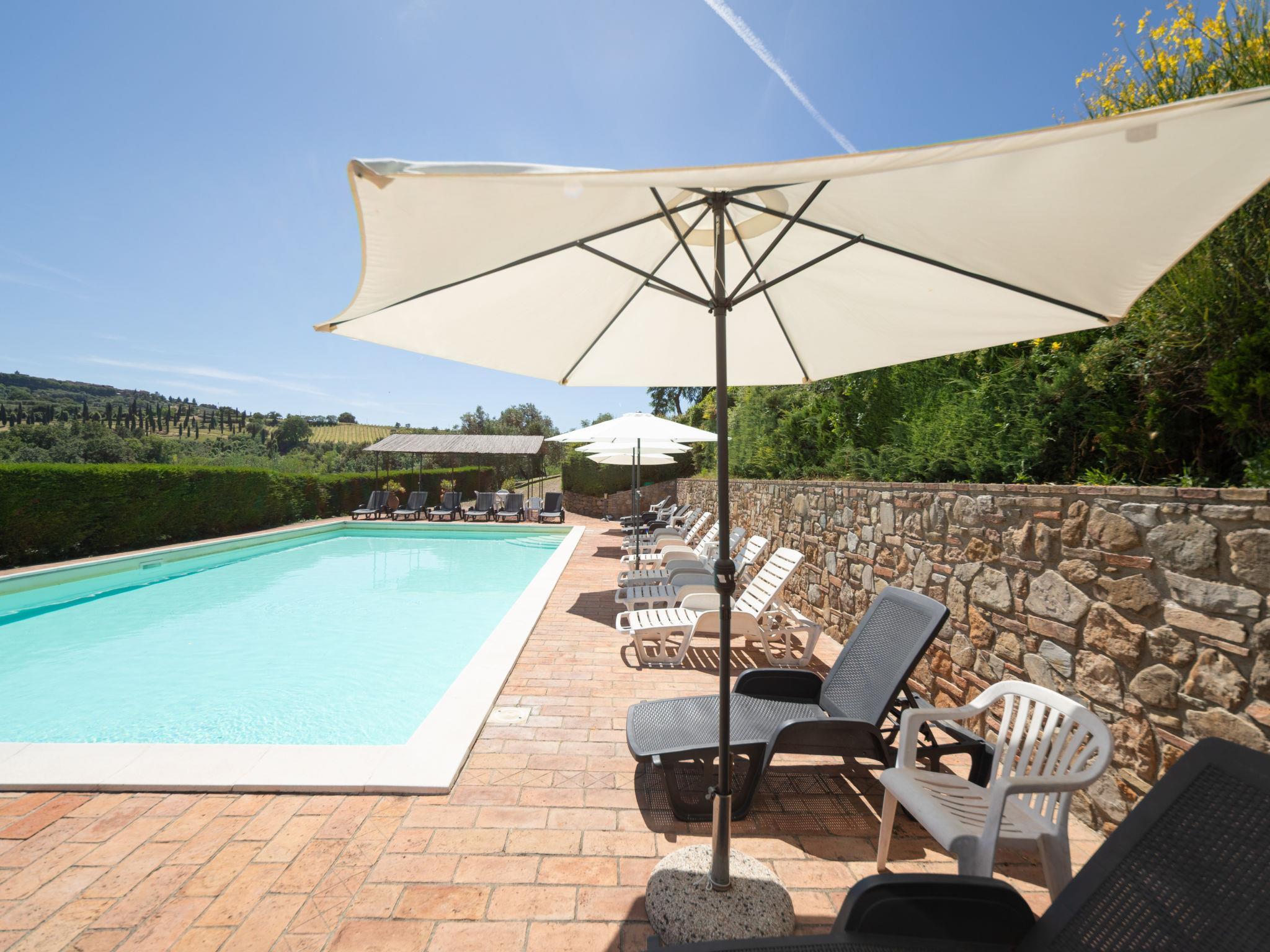 Montaione 19 km von San Gimignano: Das Ferienlandgut Casa Baccelli verfügt über 7 Wohnungen, wobei der Eigentümer in einer dieser Wohnungen lebt. An Hügellage, 2 km vom Ortszentrum von Montaione gelegen, einer Oase der Ruhe. Ideal für entspannende Ferien mitten im Grünen der Toskana. Ebenso ist der Ort ein guter Ausgangspunkt für Ausflüge in die Kunststädte der Region, wie Volterra (20 km), Siena und Lucca (50 km) oder die Strände der Etruskischen Küste (60 km). Bauerngut "Baccelli". 7 Wohnungen im Ferienhaus. 2 km vom Zentrum von Montaione, 15 km vom Zentrum von San Gimignano, 50 km vom Zentrum von Firenze, alleinstehende, ruhige, sonnige Lage auf einem Hügel. Zur Mitbenutzung: Garten (eingezäunt), Schwimmbad (15 x 9 m, 120 - 200 cm tief, saisonale Verfügbarkeit: 27.Apr. - 28.Sep.). Gartenmöbel, Grill. In der Anlage: Wireless LAN, Zentralheizung, Heizung vor Ort zu zahlen, Heizung nur verfügbar von 01.Nov. - 07.Apr.. Zufahrt bis zum Haus (800 m Naturweg). Parkplatz beim Haus. Einkaufsgeschäft 2 km, Lebensmittelgeschäft 2 km, Supermarkt 2 km, Bushaltestelle 2 km, Bahnstation "Castelfiornetino" 12 km. Golfplatz (18 Loch) 17 km, Tennis 5 km. Nahe gelegene Sehenswürdigkeiten: Certaldo 19 km, San Miniato 30 km, San Casciano in Val di Pesa 40 km, Colle Val d'Elsa 40 km.