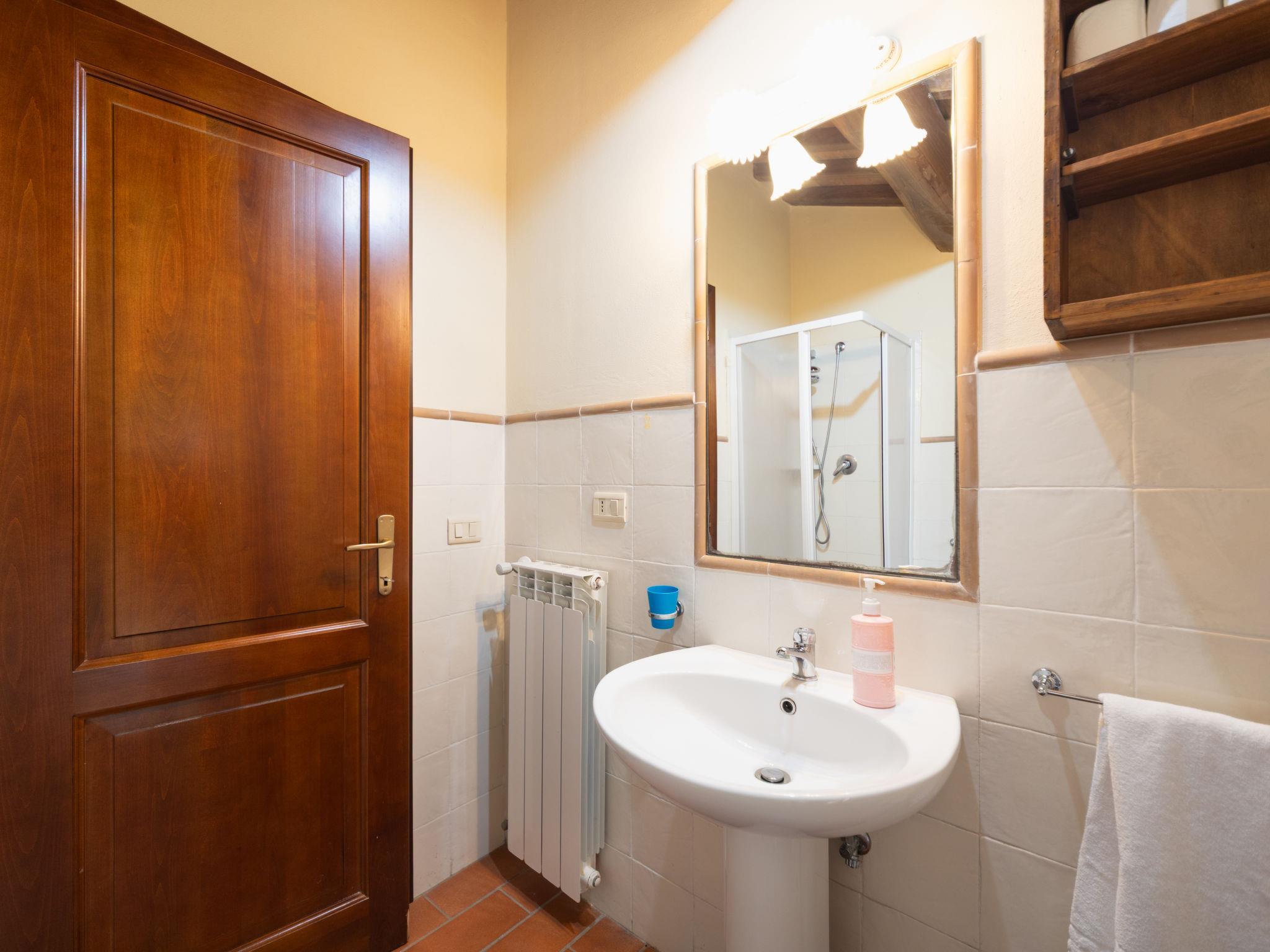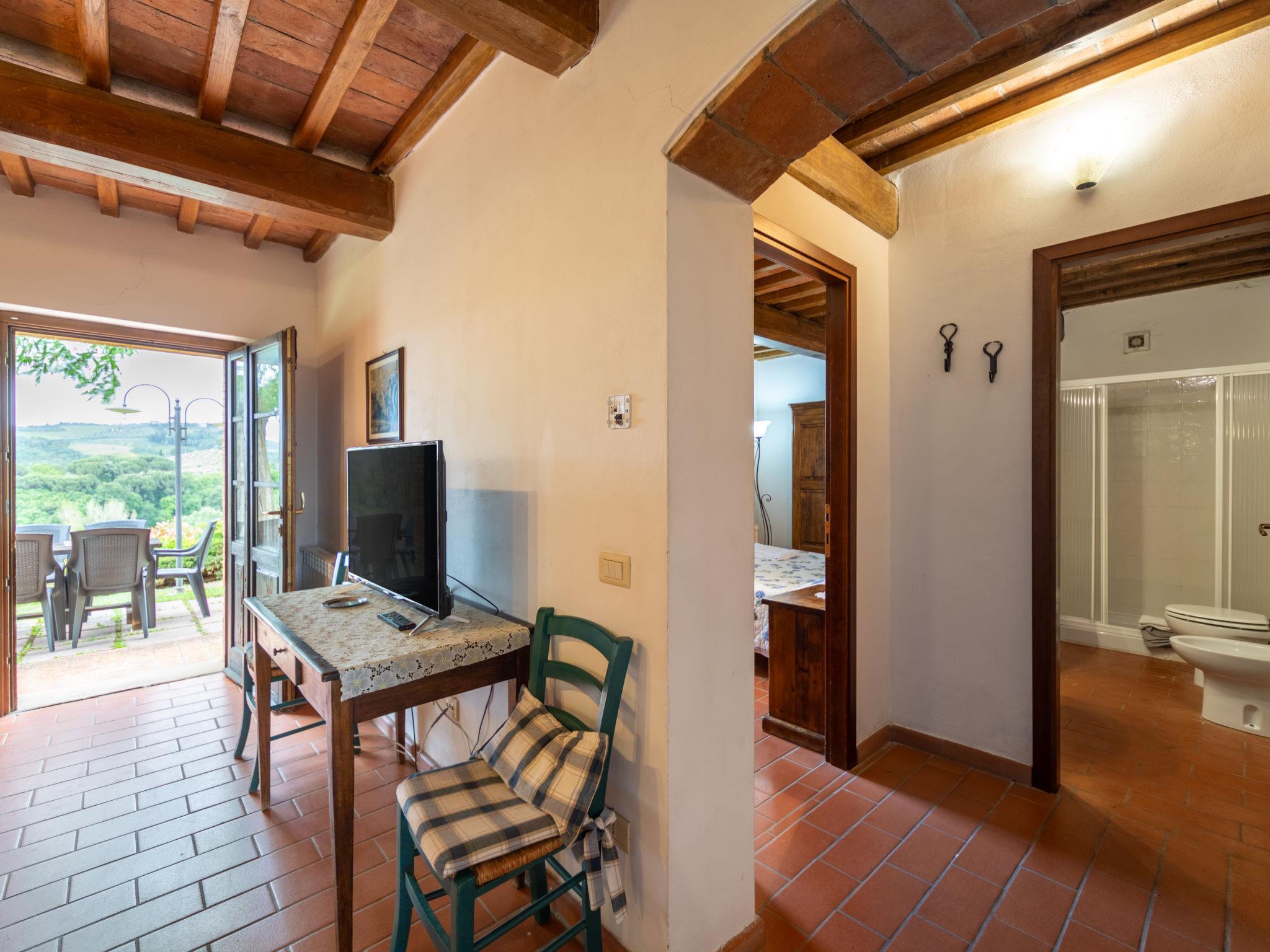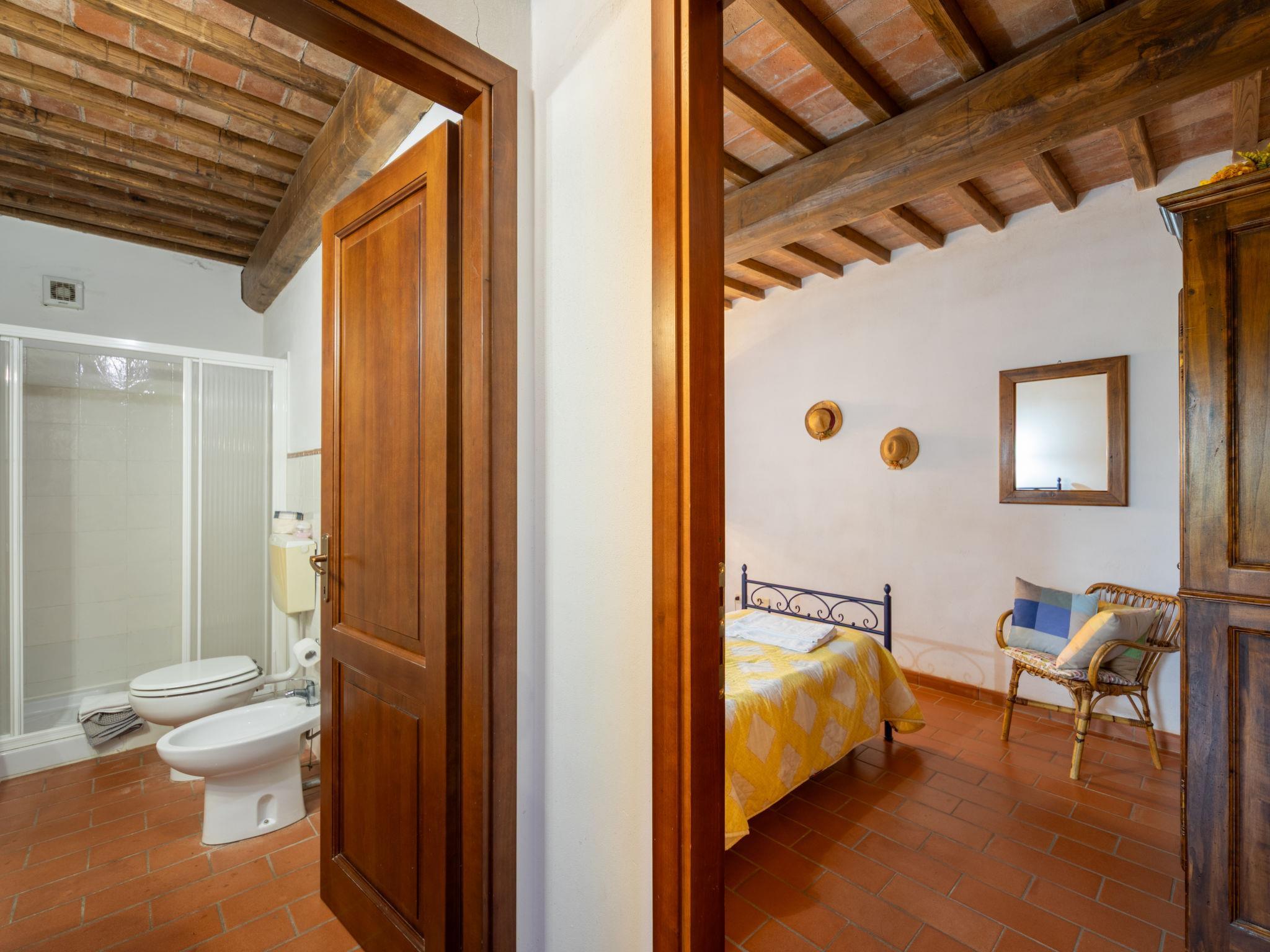 Casa Baccelli, ein altes Bauernhaus, das in sieben Wohnungen unterteilt ist, von denen eine von den Eigentümern bewohnt wird, wird von uns als unabhängiges Haus vorgeschlagen. Die sieben vermarkteten Wohnungen sind nur von außen miteinander verbunden und verfügen jeweils über eine eigene Küchenzeile. Bauerngut "Baccelli". 7 Wohnungen im Ferienhaus. 2 km vom Zentrum von Montaione, 15 km vom Zentrum von San Gimignano, 50 km vom Zentrum von Firenze, alleinstehende, ruhige, sonnige Lage auf einem Hügel, im Grünen. Zur Mitbenutzung: Garten (eingezäunt). Zur Alleinbenutzung: Schwimmbad (15 x 9 m, 120 - 200 cm tief, saisonale Verfügbarkeit: 27.Apr. - 28.Sep.). Aussendusche, Gartenmöbel, Grill. In der Anlage: Wireless LAN, Heizung vor Ort zu zahlen, Heizung nur verfügbar von 01.Nov. - 07.Apr.. Zufahrt bis zum Haus (800 m Naturweg). Parkplatz beim Haus. Einkaufsgeschäft 2 km, Lebensmittelgeschäft 2 km, Supermarkt 2 km, Bushaltestelle 2 km, Bahnstation "Castelfiornetino" 12 km. Golfplatz (18 Loch) 17 km, Tennis 5 km. Nahe gelegene Sehenswürdigkeiten: Certaldo 19 km, San Miniato 30 km, San Casciano in Val di Pesa 40 km, Colle Val d'Elsa 40 km. Bitte beachten: Der Besitzer wohnt auf dem gleichen Grundstück.
