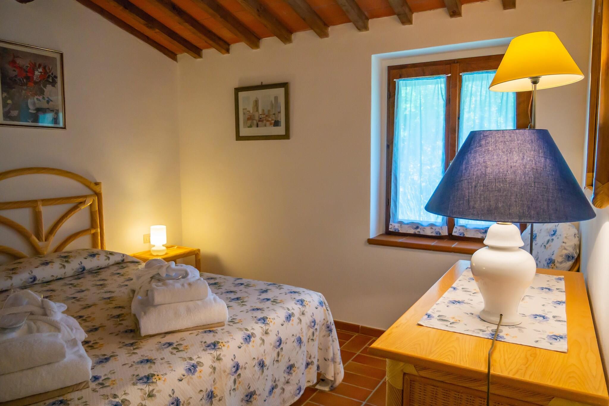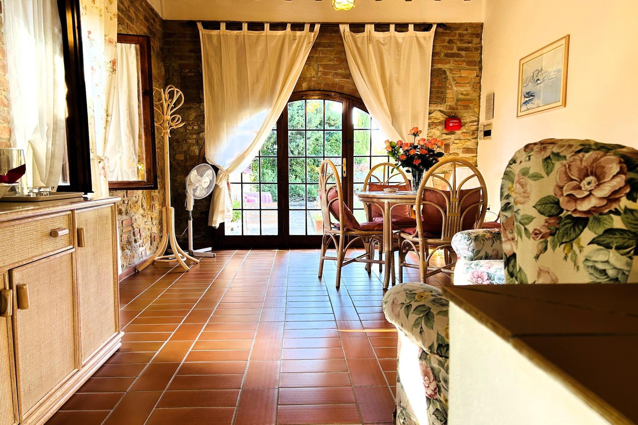 Dieses einladende Erdgeschossapartment in der Via Varna 69 in der Nähe von Gambassi Terme verfügt über einen gemütlichen Wohnbereich mit Kamin und Schlafsofa, eine gut ausgestattete 17 m² große Küche mit Backofen, Herd, Espressomaschine, Wasserkocher, Mikrowelle, Toaster, Geschirrspüler und Kühl-Gefrierkombination sowie einem Esstisch. Es umfasst ein Schlafzimmer mit Doppelbett, ein Zweibettzimmer, ein Badezimmer mit Dusche und Bidet sowie eine 15 m² große private Terrasse mit Zugang zum Gemeinschaftsgarten – ideal für Paare oder kleine Familien, die Ruhe in der Toskana suchen. Der gemeinschaftlich genutzte, eingezäunte Garten bietet eine entspannende Atmosphäre mit Loungemöbeln und einem Holzkohlegrill. Den Gästen steht ein 12 x 6 m großer Pool mit flachem Kinderbereich (geöffnet von April bis September), eine Außendusche, ein Holzofen und eine Gemeinschaftswaschmaschine zur Verfügung. Kinder und Gruppen werden die Spielgeräte, die Tischtennisplatte, die Kickertische und das Tor lieben. Eingebettet in die Hügel der Toskana liegt das Haus 1 km von Reitwegen und 6 km von den Angelseen in Alberi entfernt. Das historische Spa von Gambassi Terme ist 7 km entfernt. In Castelfiorentino (3 km) servieren Trattorien wie Chiosco Ai Renai und Casa Masi lokale Gerichte. Erkunden Sie die Kirche aus dem 13. Jahrhundert in Varna und den Sacro Monte von San Vivaldo oder unternehmen Sie Tagesausflüge nach San Gimignano (18 km), Siena, Florenz, Pisa und Volterra. Mit kostenlosem WLAN und haustierfreundlichem Charme bietet dieses Refugium Kultur und Komfort. Das Trüffelfestival findet jedes Jahr am letzten Oktoberwochenende statt.