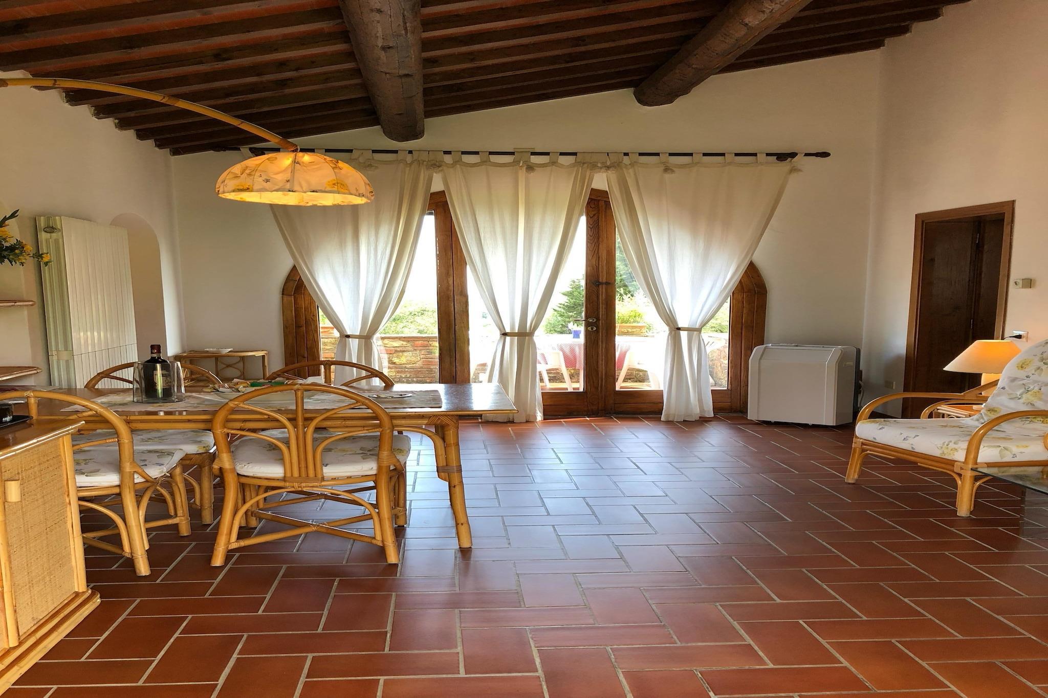 Versteckt in den Hügeln der Via Cerroni 7 bietet dieses Apartment im Erdgeschoss in Montaione einen ruhigen Aufenthalt, nur 8 km von der mittelalterlichen Stadt und 10 km vom Golfclub Castelfalfi entfernt. Im Inneren ergänzt eine 19 m² große Küche mit Backofen, Kühlschrank und Spüle ein gemütliches 16 m² großes Wohnzimmer mit Zugang zu einer großzügigen 33 m² großen Terrasse. Die beiden Schlafzimmer – eines mit Doppelbett und eines mit drei Einzelbetten – teilen sich zwei moderne Badezimmer mit Dusche und Bidet. Die Klimaanlage sorgt ganzjährig für ein angenehmes Raumklima. Der eingezäunte Garten mit Sitzgelegenheiten lädt zum Essen im Freien oder Entspannen ein. Den Gästen stehen ein 12 x 6 m großer Pool (geöffnet von April bis Oktober), Spielplätze, Tischtennis, ein Fußballtor, eine gemeinschaftliche Waschküche und ein Holzofen zur Verfügung. Ein Carport und eine Ladestation für Elektrofahrzeuge sorgen für Komfort und Umweltfreundlichkeit. Zu den Freizeitmöglichkeiten in der Umgebung gehören Reitwege (1 km), Angelseen (6 km) und kulturelle Sehenswürdigkeiten wie die Kirche San Regolo in Montaione oder das „Jerusalem der Toskana“, der Sacro Monte di San Vivaldo. Kulinarische Highlights erwarten Sie in CasaMasi, IlCaminetto und vielen weiteren Restaurants. Haustierfreundlich und gut angebunden – die Toskana von ihrer besten Seite. Das Trüffelfestival findet jedes Jahr am letzten Oktoberwochenende statt.