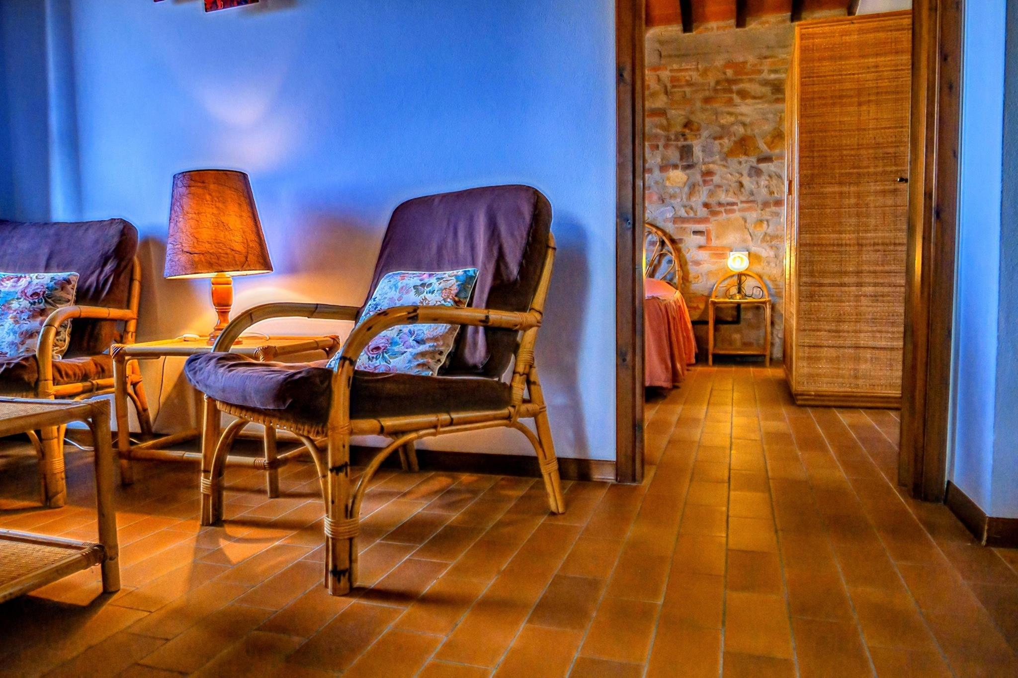 Charmantes Refugium auf dem Land Eingebettet in die ruhigen Hügel der Toskana beherbergte dieses romantische Steinapartment einst alte Wagen und bietet heute einen ruhigen Rückzugsort mit rustikalem Charme. Mit seinen warmen Tuff- und Ziegelwänden, der privaten Terrasse mit Blick auf das Evolatal und den üppigen Gärten voller Oliven- und Obstbäume lädt dieses Haus zum Entspannen und Besinnlichsein ein. Entspannen Sie im großen Außenbereich mit einem Gemeinschaftspool mit Hydromassage, einem Kinderspielplatz, Riesenschach, Tischtennis und einem Kleinfeld-Fußballplatz – ideal für Familien, Paare und Tierliebhaber. Entdecken Sie die ikonischen Schätze der Toskana Die Lage ist ideal für die Erkundung der Toskana: Sie wohnen in der Nähe des mittelalterlichen Dorfes Montaione und sind bequem mit Florenz, Siena, Pisa, San Gimignano und Volterra zu erreichen. Entdecken Sie sanfte Weinberge, Zypressenstraßen und Kunstschätze an jeder Ecke. Zu den Aktivitäten in der Nähe gehören Reiten, Angeln in Alberi und der renommierte 27-Loch-Golfclub Castelfalfi, nur 10 km entfernt. Nur 1 km vom Anwesen entfernt laden Thermalbäder und malerische Wanderwege zum Entspannen ein. Genießen Sie lokale Aromen und Erlebnisse Genießen Sie die beste toskanische Küche in nur 1 km Entfernung in lokalen Trattorien oder genießen Sie ein gemütliches Essen auf Ihrer Terrasse mit Zutaten von nahegelegenen Märkten. Besuchen Sie den hauseigenen Weinkeller und probieren und kaufen Sie den hauseigenen Wein und das Olivenöl. Ob Sie zum Probieren, Entdecken oder einfach zum Entspannen hier sind – dieses Stück Toskana bietet ein authentisches und unvergessliches Erlebnis. Das Trüffelfestival findet jedes Jahr am letzten Oktoberwochenende statt.