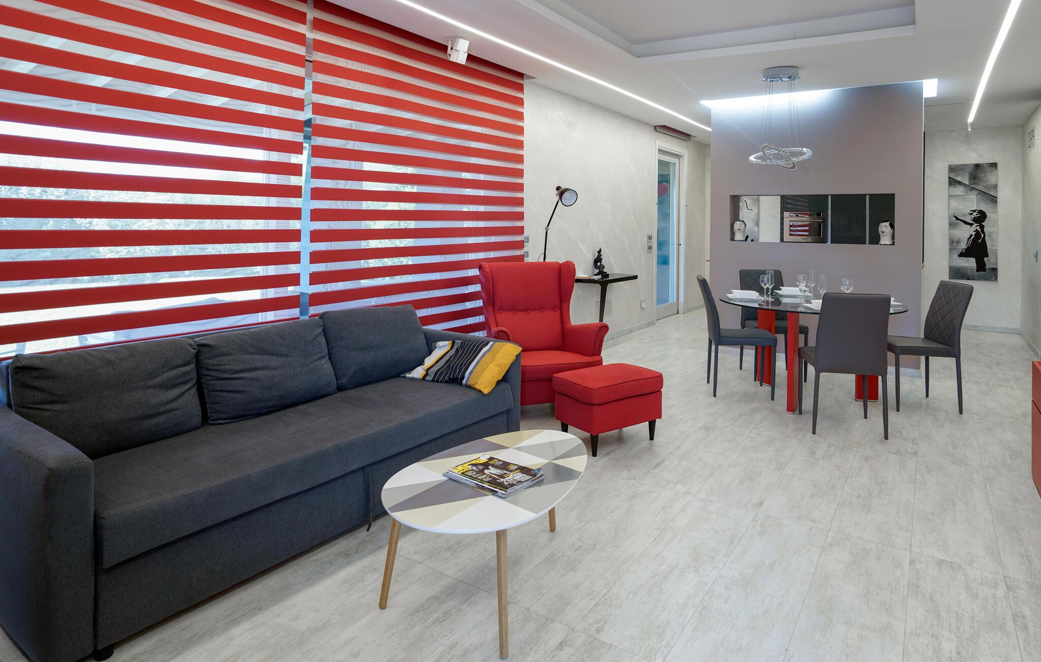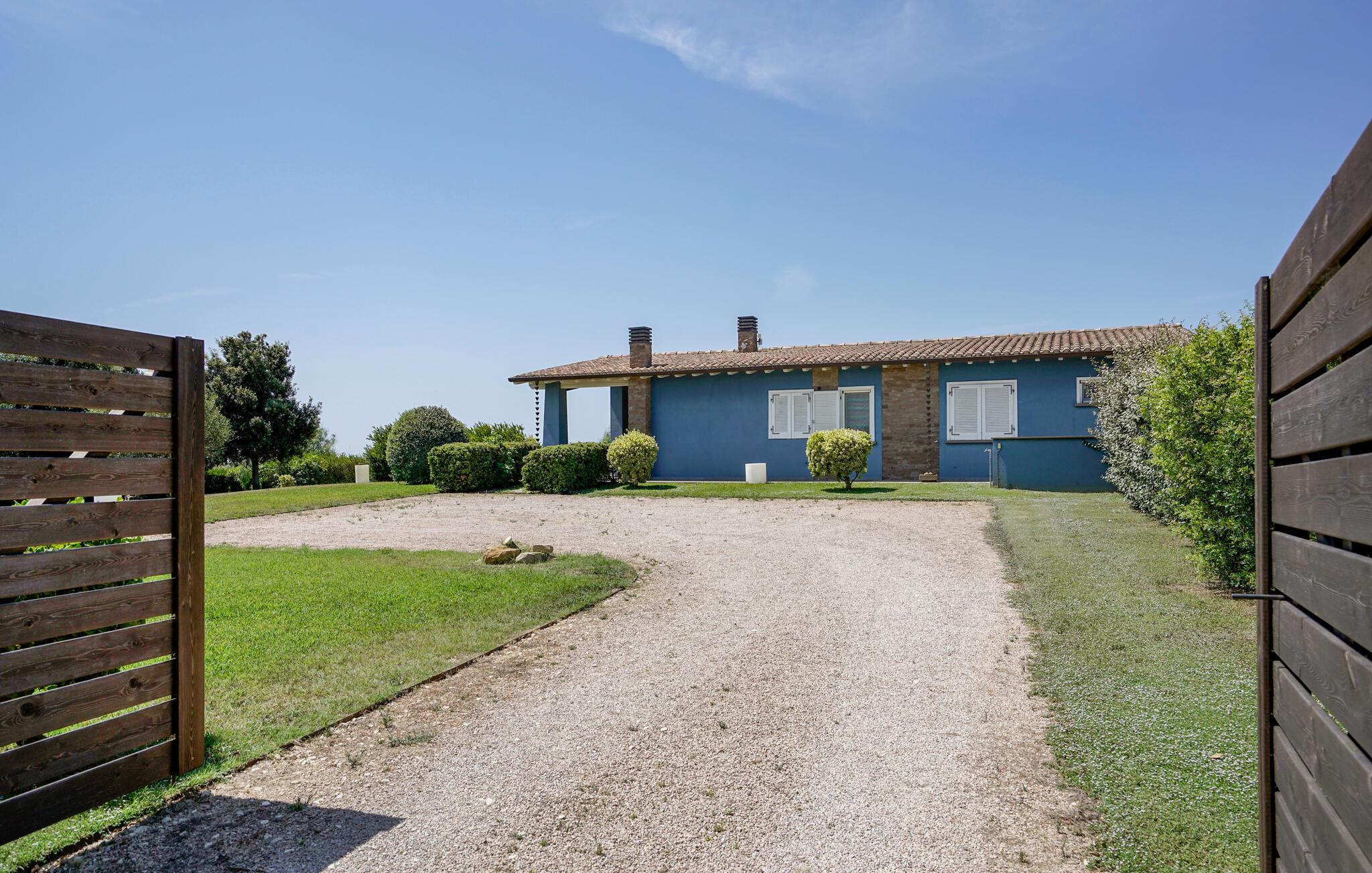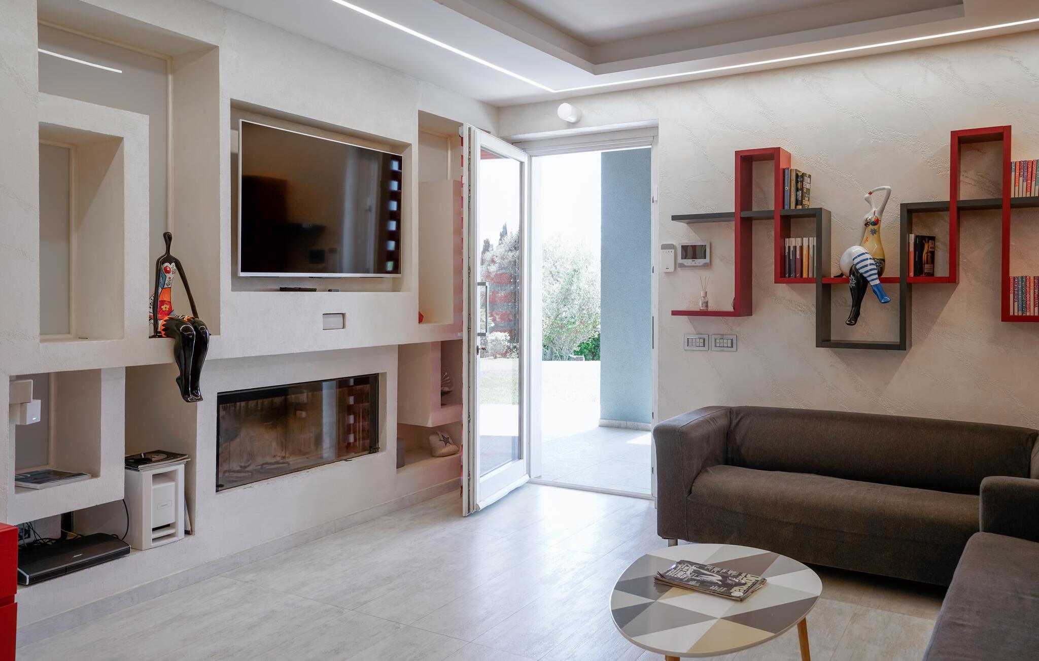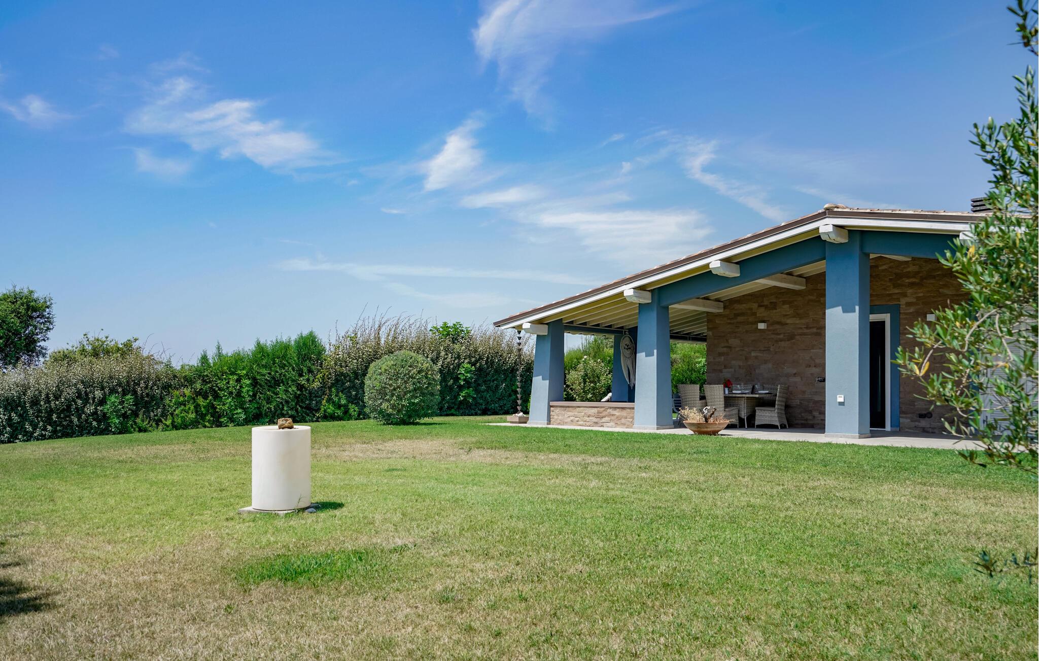 Dieses moderne und einladende Ferienhaus in Montalto di Castro vereint stilvolle Einrichtung mit einem durchdachten Design. Warme Farbakzente und geschmackvolle Dekoration schaffen eine Atmosphäre zum Wohlfühlen. Die geräumige Küche lädt Sie zum gemeinsamen Kochen ein, während das luxuriöse Badezimmer mit großzügigem Bade- und Duschbereich Ihnen pure Entspannung bietet.