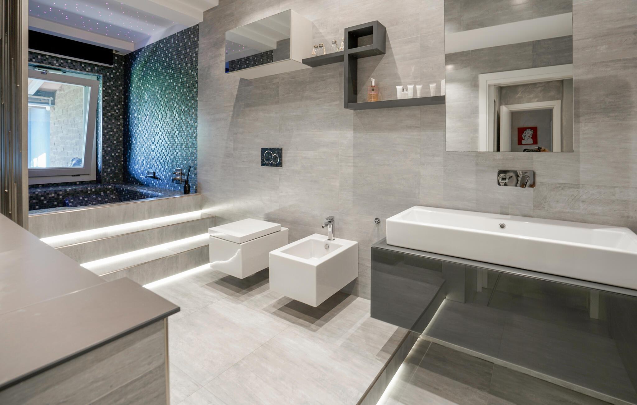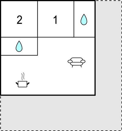 Badezimmer (nr. 1) - WC. Warmes und kaltes Wasser. Dusche und Badewanne