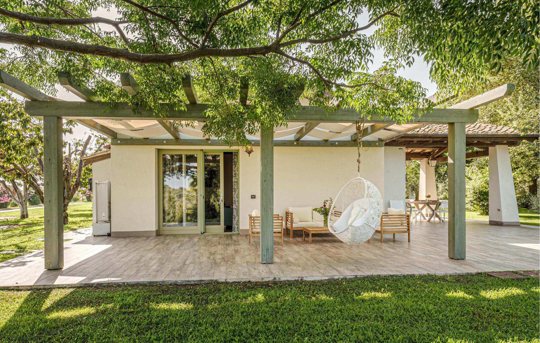 Genießen Sie an sonnigen Tagen Ihr Frühstück auf der überdachten Terrasse mit Blick ins Grüne. Suchen Sie sich ein schattiges Plätzchen zum Lesen im weitläufigen Garten oder schwimmen Sie ein paar Runden im gemeinschaftlich genutzten Pool. Lassen Sie den Tag bei einem stimmungsvollen Grillabend oder einem Glas Wein ausklingen.