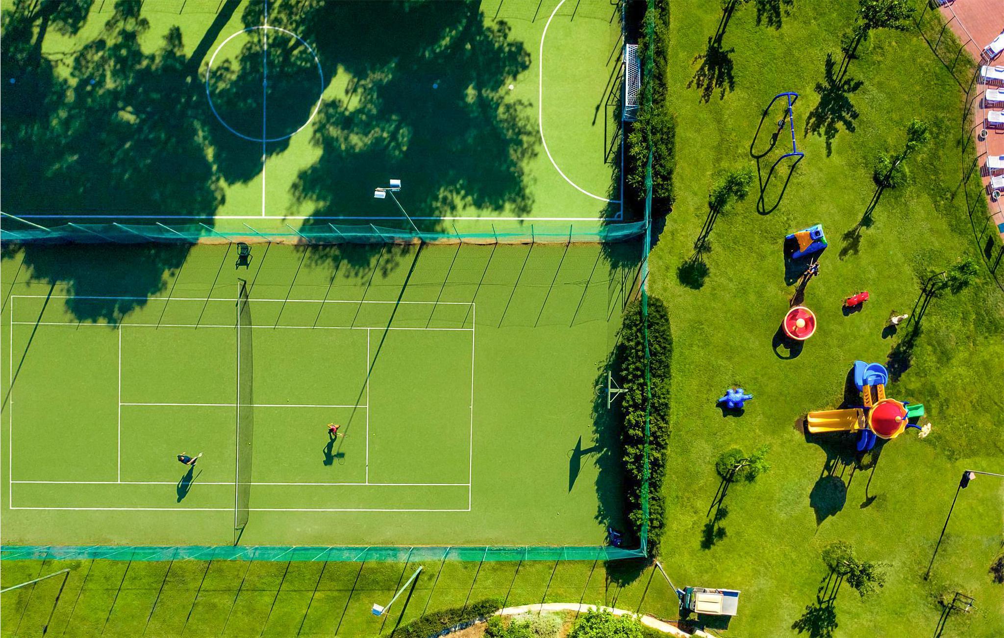 Starten Sie auf Ihrer kleinen, privaten Terrasse mit einem frisch gebrühten Kaffee in den Tag. Spazieren Sie hinüber zum sensationellen Pool und tanken Sie Sonne auf einer der Liegen während Ihre Kinder auf dem anliegenden Spielplatz neue Freundschaften knüpfen können. Spielen Sie Tennis und gönnen Sie sich anschließend ein Erfrischungsgetränk an der Poolbar.