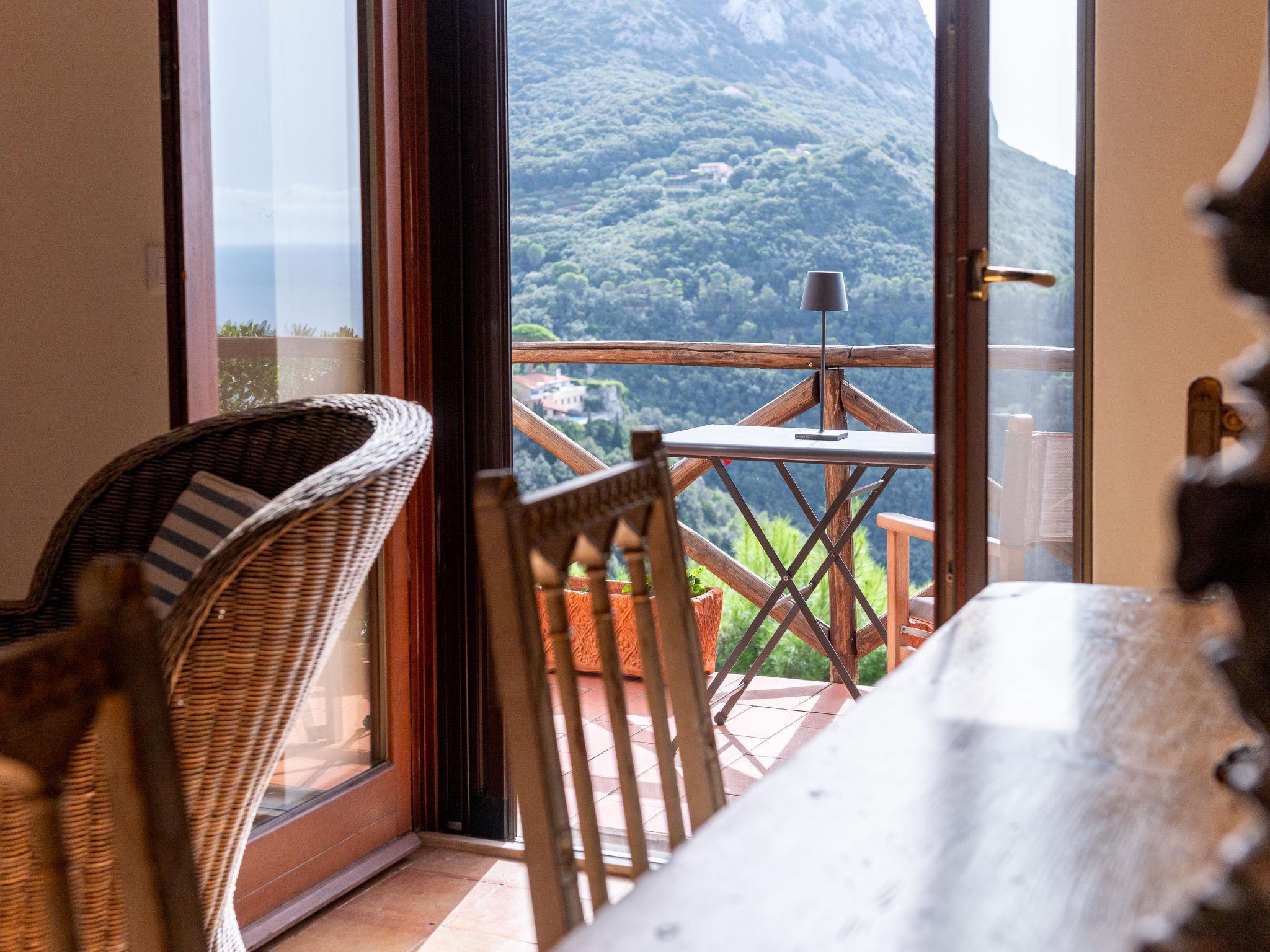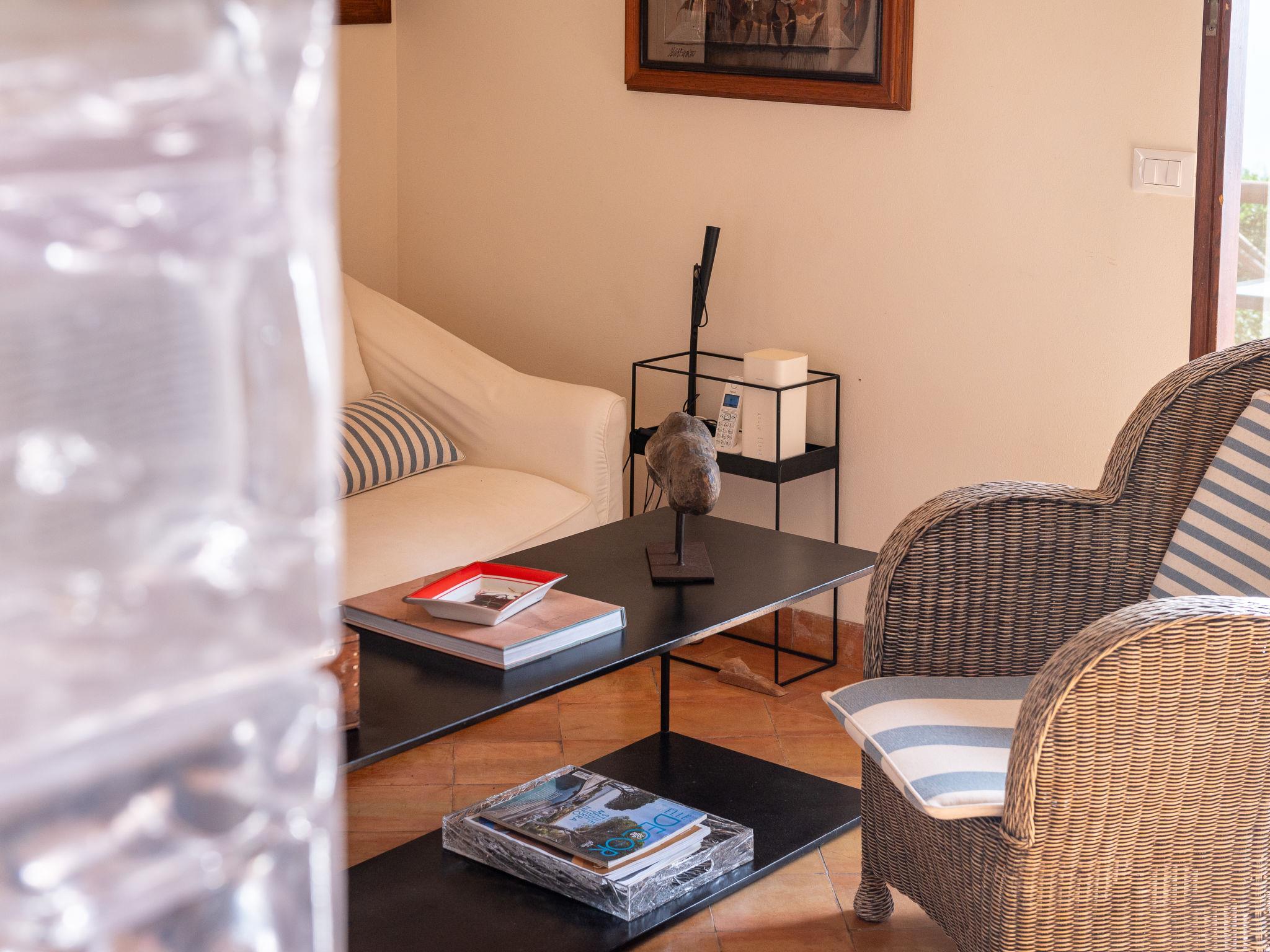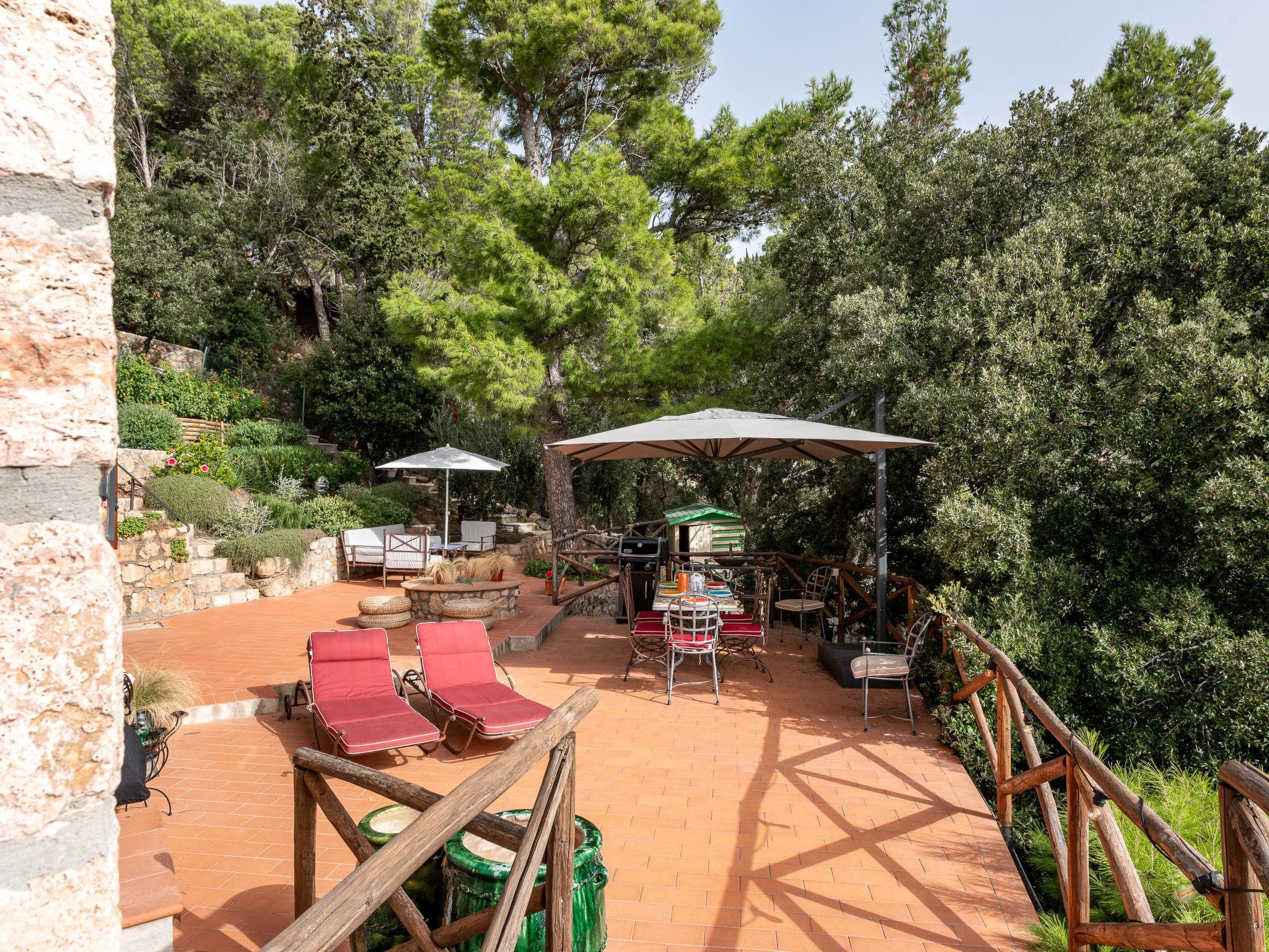 5-Zimmer-Doppelhaushälfte 150 m2 auf 3 Stockwerken. Vollständig renoviert im Jahre 2021, komfortabel und stilvoll eingerichtet: Wohnzimmer mit Panoramafenster mit Esstisch und TV. Ausgang zur Terrasse. Wohnzimmer. Ausgang zur Terrasse. Offene Küche (Backofen, Geschirrspüler, 4 Flammen, Toaster, Wasserkocher, Mikrowelle, elektrische Kaffeemaschine). Ausgang zur Terrasse. Unteres Geschoss: 1 Doppelzimmer mit Dusche/WC. Ausgang zur Terrasse. (Aussentreppe) 1 Doppelzimmer mit Dusche/Bidet/WC. Ausgang zum Garten. Obergeschoss: 1 grosses Doppelzimmer. Ausgang zur Terrasse. Dusche/Bidet/WC. Klimaanlage, Warmluftheizung. Grosse Terrasse. Terrassenmöbel, Gartengrill, Liegestühle. Herrliche Sicht auf das Meer. Zur Verfügung: Waschmaschine, Fliegengitter, Haartrockner. Internet (WLAN, gratis). Bitte beachten: Nichtraucher-Unterkunft. Eigener Eingang, Rauchmelder, kein Fahrstuhl. Keine interne Verbindung zwischen den separaten Wohneinheiten. Die Möbel wurden von der Hausherrin persönlich ausgewählt, die Gemälde und Skulpturen stammen aus einer Privatsammlung der familieneigenen Kunstgalerie, die Beleuchtung wurde sorgfältig mit Designerlampen (Flos Artemide Fontana Arte) im Kontrast zu Brokatmöbeln und Naturstoffen gestalte. Ab 2026 WI-FI mit Starlink. IT053016C27OTRDAAM