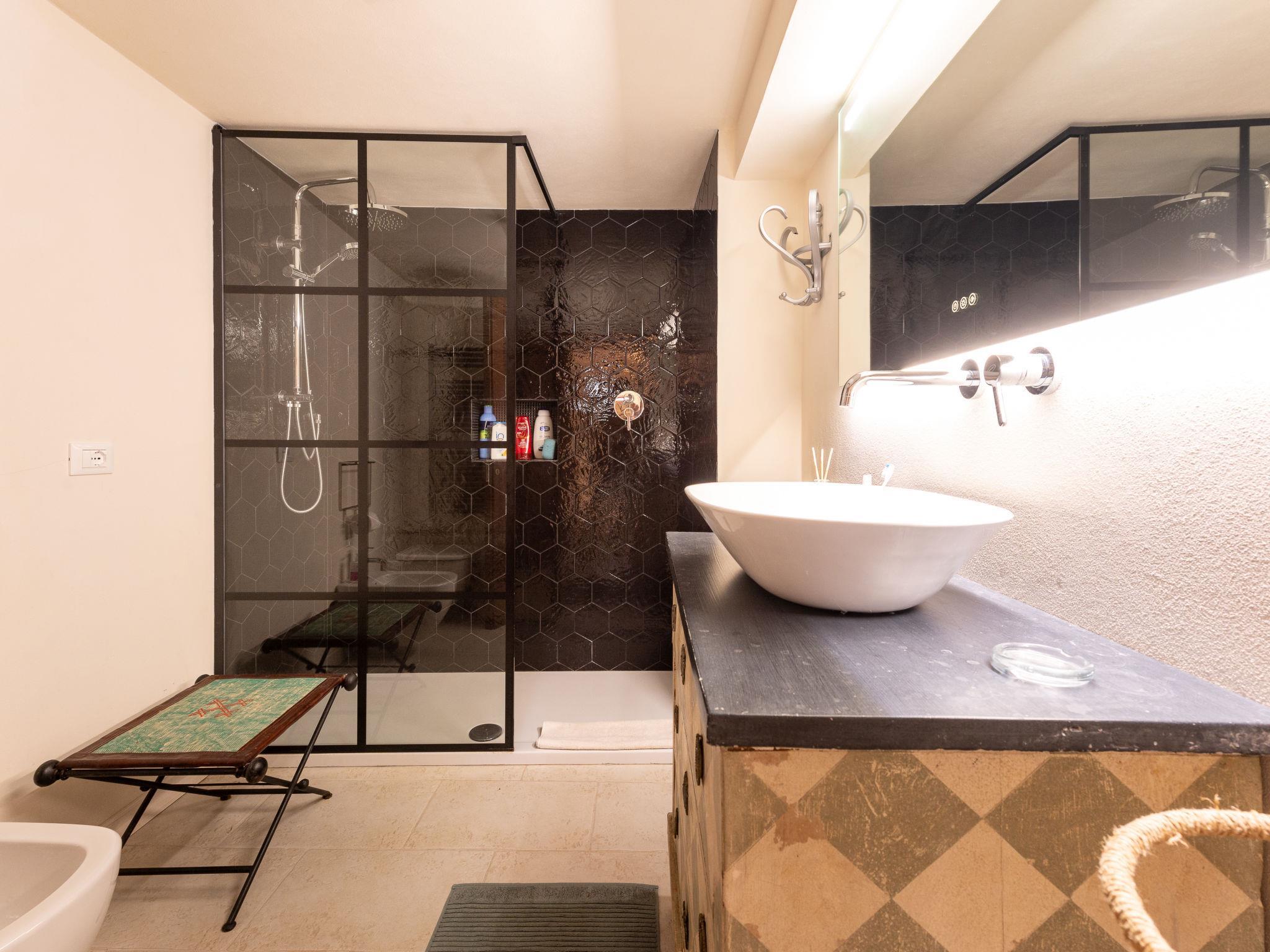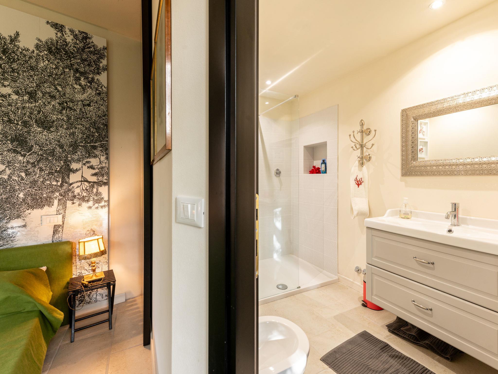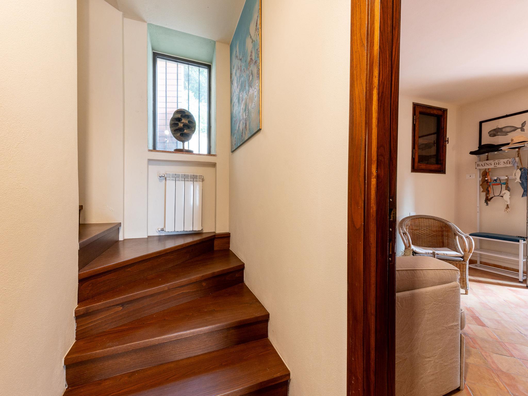 5-Zimmer-Doppelhaushälfte 150 m2 auf 3 Stockwerken. Vollständig renoviert im Jahre 2021, komfortabel und stilvoll eingerichtet: Wohnzimmer mit Panoramafenster mit Esstisch und TV. Ausgang zur Terrasse. Wohnzimmer. Ausgang zur Terrasse. Offene Küche (Backofen, Geschirrspüler, 4 Flammen, Toaster, Wasserkocher, Mikrowelle, elektrische Kaffeemaschine). Ausgang zur Terrasse. Unteres Geschoss: 1 Doppelzimmer mit Dusche/WC. Ausgang zur Terrasse. (Aussentreppe) 1 Doppelzimmer mit Dusche/Bidet/WC. Ausgang zum Garten. Obergeschoss: 1 grosses Doppelzimmer. Ausgang zur Terrasse. Dusche/Bidet/WC. Klimaanlage, Warmluftheizung. Grosse Terrasse. Terrassenmöbel, Gartengrill, Liegestühle. Herrliche Sicht auf das Meer. Zur Verfügung: Waschmaschine, Fliegengitter, Haartrockner. Internet (WLAN, gratis). Bitte beachten: Nichtraucher-Unterkunft. Eigener Eingang, Rauchmelder, kein Fahrstuhl. Keine interne Verbindung zwischen den separaten Wohneinheiten. Die Möbel wurden von der Hausherrin persönlich ausgewählt, die Gemälde und Skulpturen stammen aus einer Privatsammlung der familieneigenen Kunstgalerie, die Beleuchtung wurde sorgfältig mit Designerlampen (Flos Artemide Fontana Arte) im Kontrast zu Brokatmöbeln und Naturstoffen gestalte. Ab 2026 WI-FI mit Starlink. IT053016C27OTRDAAM