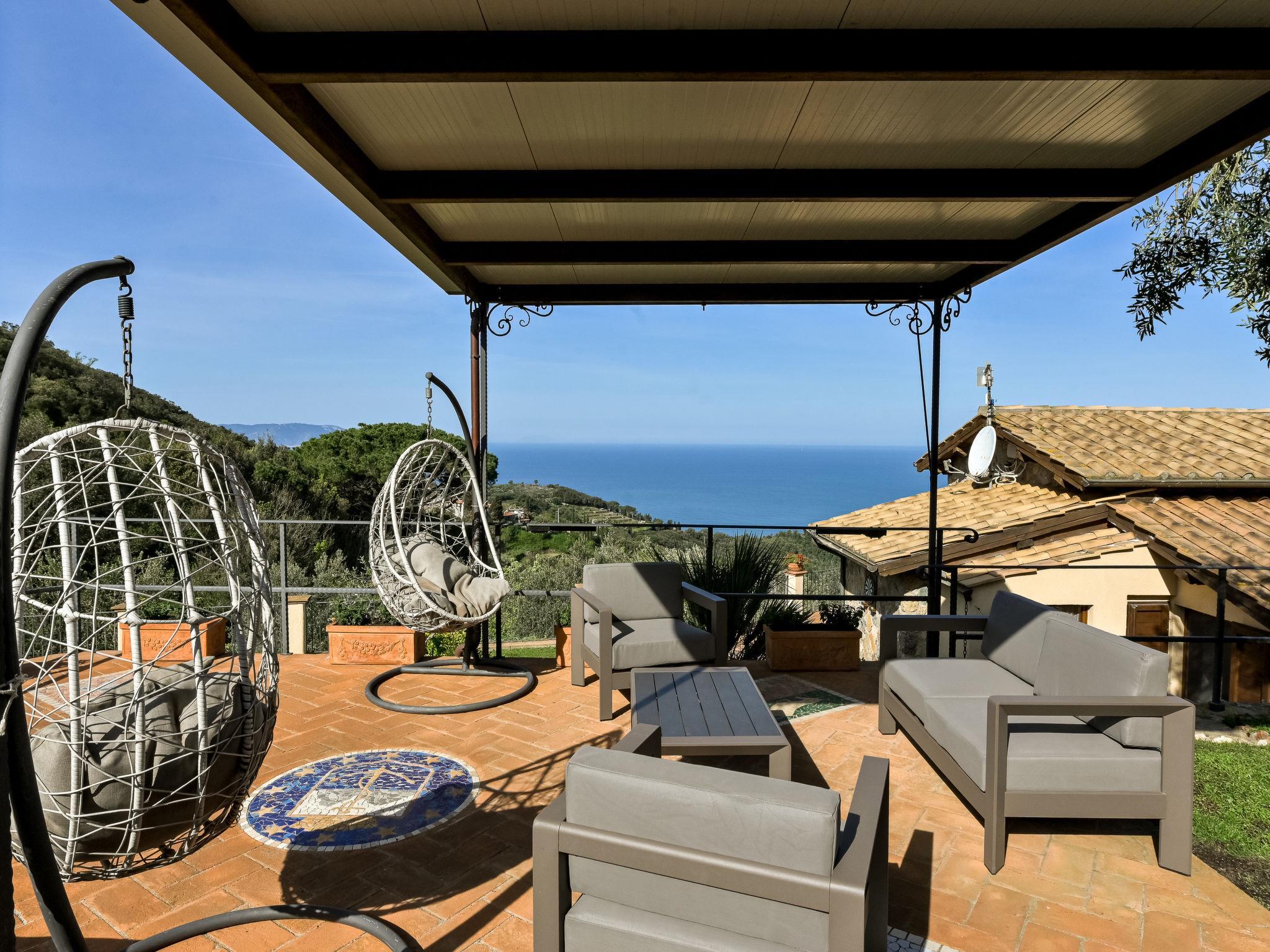 5-Zimmer-Haus 100 m2 auf 2 Stockwerken. Komfortabel und gemütlich eingerichtet: Wohn-/Esszimmer mit offenem Kamin (nur Deko), Esstisch, TV und Stereoanlage. Ausgang zur Terrasse. 1 Zimmer mit 1 Doppelbett (160 cm). 1 Zimmer mit 1 Doppelbett (160 cm), Dusche/WC. 1 Zimmer mit 1 Bett (80 cm), 1 Doppelbett (160 cm), Dusche/Bidet/WC. Ausgang zum Garten. Offene Küche (Backofen, Geschirrspüler, 4 Flammen, Toaster, Wasserkocher, Mikrowelle, Tiefkühler, elektrische Kaffeemaschine). Ausgang zur Terrasse. Bad/Bidet/WC. Obergeschoss: 1 abgeschrägtes, offenes Zimmer mit 1 Bett (80 cm), 1 Diwanbett (80 cm). Ölheizung. Natursteinboden. Terrasse 50 m2, überdacht. Liegestühle. Herrliche Sicht auf das Meer. Zur Verfügung: Waschmaschine, Fliegengitter, Babybett bis 2 Jahre. Internet (Wireless LAN, gratis). Bitte beachten: ein Doppelzimmer liegt außerhalb der Wohnung. Nichtraucher-Unterkunft. Keine interne Verbindung zwischen den separaten Wohneinheiten. Bettwäsche, Handtücher, Endreinigung und alle Energiekosten sind inkludiert. IT053016B4G7NID8ED