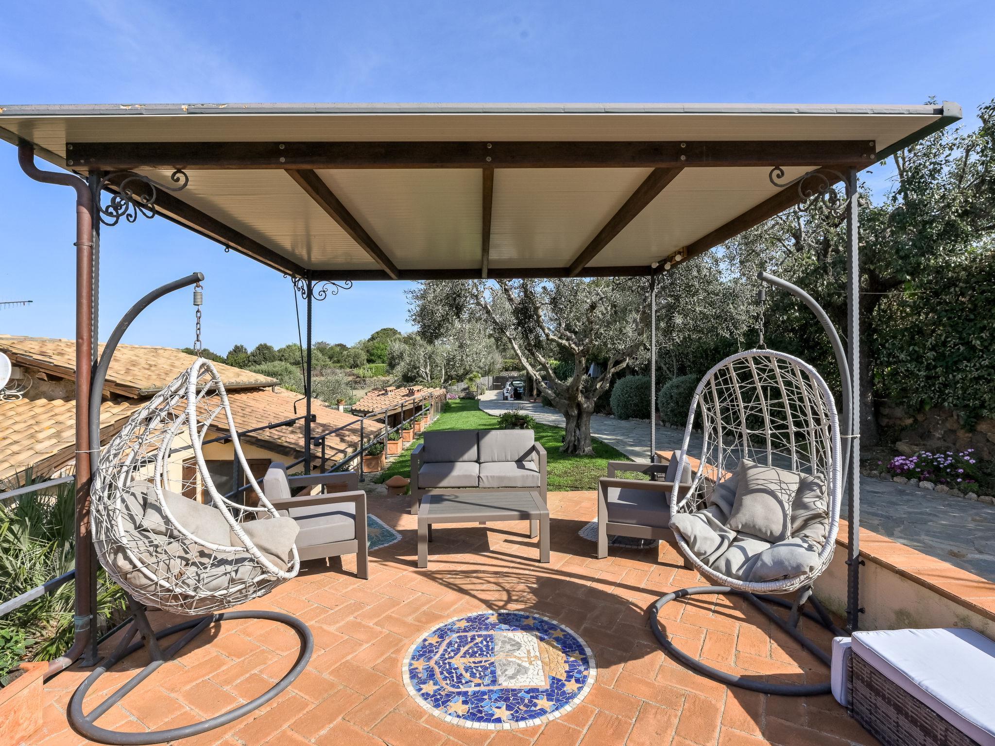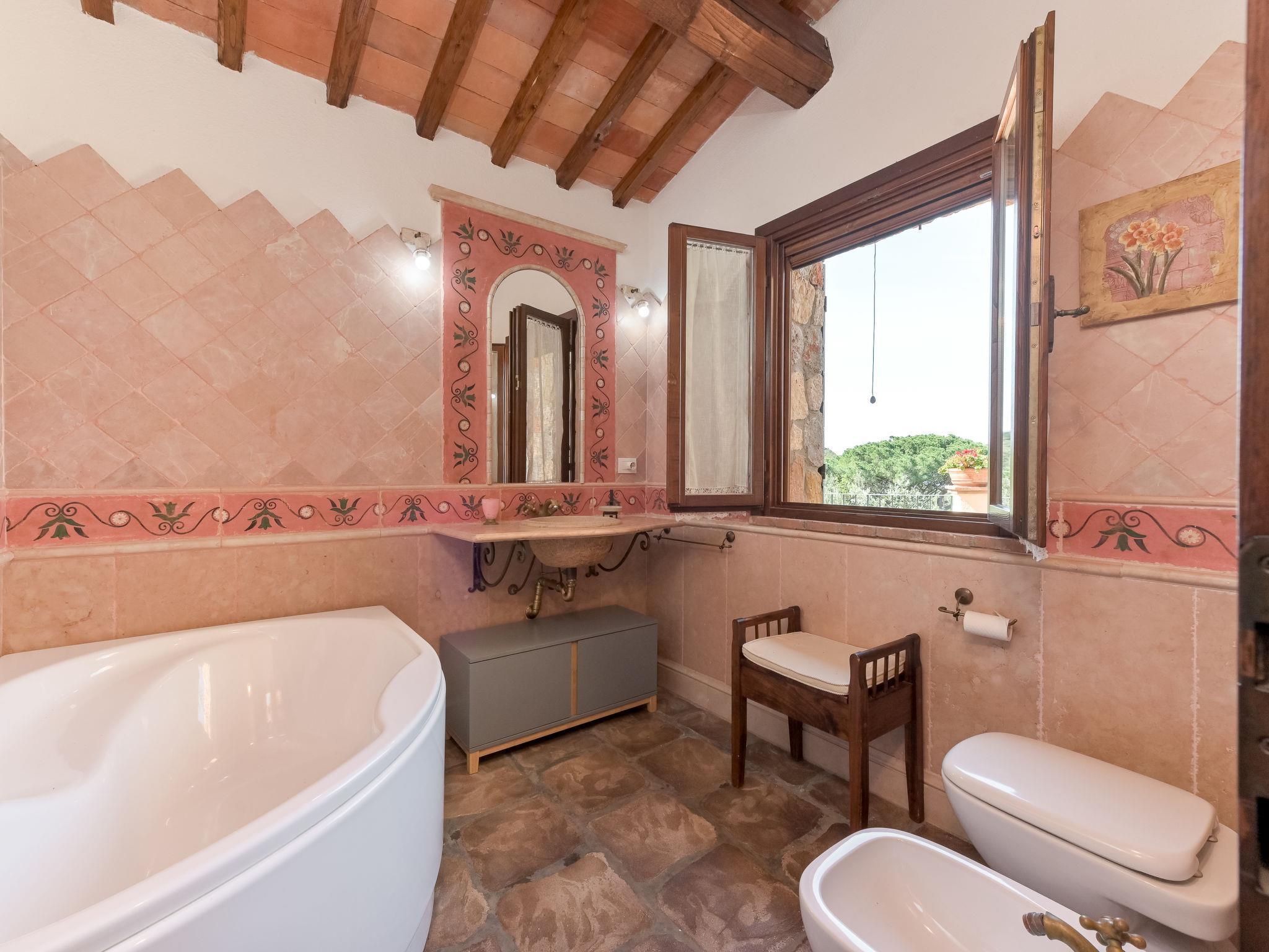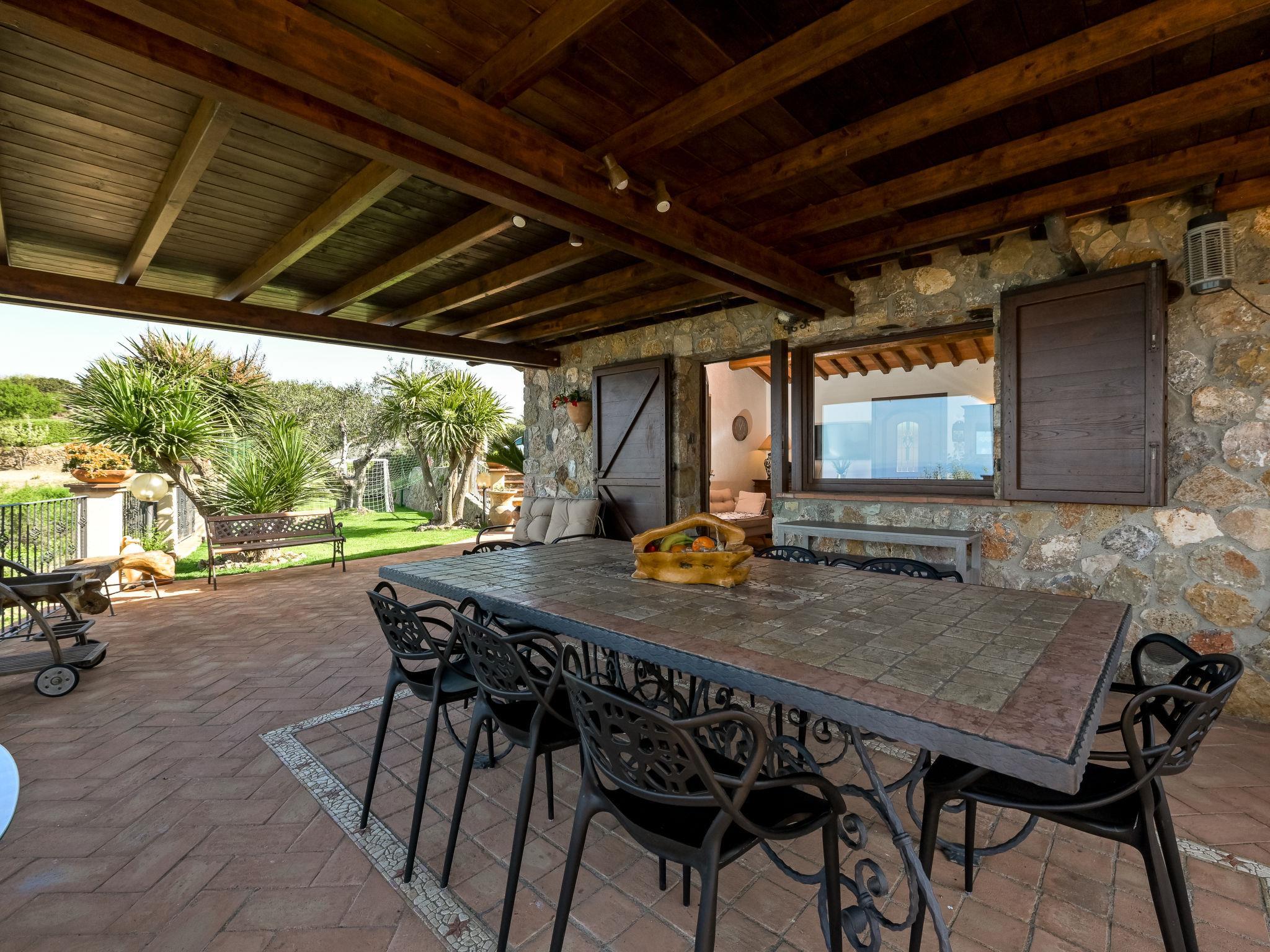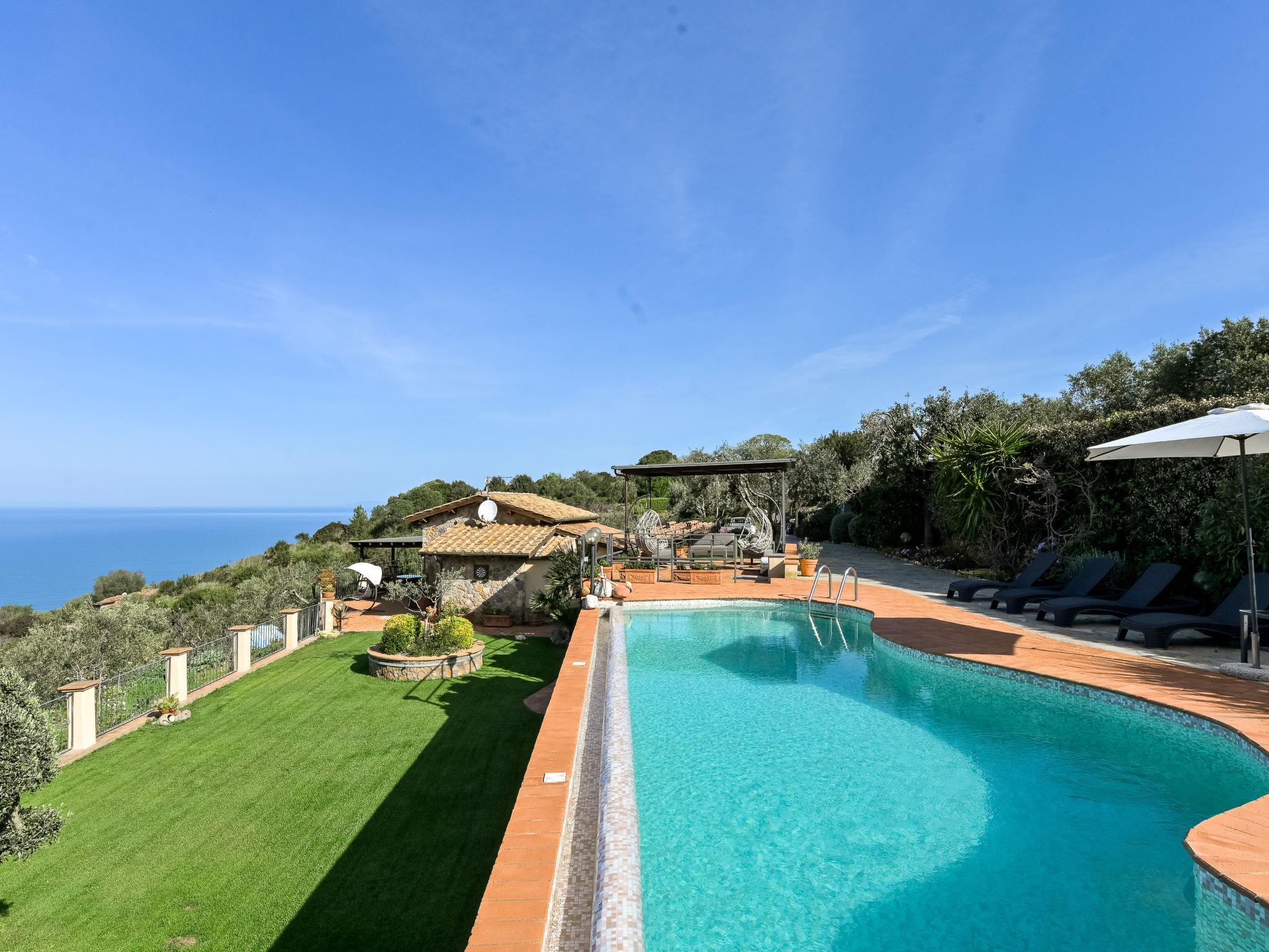 Schöne, rustikale Villa "Ricali", umgeben von Bäumen und Feldern. Mietobjekt bestehend aus Haupt- und Nebengebäude, 4 km vom Zentrum von Porto Santo Stefano, 15 km vom Zentrum von Orbetello, alleinstehende Lage am Hang, 2.1 km vom Meer. Zur Alleinbenutzung: Grundstück 12'000 m2 (eingezäunt), gepflegter terrassierter Garten mit Rasen und Pflanzen, Schwimmbad (12 x 4 m, 140 - 220 cm tief, saisonale Verfügbarkeit: 15.Apr. - 15.Okt.). Ungleichmässige Schwimmbadform, Aussendusche, Laube, Terrasse, Gartenmöbel, Grillhaus, Poolpflege durch den Besitzer/Gärtner. Im Hause: Tischtennis, Tischfussball. Schmale Zufahrt. Parkplatz auf dem Grundstück. Einkaufsgeschäft 4 km, Bahnstation "Orbetello" 17 km, Fähre "Civitavecchia" 85 km, Sandstrand "Giannella" 12 km, Kieselstrand "Cala di Gesso" 2.1 km. Golfplatz (18 Loch) 15 km, Wanderwege ab Haus 850 m. Nahe gelegene Sehenswürdigkeiten: Giardino dei Tarocchi 35 km, Capalbio 37 km, Grosseto 52 km. Wandergebiete: Mountain-Bike 2 km.