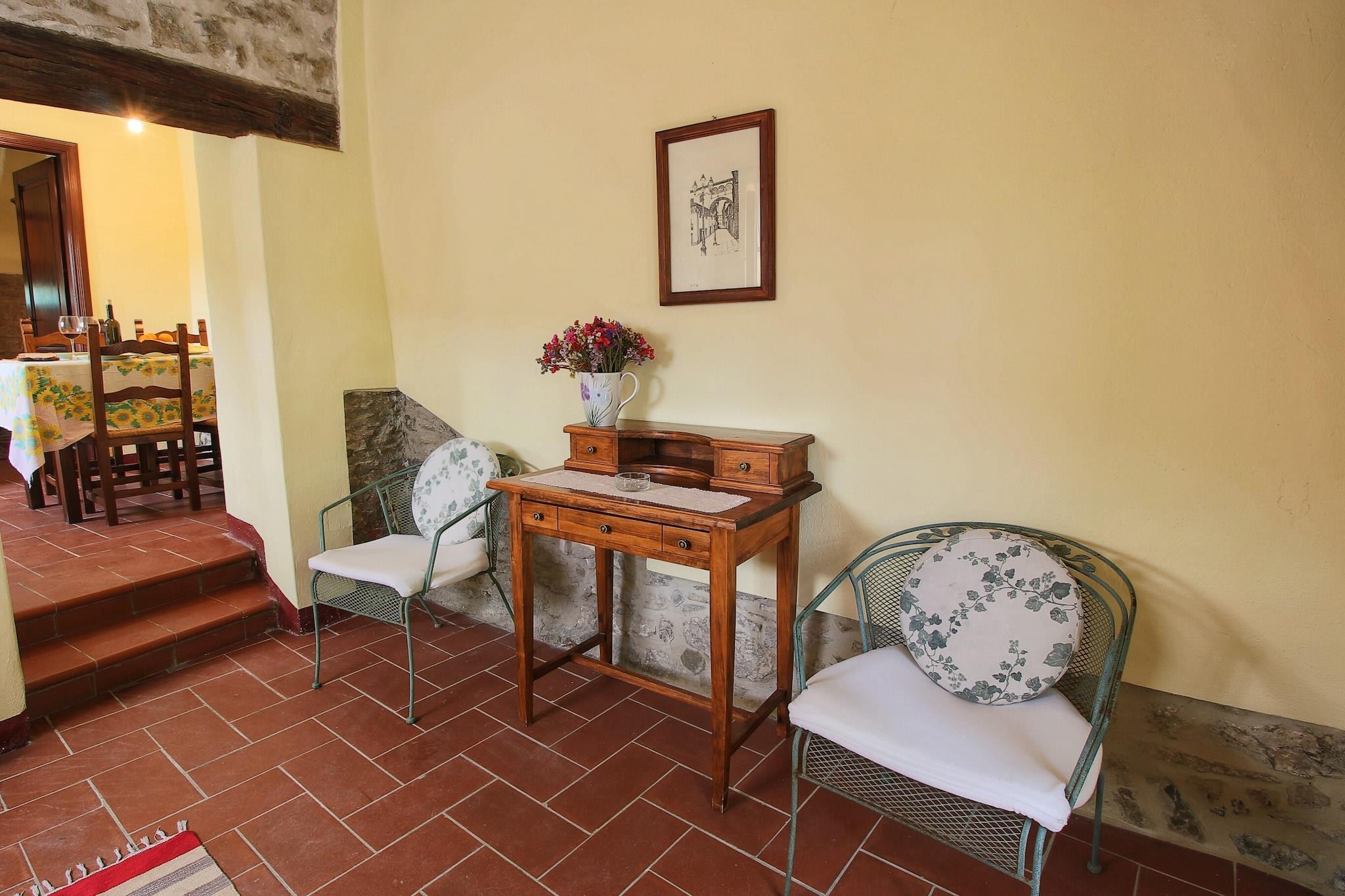 Entfliehen Sie in die ruhige Landschaft von Monte Santa Maria Tiberina. Dieses haustierfreundliche Bauernhaus für zwei Gäste bietet einen gemütlichen und erholsamen Aufenthalt. Umgeben von sanften Hügeln und historischem Charme bietet dieses Refugium kostenloses WLAN, einen privaten Garten und Zugang zu einem Gemeinschaftspool (14 x 7 m, geöffnet von Mai bis September). Egal, ob Sie in der ruhigen Umgebung entspannen oder nahegelegene Sehenswürdigkeiten erkunden möchten – dieses Bauernhaus ist der perfekte Rückzugsort. Das Erdgeschoss verfügt über ein einladendes Wohnzimmer mit Doppelschlafsofa und Fernseher sowie eine voll ausgestattete Küche mit Esstisch, Backofen und Kühl-Gefrierkombination. Das Haus bietet ein komfortables Schlafzimmer mit Doppelbett und ein Badezimmer mit Dusche, Waschbecken, WC und Bidet. Zentralheizung, eine Gemeinschaftswaschmaschine, Gartenmöbel, ein Grillplatz und Parkplätze sorgen für einen komfortablen und angenehmen Aufenthalt. Der nahe gelegene Palazzo Bourbon dal Monte besticht durch seine beeindruckende Architektur, während die Chiesa di Santa Maria Assunta einen Einblick in die reiche Geschichte der Region bietet. Für Outdoor-Fans bietet Anghiari atemberaubende Radwege. Zu den gastronomischen Einrichtungen gehören die Bar Ristorante Oscari, bekannt für ihre köstliche italienische Küche, und das Il Palazzetto del Monte Ristorante, das authentische lokale Aromen bietet. Ob Sie kulturelle Sehenswürdigkeiten erkunden oder traditionelle Gerichte genießen möchten – dieses Bauernhaus ist der perfekte Rückzugsort in Umbrien.