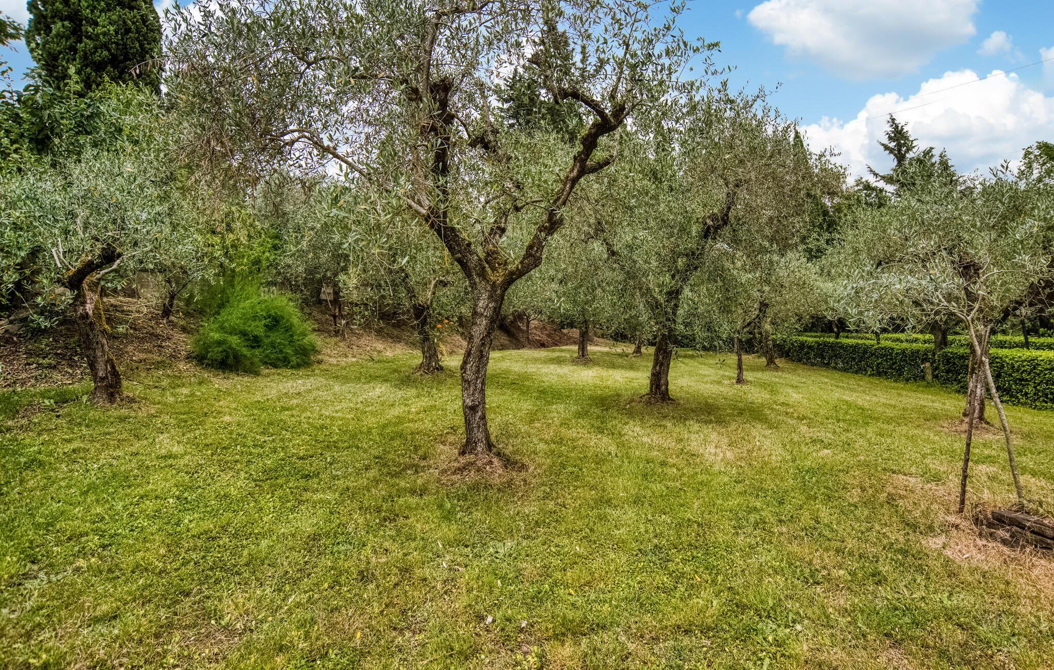 Vor dem Haus gibt es einen schattigen Terrassensitzplatz mit Barbecue; der Poolbereich liegt hinter dem Haus, mit ebenerdigem Zugang auch direkt vom Ferienhaus. Das Besondere dieses Ferienhauses ist das großzügige Park-und Naturgrundstück mit einem kleinen Pinienwäldchen, einer eigenen Quelle, Olivenhainen und Obstbaumwiese, mit verschiedenen Sitzplätzen und einem Bereich für Ballspiele (Badminton, Volley, Bocce). Der Pförtner wohnt in einem Nebengebäude mit separatem Zugang.